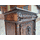 Велика, старовинна, антикварна, деревяна тумба в мисливському стилі. Тумба виготовлена з масиву натурального дерева, темний дуб, має одну дверку та одну шухляду, всередині є деревяна полиця. Тумба в мисливському стилі, декорована точеними колонами та різьбою ручної роботи, різьба у вигляді впольованого тетерева та левині голови з кільцем у пащі. Тумба в хорошому стані, привезена з Бельгії.