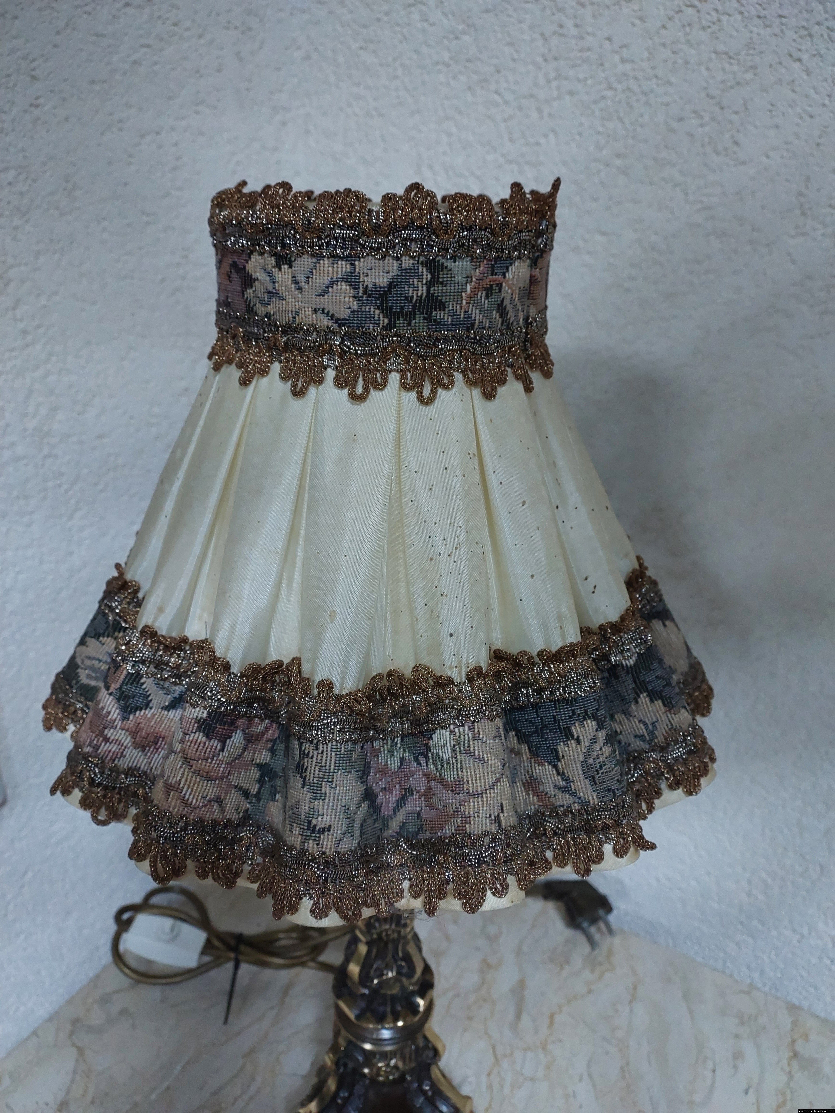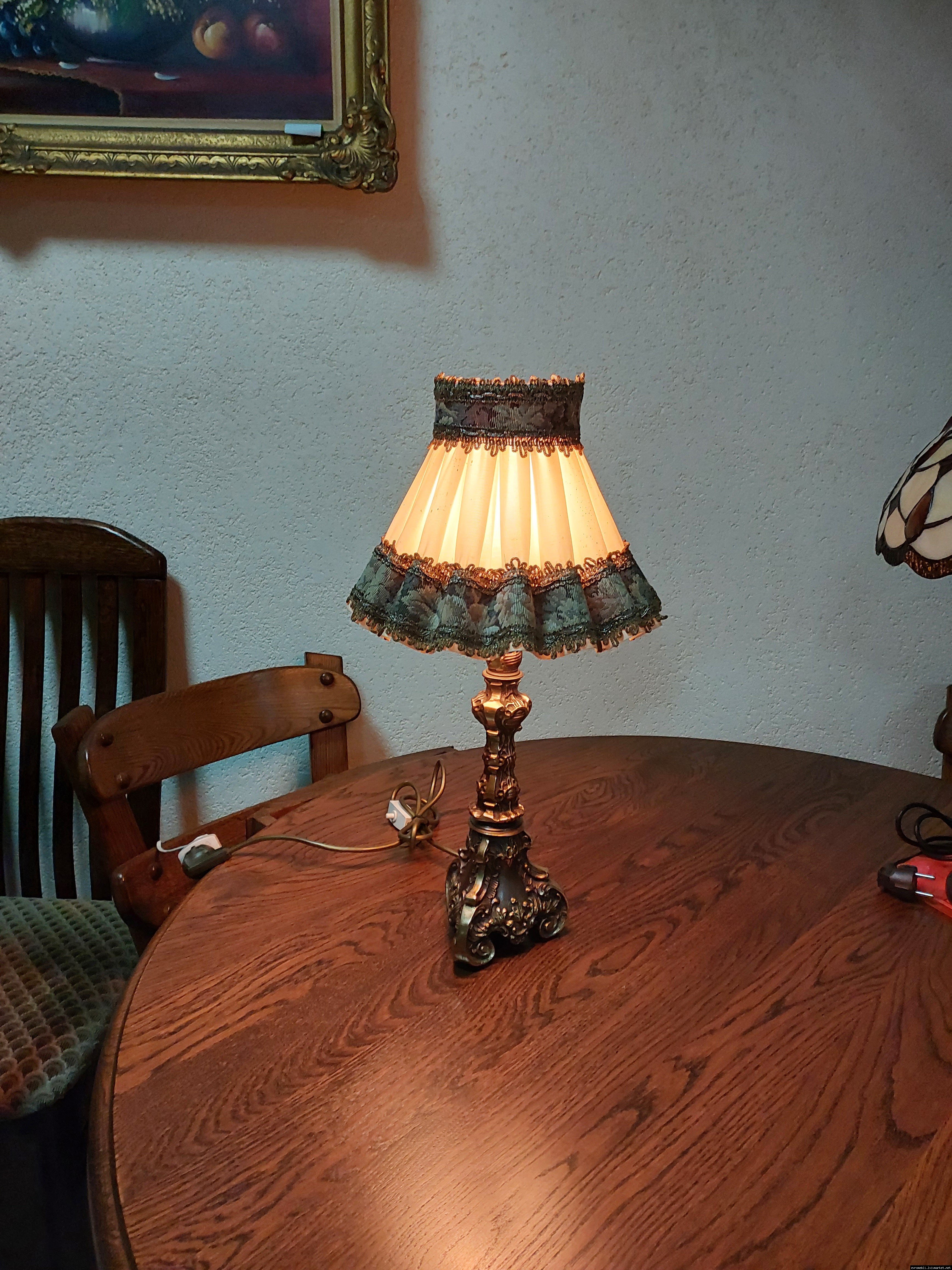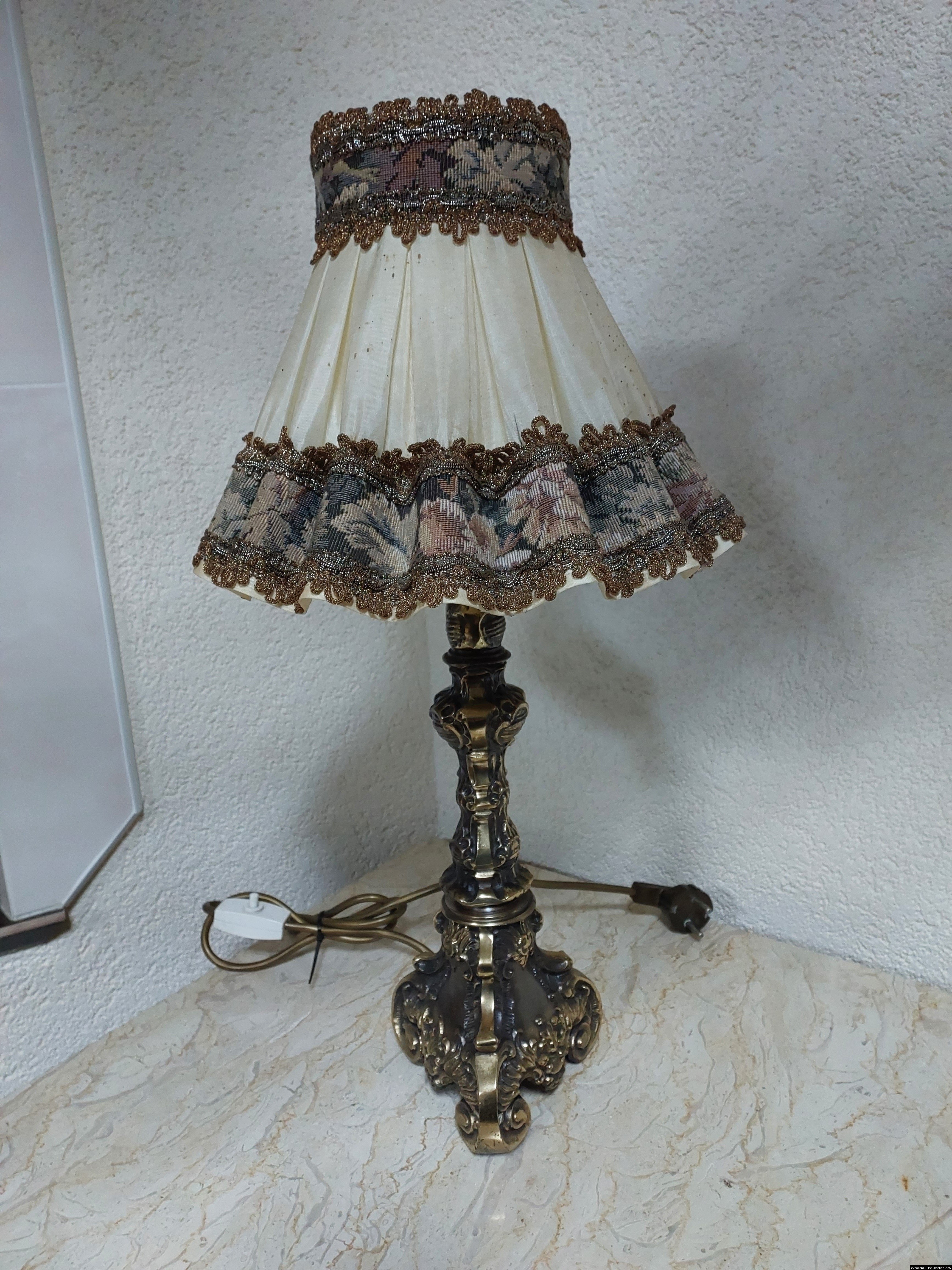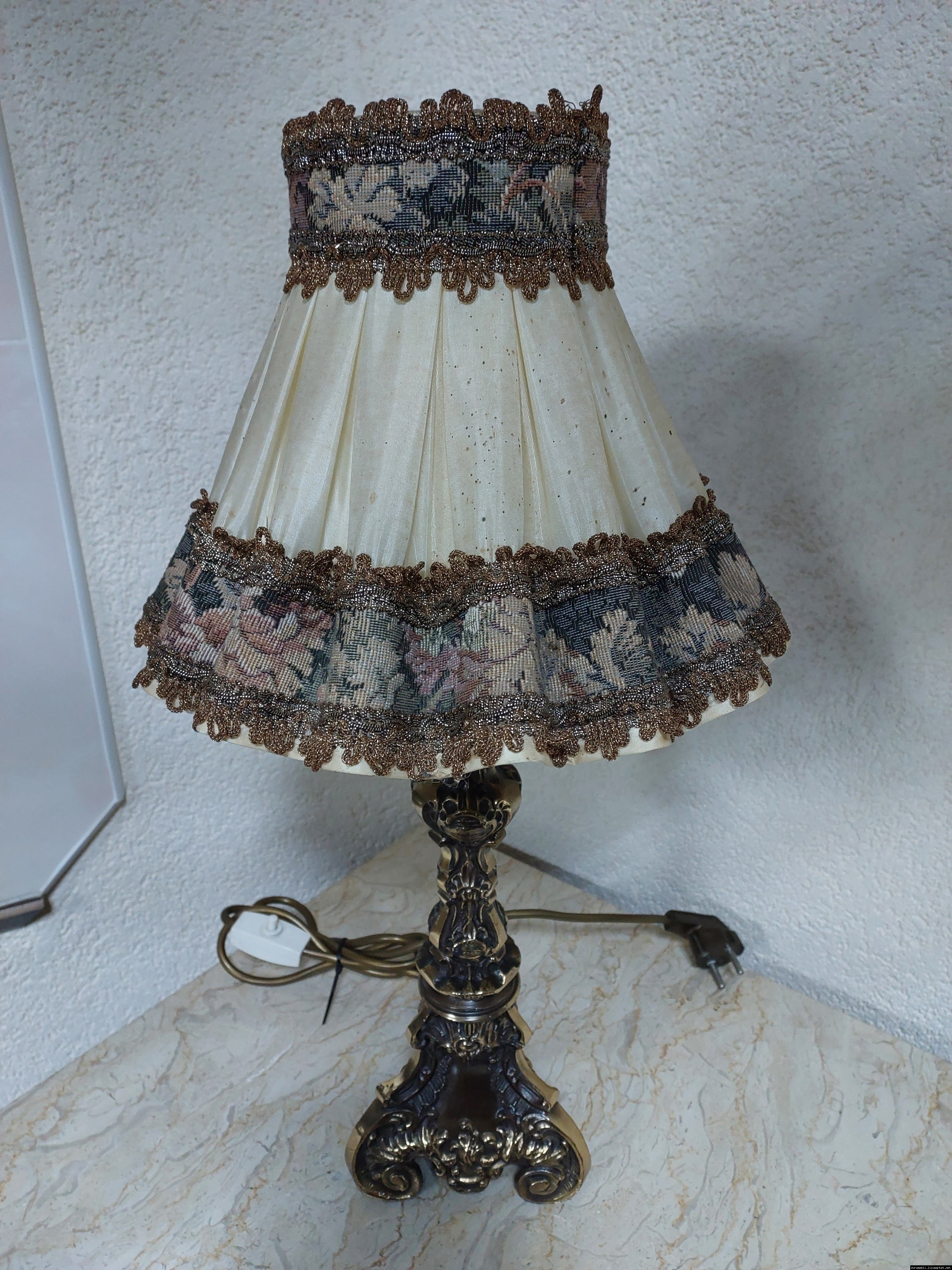 Неймовірно красива і мила погляду вінтажна настільна лампа. Ніжка лампи велика і масивна, на металевій основі, виготовлена з бронзи та декорована литтям, тканинний абажур. Лампа в хорошому, робочому стані, привезена з Бельгії.