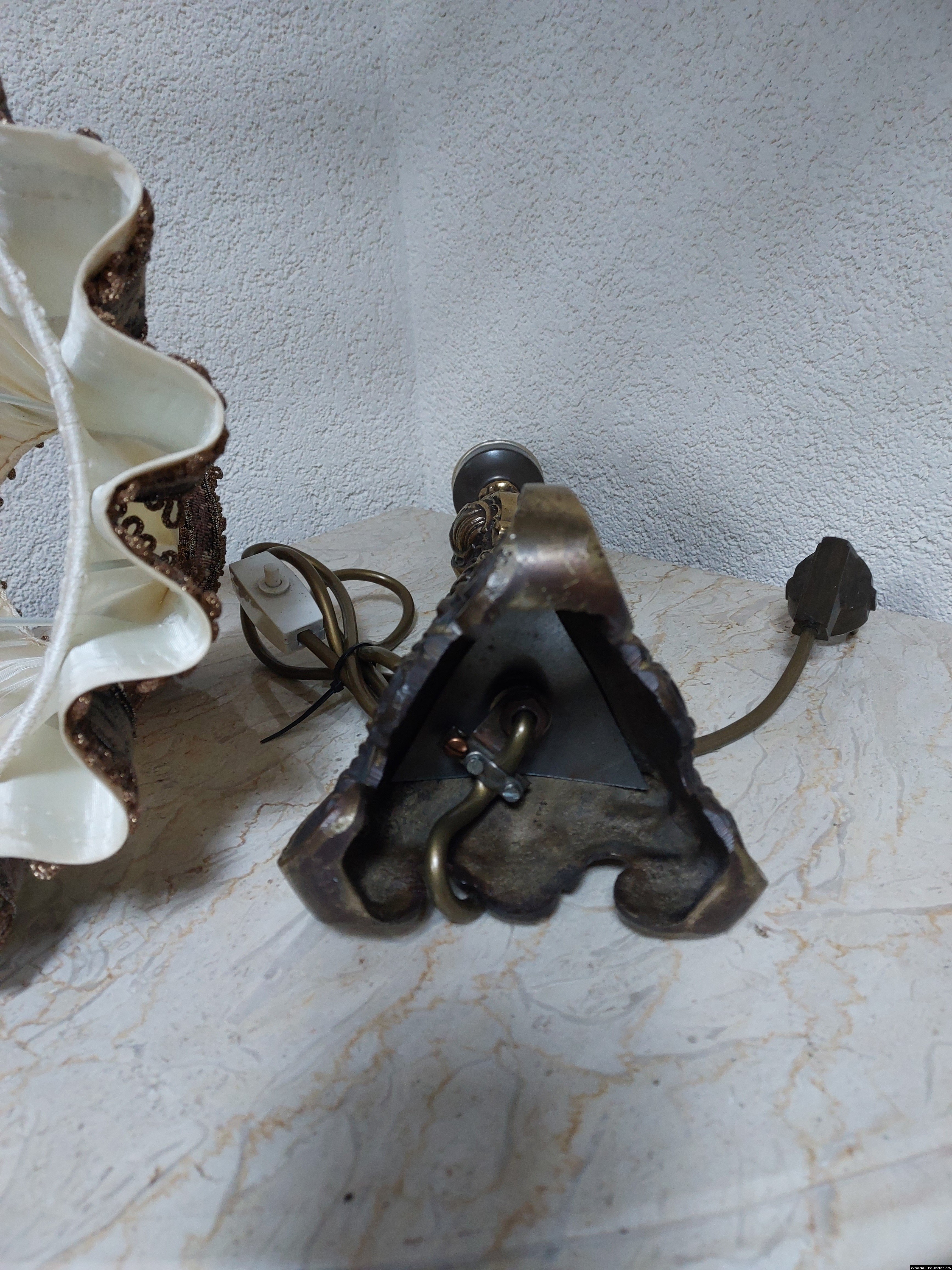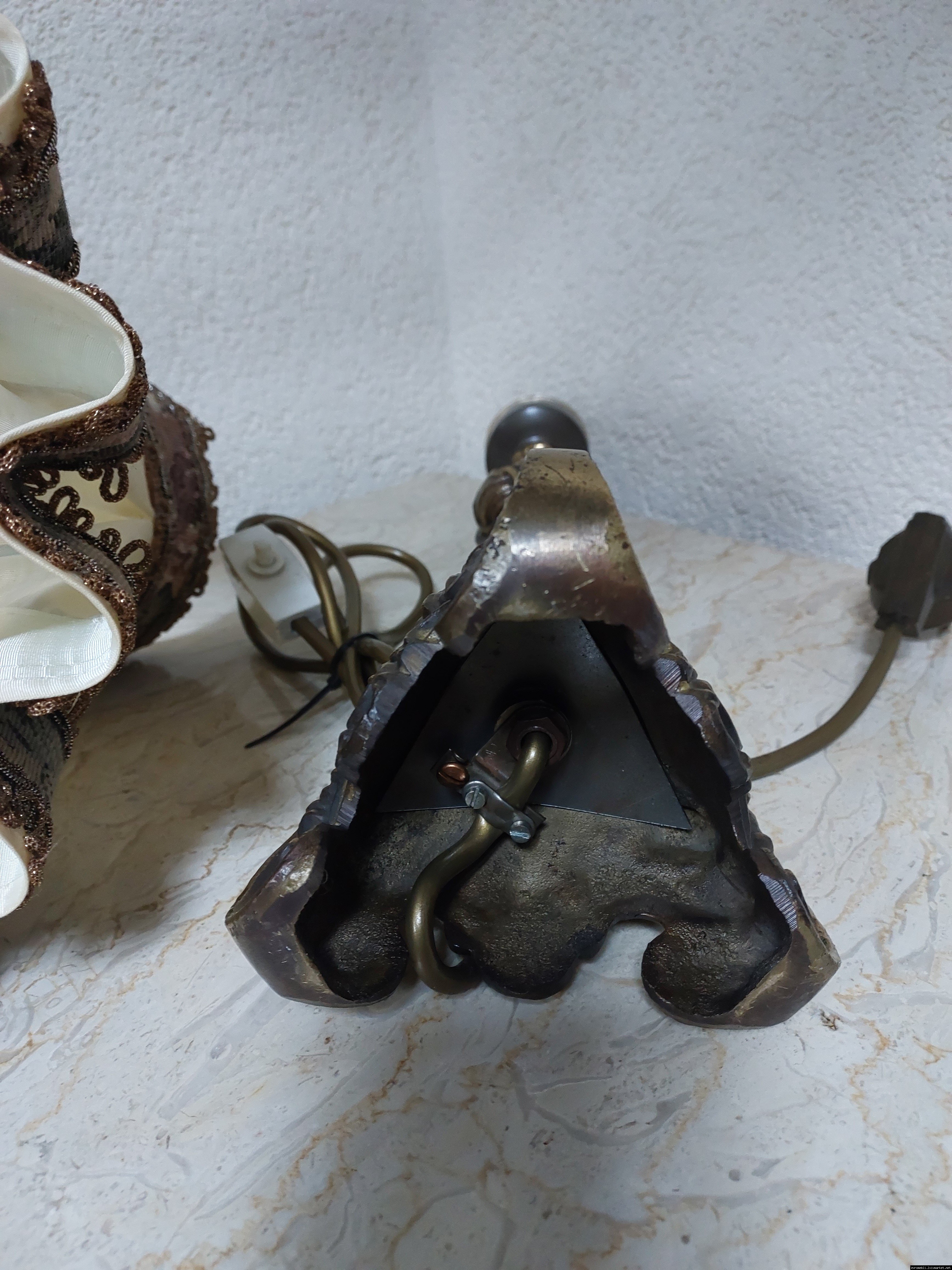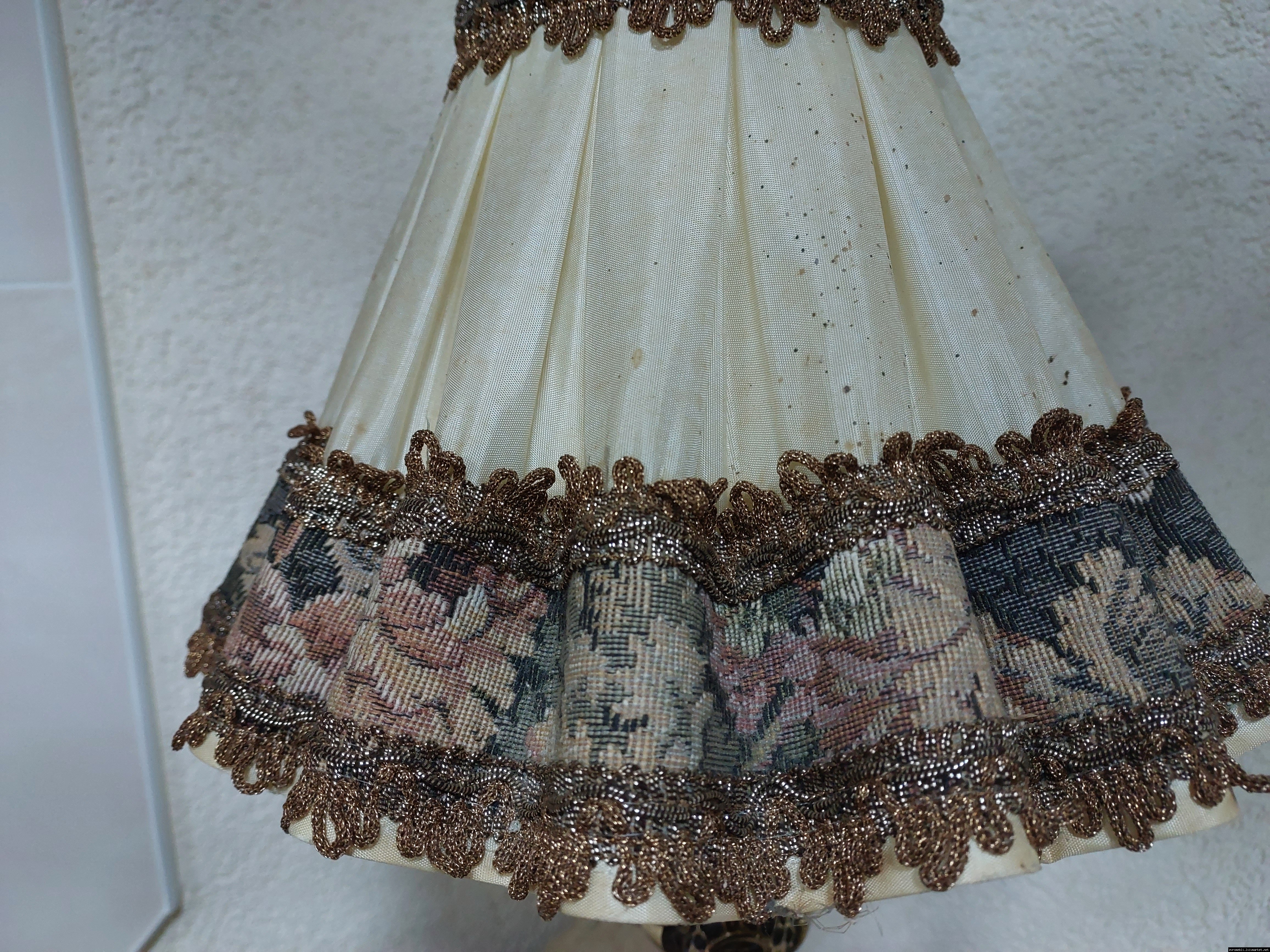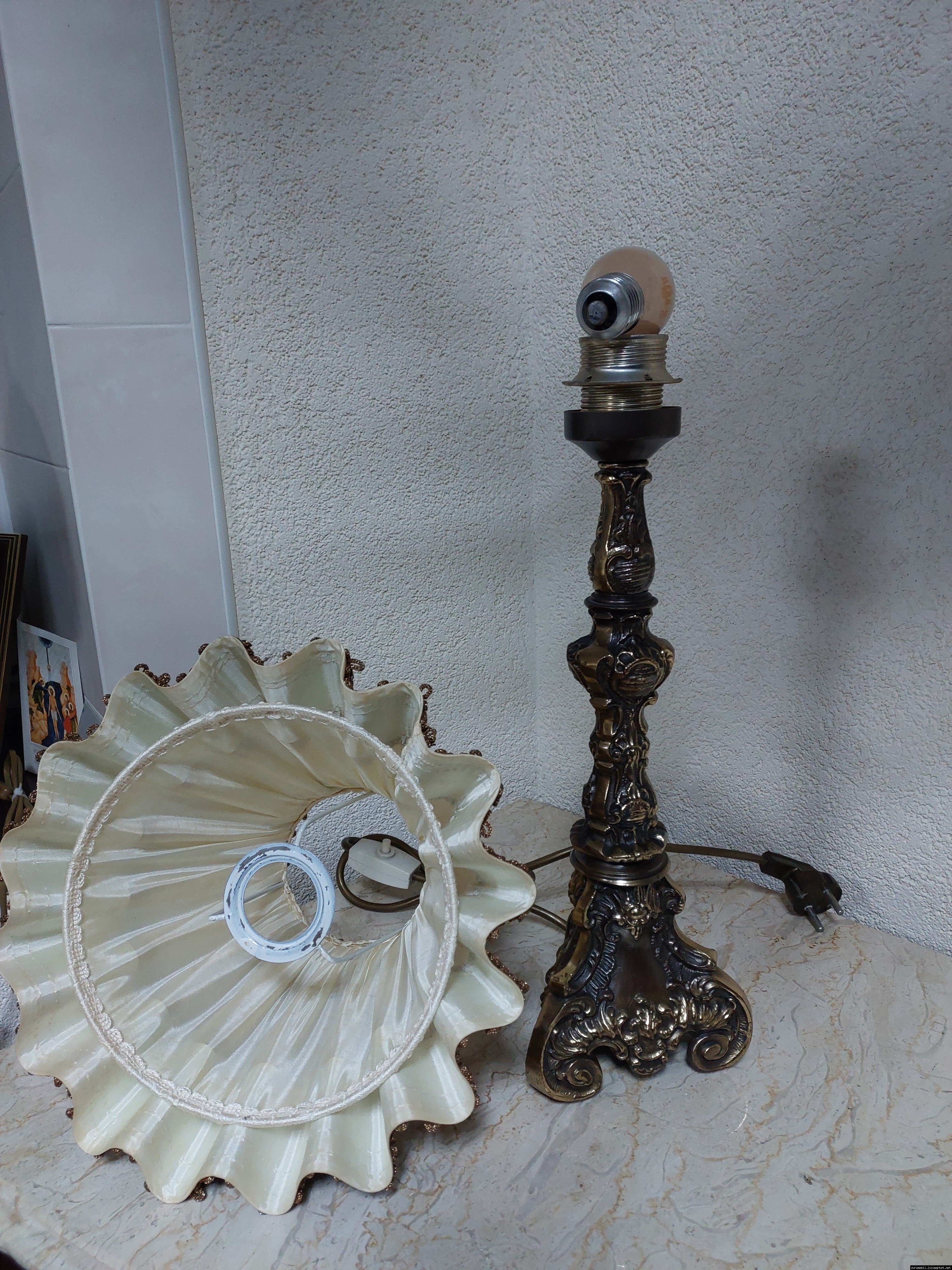 Неймовірно красива і мила погляду вінтажна настільна лампа. Ніжка лампи велика і масивна, на металевій основі, виготовлена з бронзи та декорована литтям, тканинний абажур. Лампа в хорошому, робочому стані, привезена з Бельгії.