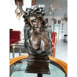 Бронзовий бюст Ісуса Христа. Бюст на деревяній основі, виготовлений з бронзи, є карбування. Привезений з Бельгії. висота 45 ширина 25 глибина 25.основа 17/15.