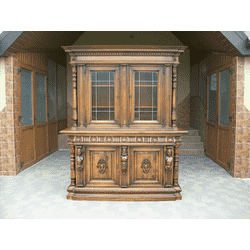 Красивий старовинний буфет в стилі Ренесанс. Буфет деревяний, в оригіналі, виготовлений з натурального дерева, темно- золотистий дуб, масив, з елементами масивної, декоративної різьби ручної роботи, має чотири дверки, та дві шухляду, всередині є деревяні полиці, дверки та шухляда зачиняються на ключ. Буфет масивний, великий та вмістимий, в хорошому стані, привезений з Бельгії.