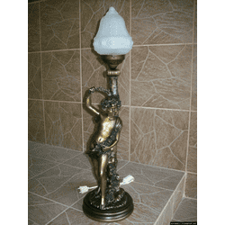 Інтерєрний світильник- скульптура, чудовий подарунок чи просто річ для душі. Світильник виконаний з майстерністю, опрацьовані деталі, передана пластика руху фігури. Світильник виготовлений зі сплаву різних металів (шпіатр), плафон виготовлений з матового скла. Світильник в хорошому стані, привезений з Бельгії, це чудовий, незвичайний предмет вашої оселі.