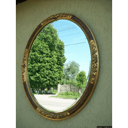 Дзеркало настінне, підвісне, в рамі овальної форми, покрите позолотою, декороване литтям. Велике дзеркало з фацетом, в хорошому стані, привезене з Бельгії.
