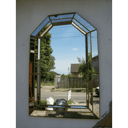 Дзеркало настінне, підвісне. Дзеркало в рамі декорованій латунним литтям та маленькими кусочками дзеркала, верхня частина рами дзеркала фігурної форми, зі зрізаними кутиками. Дзеркало в хорошому стані, привезене з Бельгії.
