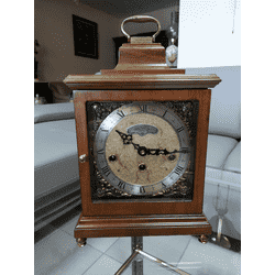 Дуже красивий антикварний, мелодійний, настільний (камінний, кабінетний) годинник WUBA від Warmink. Корпус годинника виготовлений з масиву натурального дерева, золотистого кольору, оздоблений декоративними елеменами з латуні та бронзи, механізм- Німеччина. Циферблат годинника з арабськими та римськими цифрами, декорований елементами карбування, годинник механічний, 5 молоточків, бій кожні 15 хвилин, заводиться на ключ, в хорошому технічно-справному стані, привезений з Бельгії.