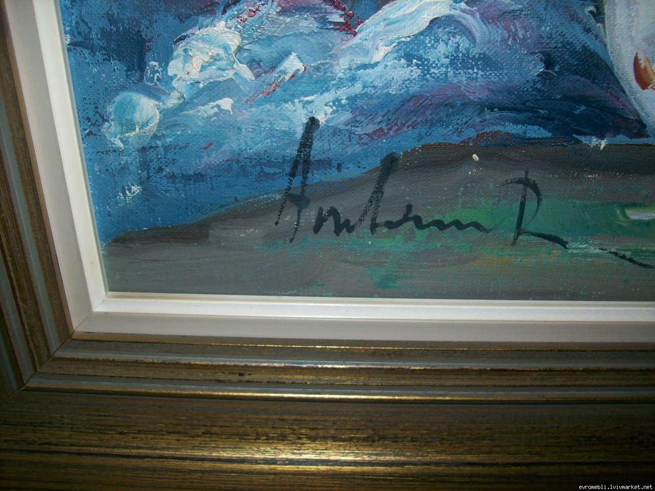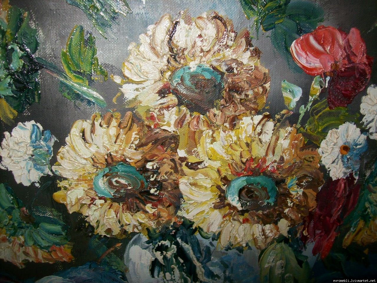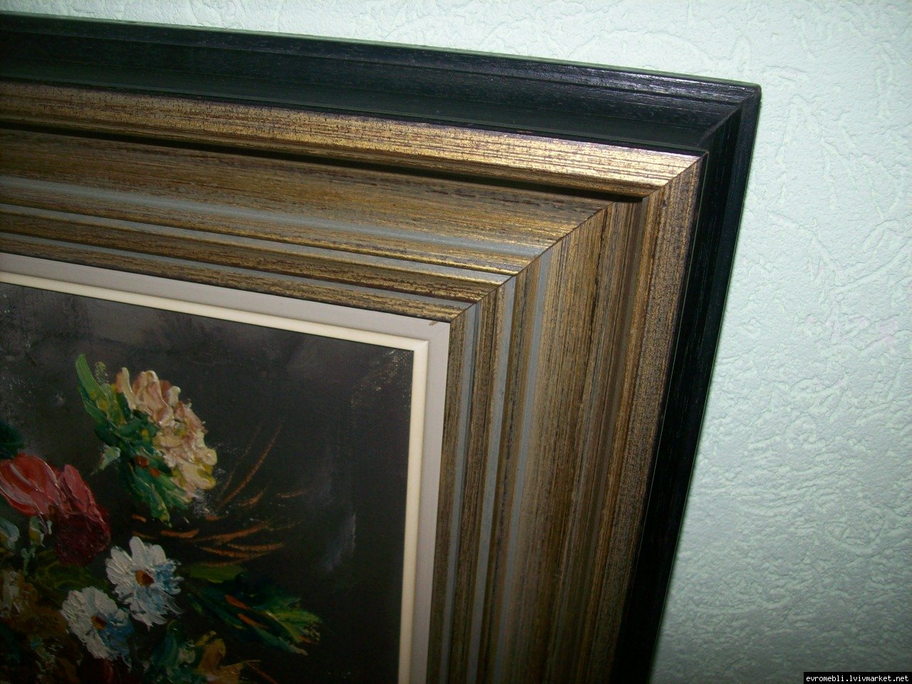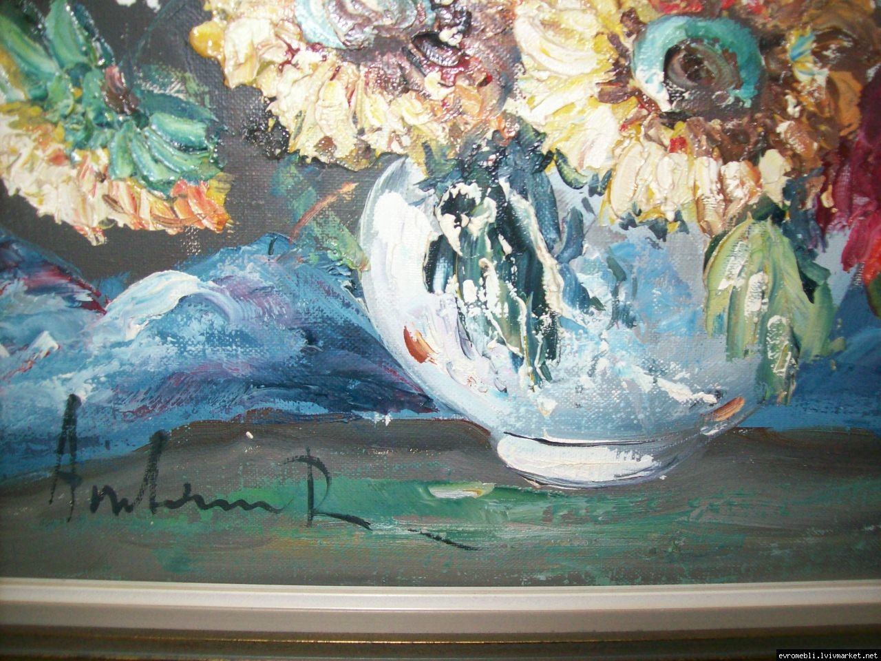 Картина мальована, масло, "Квіти в вазі". Картина в деревяній рамці золотистого кольору, в хорошому стані, привезена з Бельгії. Картина маслом - завершальний яскравий акцент в інтер'єрі, додасть затишку в будинок і подарує чудовий настрій.