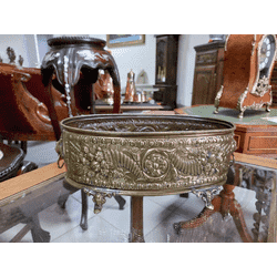 Красиве старовине латуне кашпо ручної роботи. Кашпо на чотирьох ніжках, декороване латунним литтям та елементами карбування, по боках кашпо прикрашають левині голови з кільцем у пащі. Кашпо в хорошому стані, привезено з Бельгії. Крім використання за прямим призначенням, можна використовувати і як вазу для фруктів або прикрас і як кашпо для квітів!