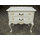 Простий та водночас дуже красивий та ексклюзивний деревяний комод в стилі Луї. Комод виготовлений з натурального дерева, дуб, масив, дерево білого кольору, щедро декорований елементами різьби ручної роботи та позолотою. Комод на точених ніжках, має дві шухляди, ручки шухляд виготовлені з латуні та декоровані литтям. Комод старовинний, повністю масивний, в хорошому стані, привезений з Бельгії.