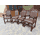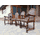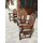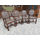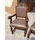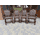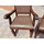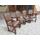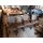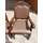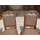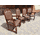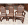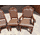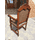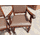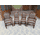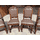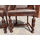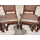 Комплект деревяних стільців, в комплекті чотири штуки, два з них з підлокотниками. Стільці виготовлені з масиву натурального дерева, темний дуб, масив, щедро декоровані елементами різьби ручної роботи. Спинки та сидіння стільців обшиті високоякісною шкірою коричневого кольору, оздоблені декоративними цвяшками. Стільці зручні та комфортні, в хорошому стані, привезені з Бельгії.