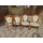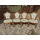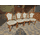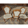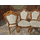 Комплект шикарних деревяних стільців в стилі Барокко, в комплекті чотири штуки. Стільці на точених ніжках, виготовлені з натурального дерева, золотистий дуб, масив, декоровані елементами різьби ручної роботи, сидіння та спинки обшиті тканиною, велюр молочного кольору та оздоблені декоративними цвяшками. Стільці дуже зручні та комфортні, в хорошому стані, привезені з Бельгії.