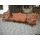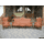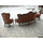 Комплект меблів для вітальні в стилі "Барокко". До складу комплекту входить: диван трьохмісний, нерозкладний і два крісла. Комплект в оригіналі, на деревяній основі, виготовлений з натурального дерева, темно- золотистий дуб, масив, на різьблених ніжках, оздоблений декоративною різьбою, різьба масивна, ручної роботи. Комплект обтягнутий шкірою цеглового кольору та оздоблений декоративними цвяшками. Комплект дуже мякий, зручний та комфортний, в хорошому стані, привезений з Бельгії.