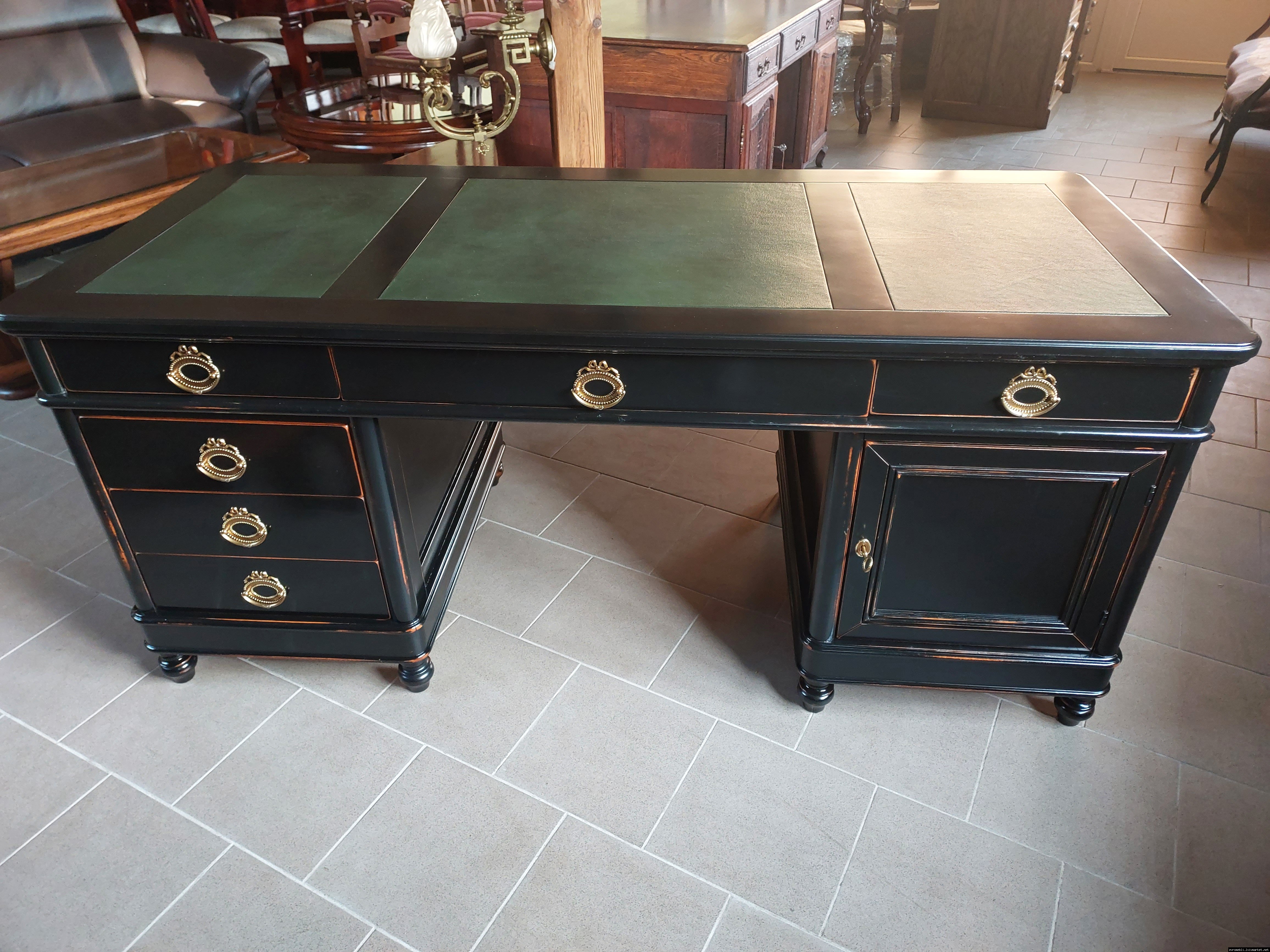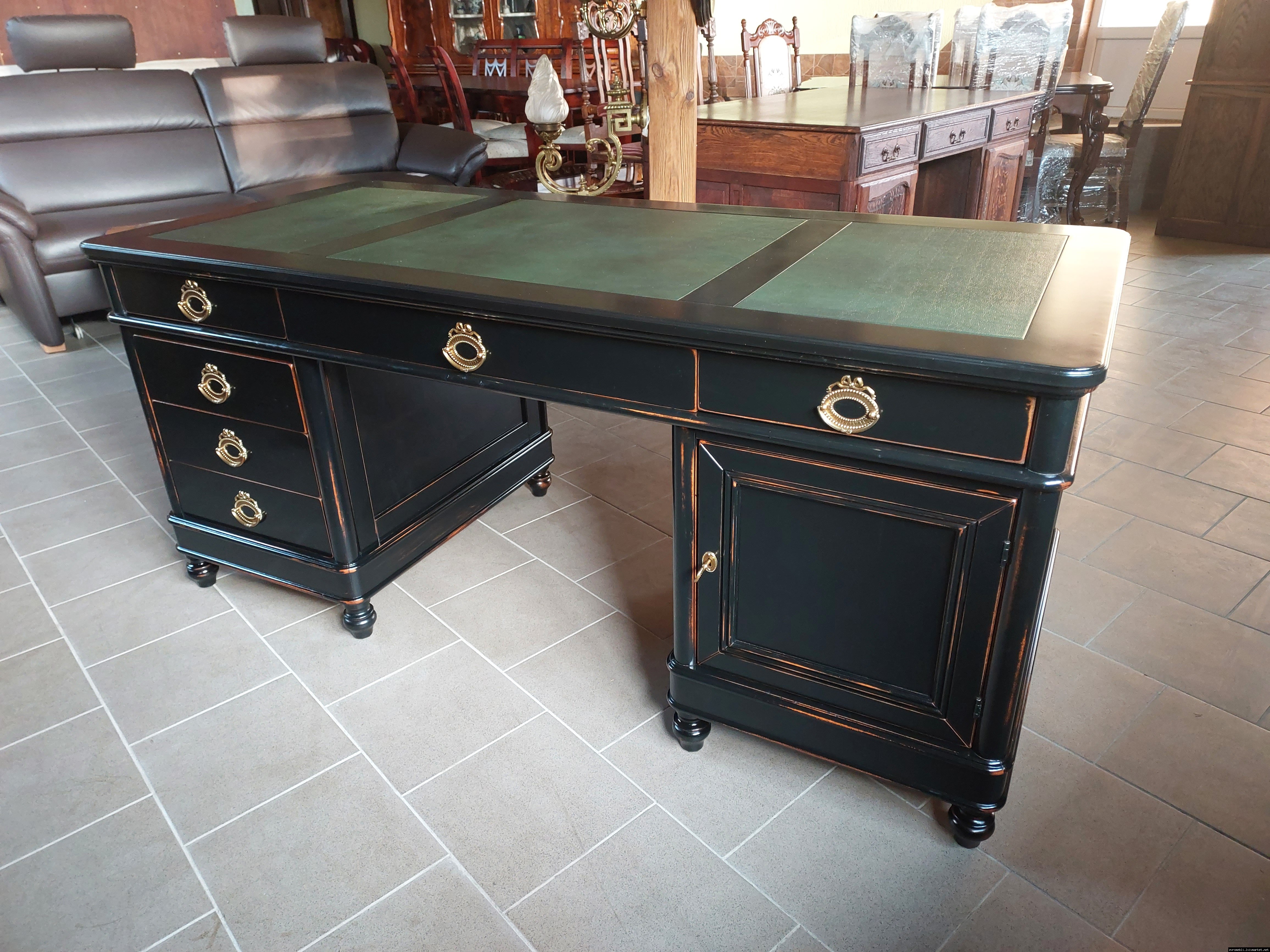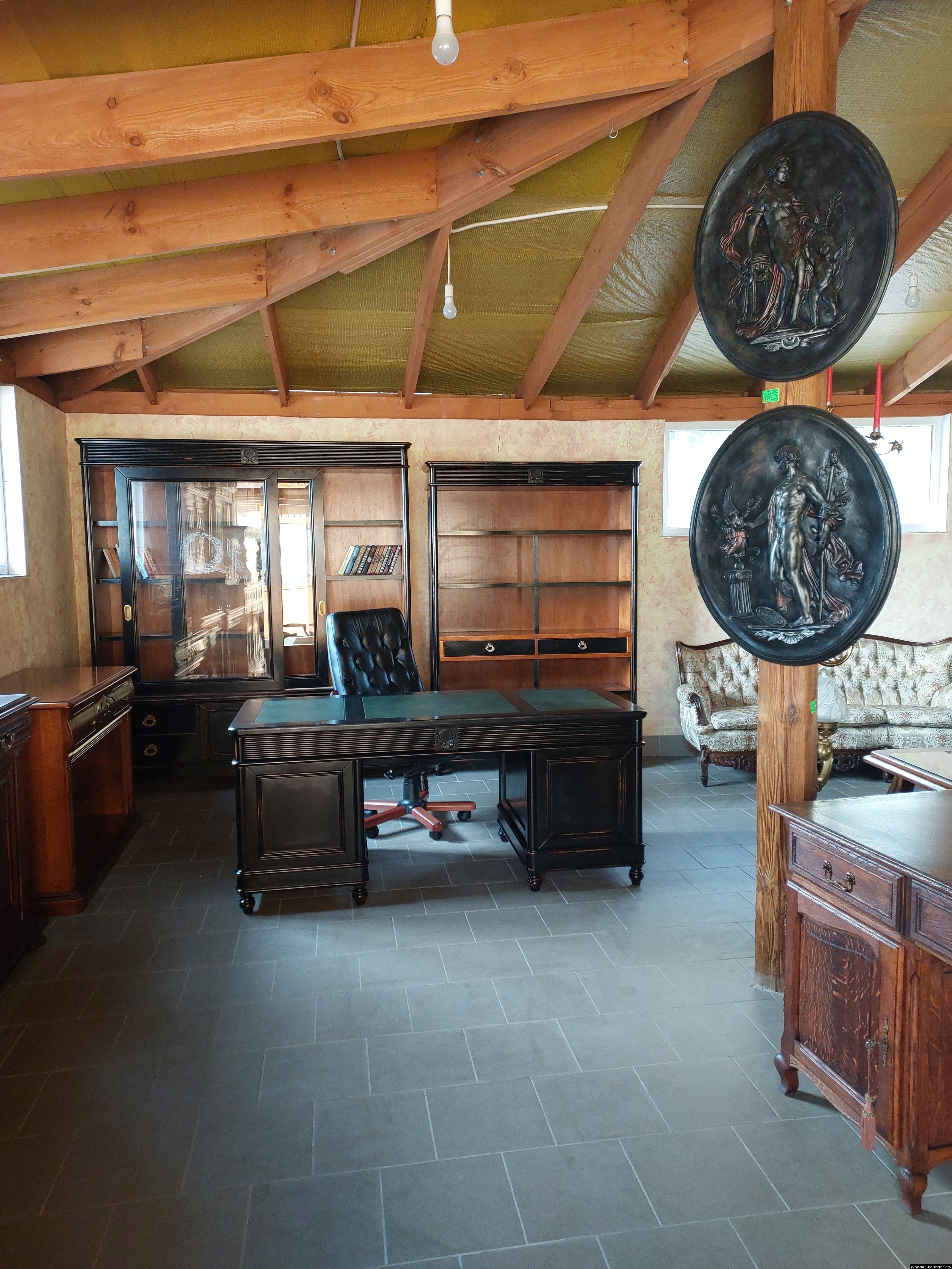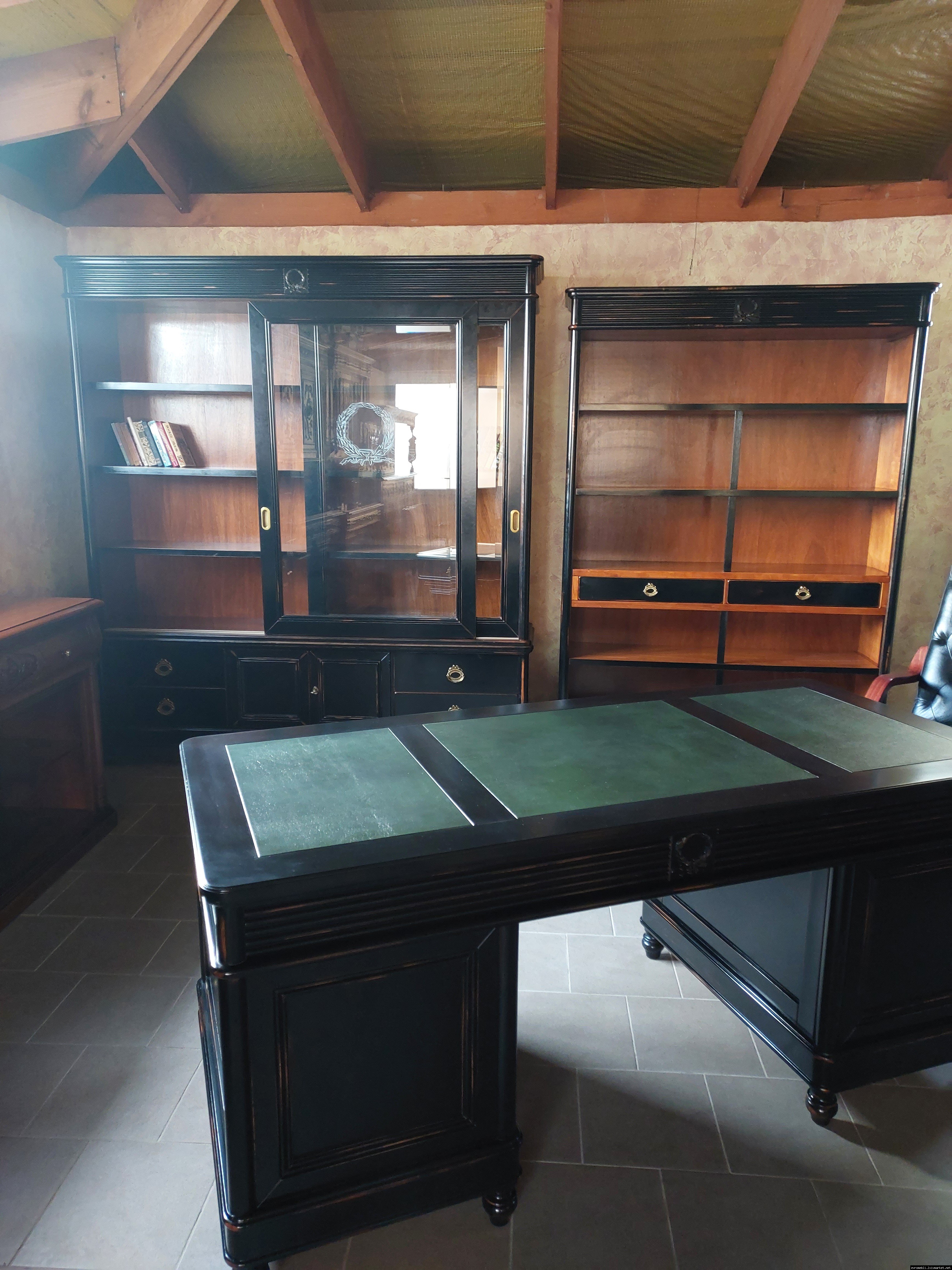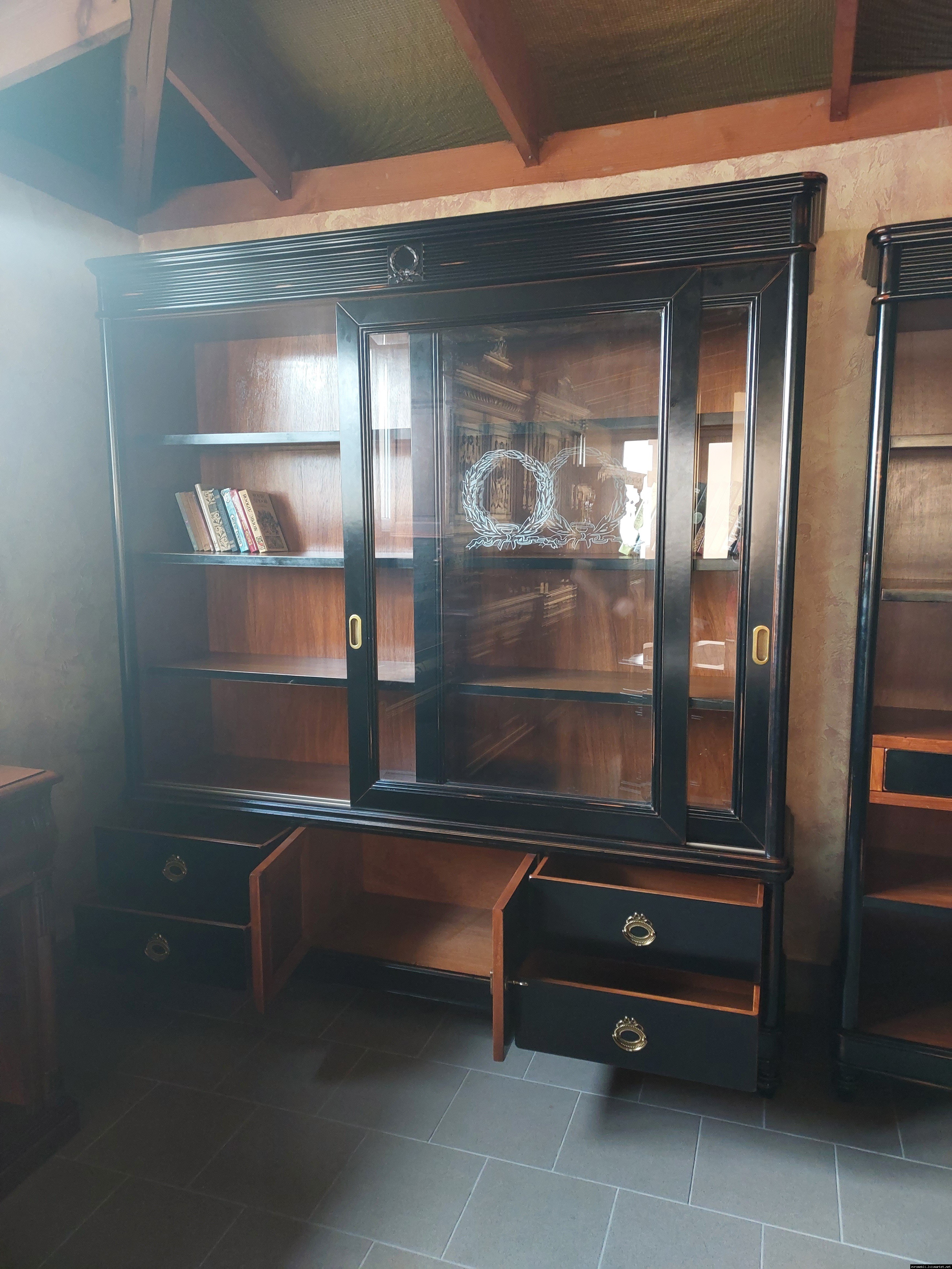 Комплект меблів для кабінету від фабрики Monte Cristo Mobili (Румунія) - розкішне рішення з гармонійними формами та вишуканим оздобленням для Вашого робочого кабінету. До комплекту входить: стіл письмовий, крісло, книжкова шафа та етажерка. Комплект виготовлений з масиву та шпону липи, що є запорукою відмінної якості та тривалого терміну служби. Аристократичність меблів підкреслюють фігурні карнизи, декоративне скло, металеві вставки та фасади декоровані емблемою компанії.