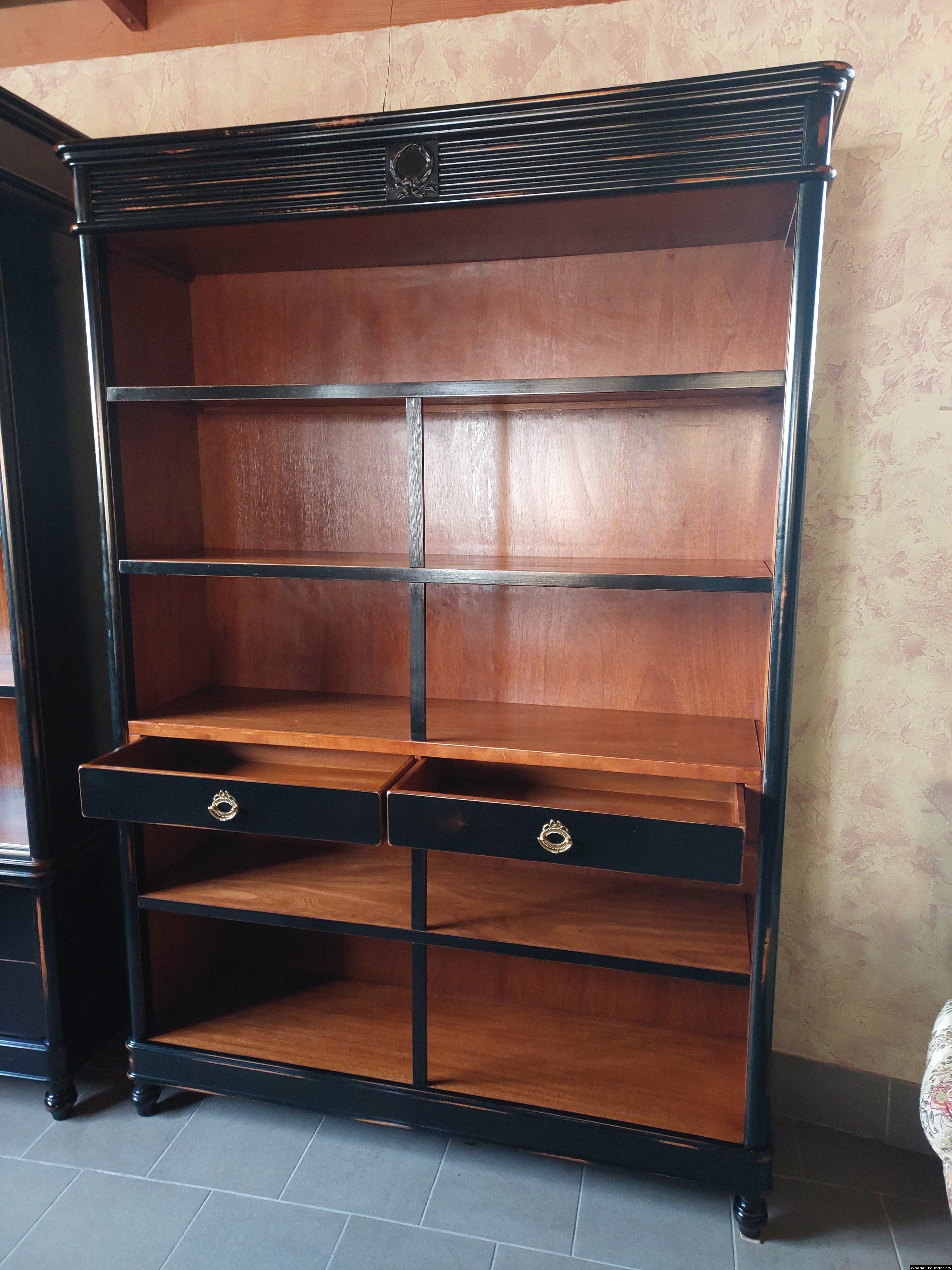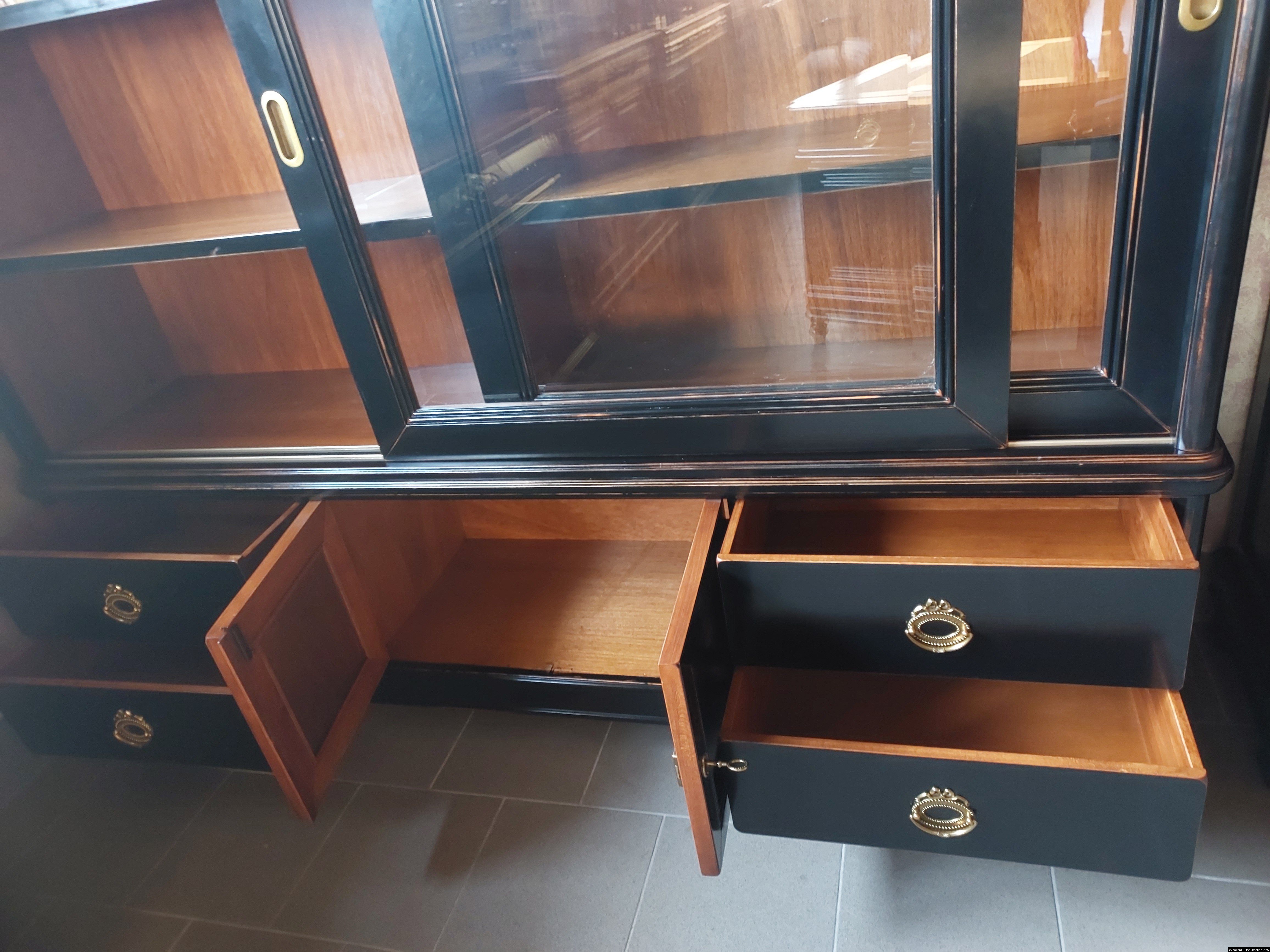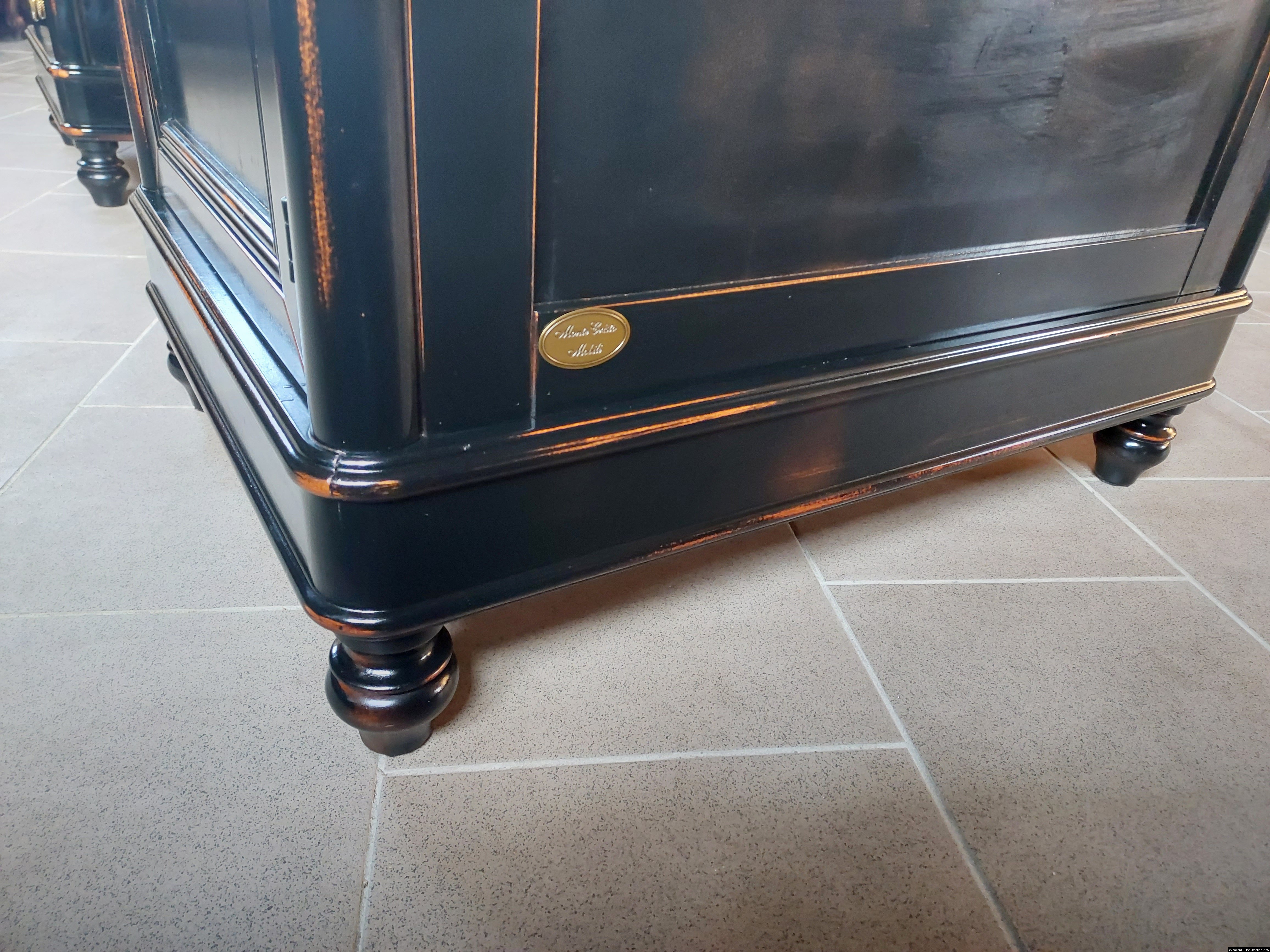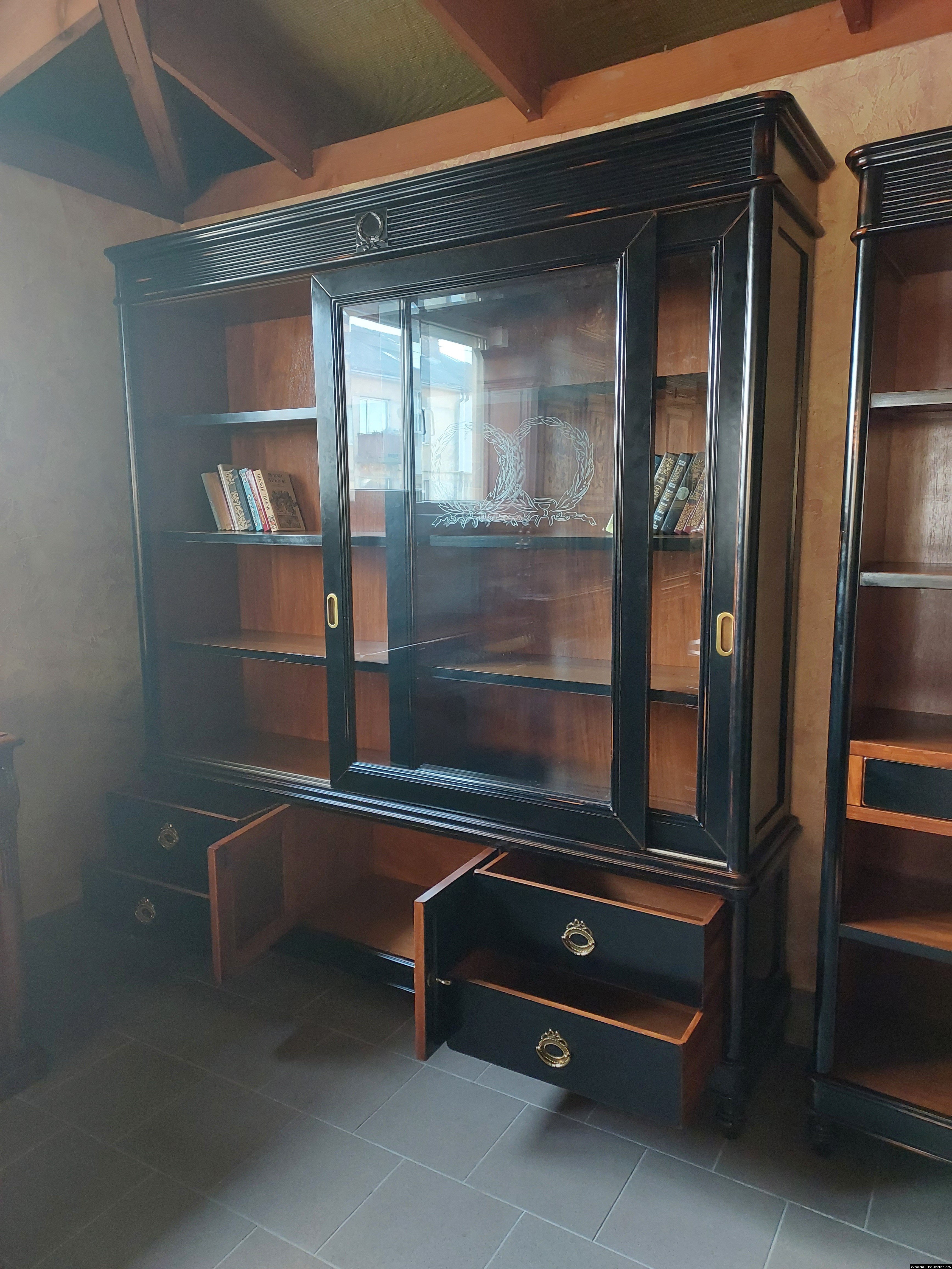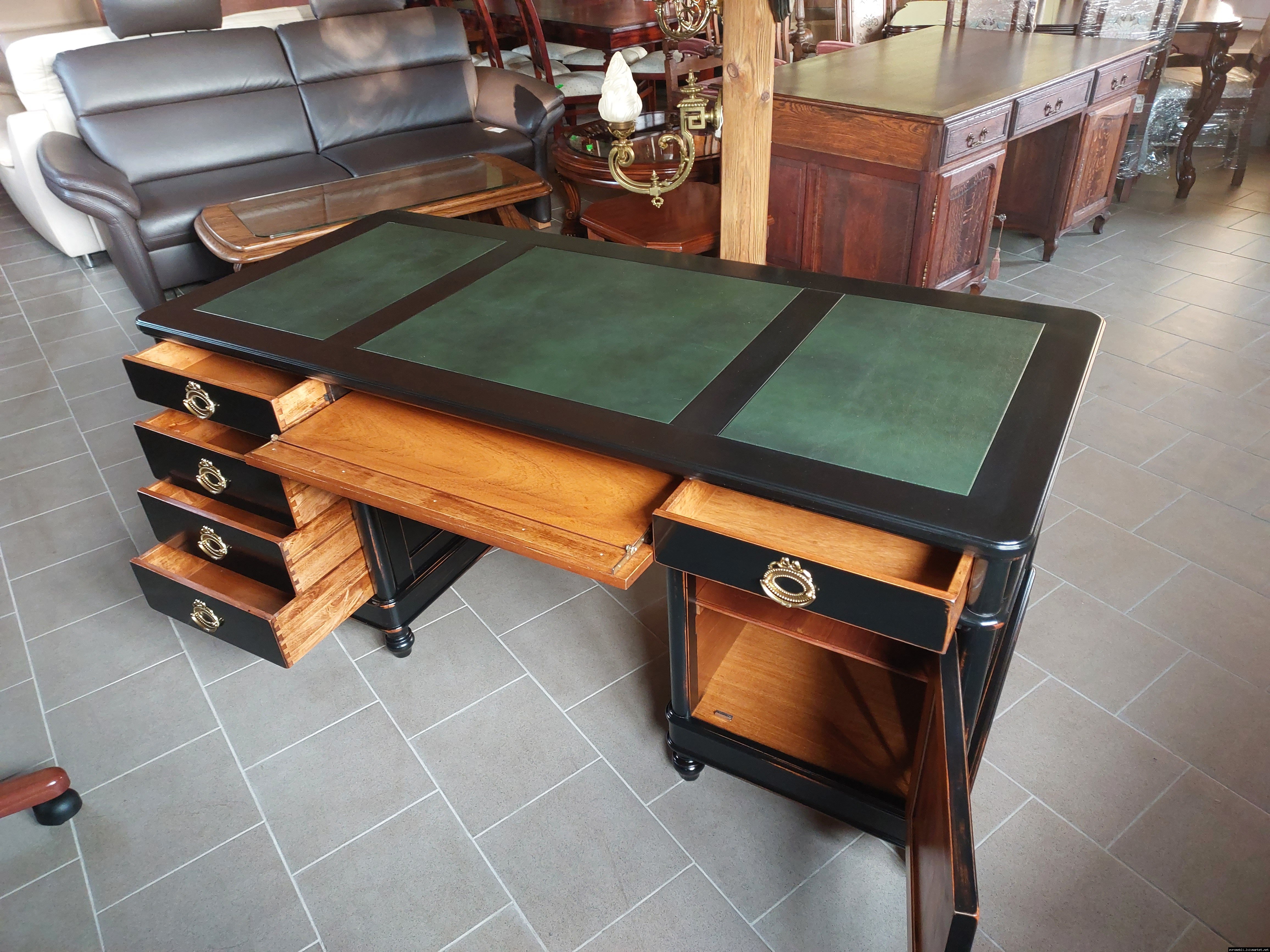 Комплект меблів для кабінету від фабрики Monte Cristo Mobili (Румунія) - розкішне рішення з гармонійними формами та вишуканим оздобленням для Вашого робочого кабінету. До комплекту входить: стіл письмовий, крісло, книжкова шафа та етажерка. Комплект виготовлений з масиву та шпону липи, що є запорукою відмінної якості та тривалого терміну служби. Аристократичність меблів підкреслюють фігурні карнизи, декоративне скло, металеві вставки та фасади декоровані емблемою компанії.