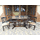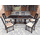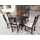 Комплект красивих та вишуканих меблів для вітальні чи столової. Комплект в класичному стилі, до складу комплекту входить великий буфет, стіл столовий, розкладний та шість стільців. Комплект в оригіналі, деревяний, виготовлений з масиву натурального дерева, темний дуб. Комплект поєднує в собі зручність та комфорт, він не тільки функціональний та практичний, а також дуже красивий.