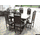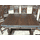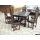 Буфет масивний, великий та вмістимий, декорований красивою різьбленою короною, має шість дверок, три шухляди, маленьке дзеркало та відкриті полички у вигляді балкончиків, в середині є деревяні полиці, дверки буфета зачиняються на ключ. Стіл столовий, розкладний, на чотирьох різьблених ніжках у вигляді статуеток, столешня столу прямокутної форми з заокругленими кутиками, декорована елементами різьби, має дві додаткові вставки. Стіл має розсувний механізм та допоміжні чотири ніжки, що дозволяють розкласти його на більшу довжину. (В оригіналі стіл виглядає так, як на фото, про те є можливість збільшити його довжину, можна самостійно доробити ще одну вставку). Стільці зручні та комфортні, спинки стільців оздоблені декоративною різьбою. Комплект масивний, міцний і надійний, в хорошому стані, привезений з Бельгії. Розкішний та багатофункціональний комплект в стилі Bretonse створений на століття та з особливою ретельністю.