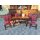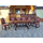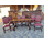 Комплект меблів для вітальні чи столової в стилі Ренесанс. До складу комплекту входить комод великий та малий, стіл та шість стільців. Комплект деревяний, виготовлений з натурального дерева, темно- золотистий дуб, масив, щедро декорований різьбою та кованим металом. Кожна одиниця даного комплекту на ніжках у вигляді лап, та декорована обємною різьбою. Комод великий, має чотири дверки та чотири шухляди, дверки зачиняються на ключ, комод малий має дві дверки та дві шухляди, дверки зачиняються на ключ. Стіл прямокутний, розкладний, на чотирьох ніжках, спинки та сидіння стільців обтягнуті якісним замінником, оздоблені декоративними цвяшками. Комплект великий та масивний, в хорошому стані, без видимих пошкоджень чи дефектів, привезений з Бельгії. Розкішний та елегантний комплект стане окрасою Вашої оселі та подарує Вам приємні моменти відпочинку.