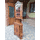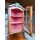 Деревяна кутова вітрина в стилі Луї. Вітрина з підсвіткою, виготовлена з натурального дерева, золотистий дуб, фасад- масив, декорована елементами різьби. Вітрина має дві дверки, одна з них зі склом та одну відкриту полицю, дверки вітрини зачиняються на ключ, всередині є деревяні полиці та підсвітка. Вітрина в доброму стані, вмістима та зручна в користуванні, привезена з Бельгії.