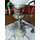 Лампа настільна на одну лампочку, ніжка лампи виготовлена з литого металу- посріблена латунь, абажур виготовлений з матового скла, всередині, під абажуром є скляна колба. Лампа дуже красива, в хорошому стані, привезена з Бельгії.