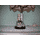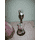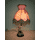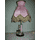 Настільна лампа-статуетка. Основа лампи виготовлена з масиву натурального дерева та латуні, декорована красивою фарфоровою статуеткою у вигляді босоногого юнака, абажур обшитий атласною тканиною ніжного рожевого кольору, оздоблений бахромою. Лампа в хорошому стані, привезена з Бельгії.