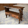 Маленький деревяний бомбетель (лавка)- столик трансформер. Іспанія. В складеному вигляді- це компактний столик з двома шухлядами і додатковою поличкою, в розкладеному вигляді- це зручна лавка (бомбетель). Лавка- столик виготовлена з натурального дерева темний дуб, масив, декорована елементами різьби. Лавка- столик в хорошому стані, без видимих дефектів чи пошкоджень, привезена з Бельгії.