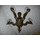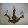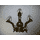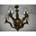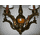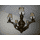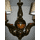 Люстра підвісна на 5 лампочок у вигляді свічок, виготовлена з литого металу-латунь та дерева, темний дуб, масив. Кожна лампочка накрита плафоном, плафони маленькі та делікатні, виготовлені з тканини бежевого кольору. Люстра в хорошому стані, привезена з Бельгії.