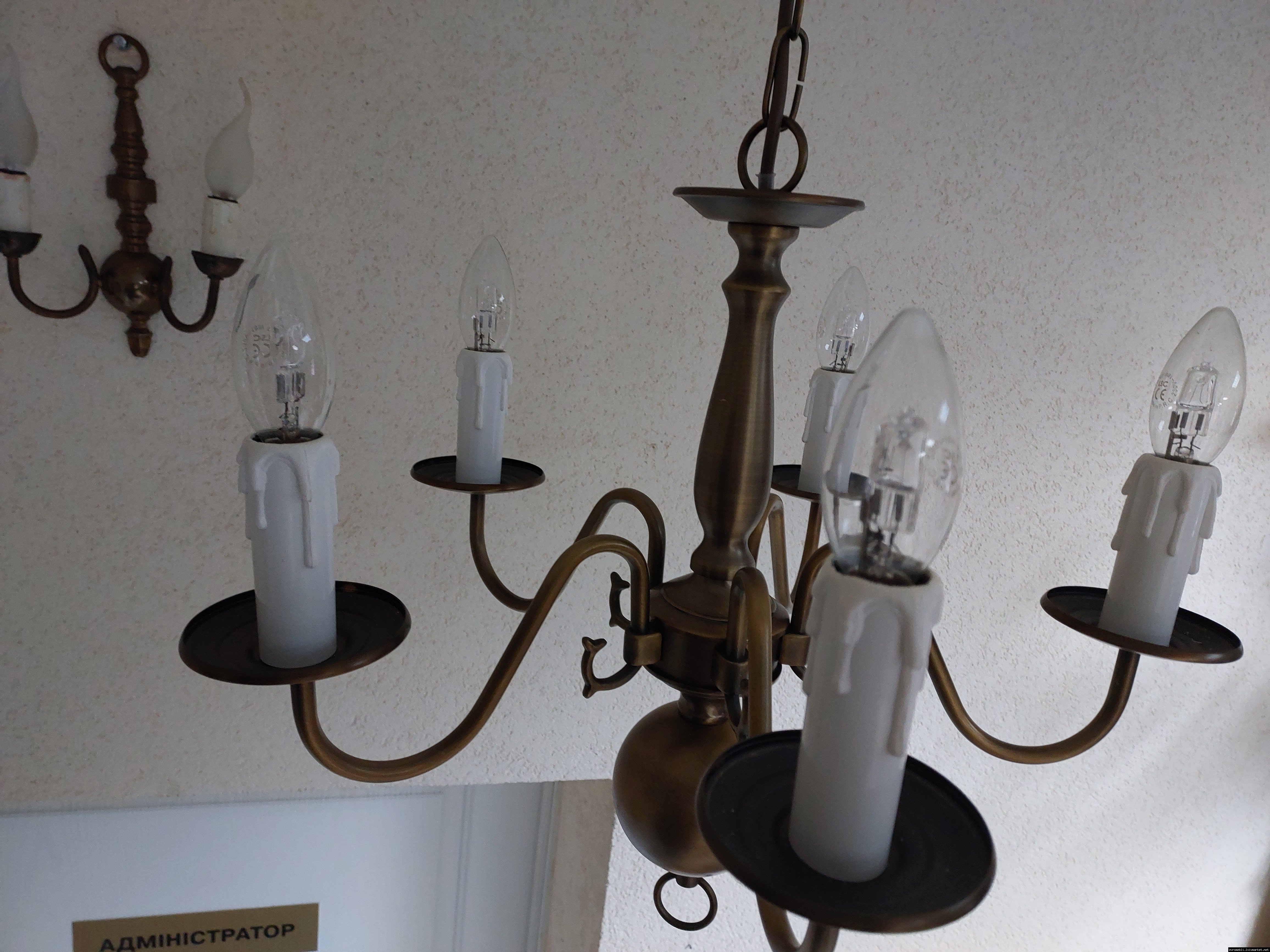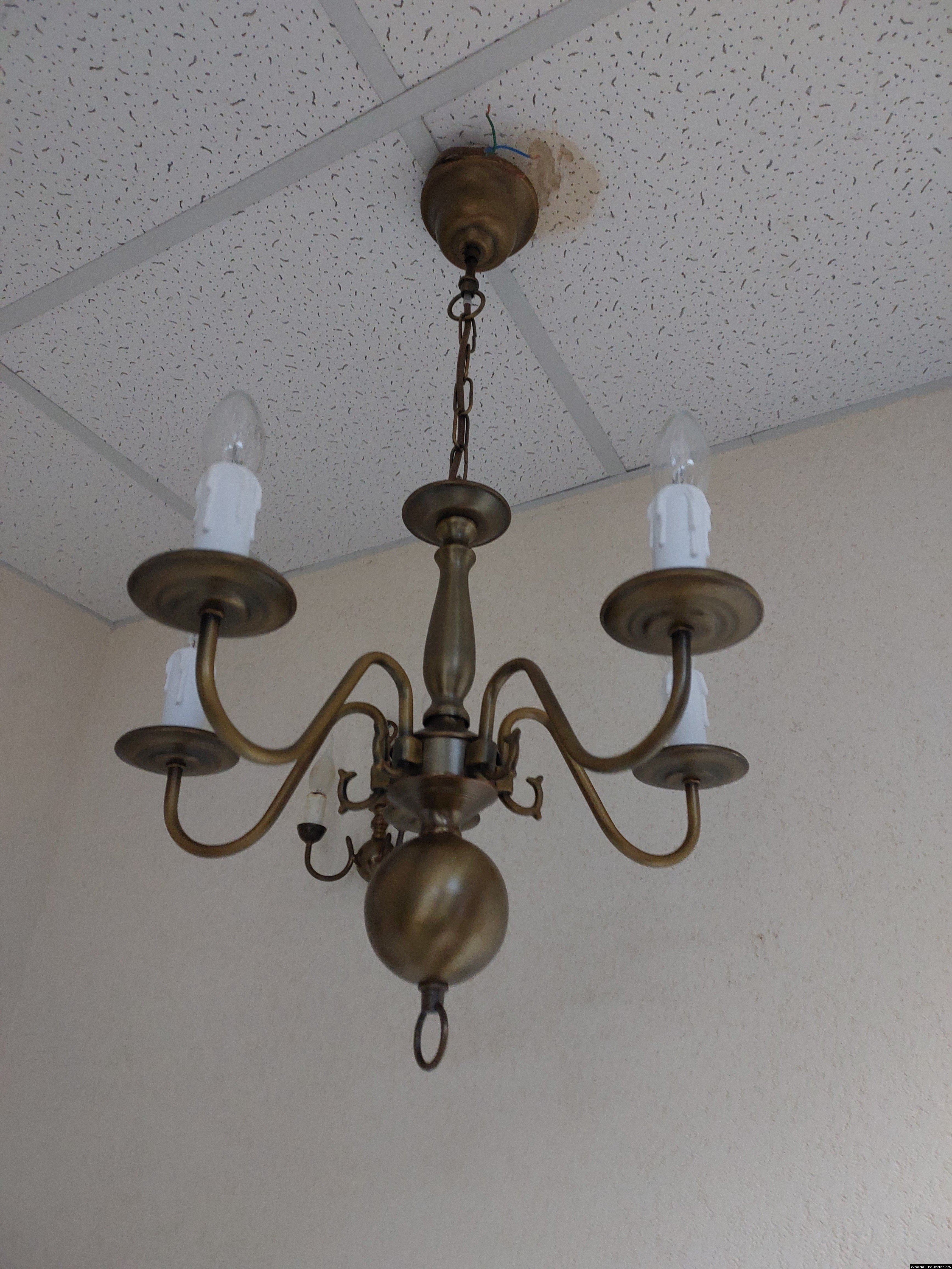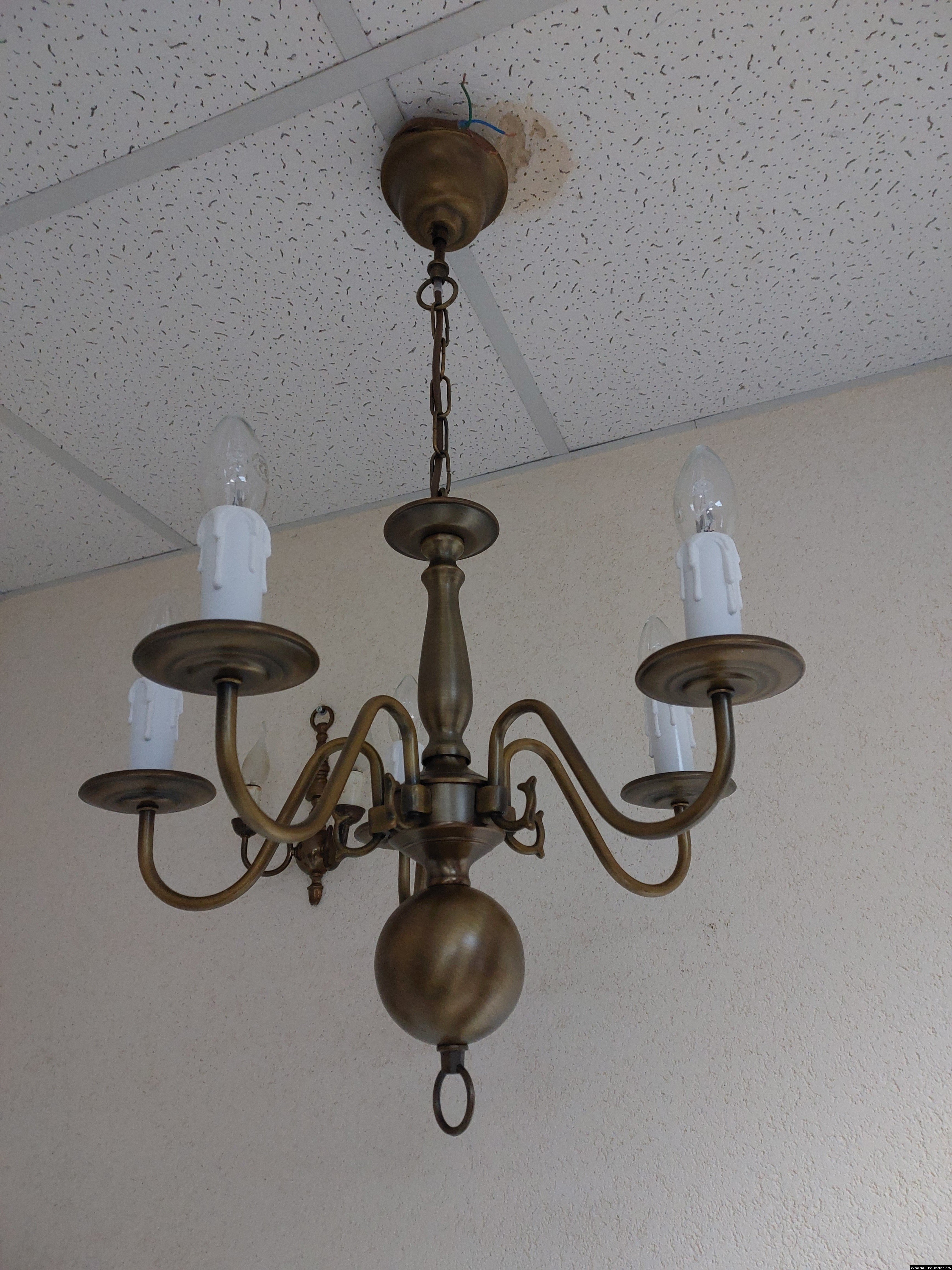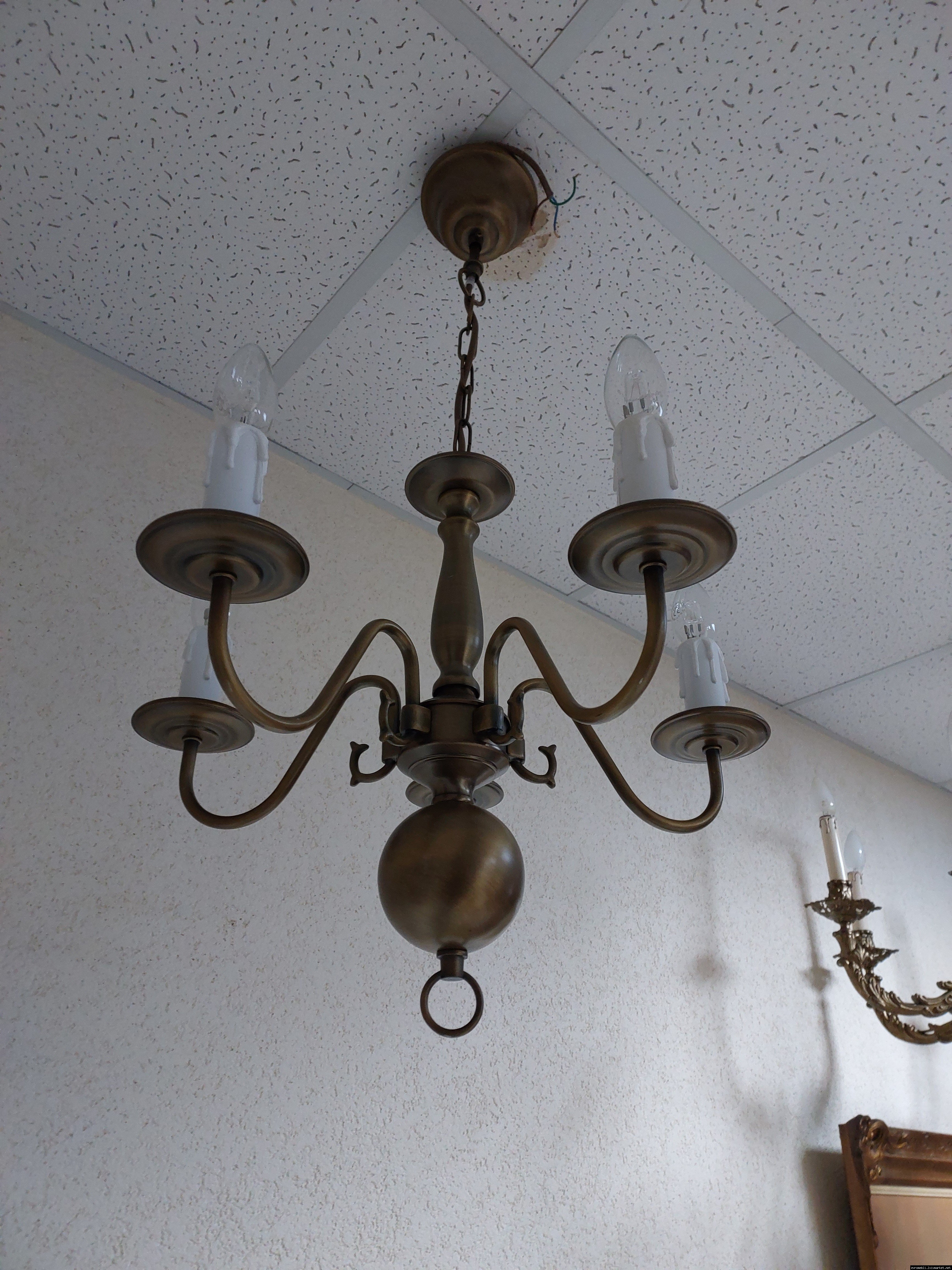 Дуже красива, велика, масивна, підвісна люстра. Люстра на шість лампочок у вигляді свічок. Люстра виготовлена з латуні, щедро декорована литтям у вигляді різьби. Люстра в хорошому, справному стані, привезена з Бельгії. Люстра красиво доповнить вітальню, спальню, кухню, чи стане предметом захоплення Вашого інтерєру.