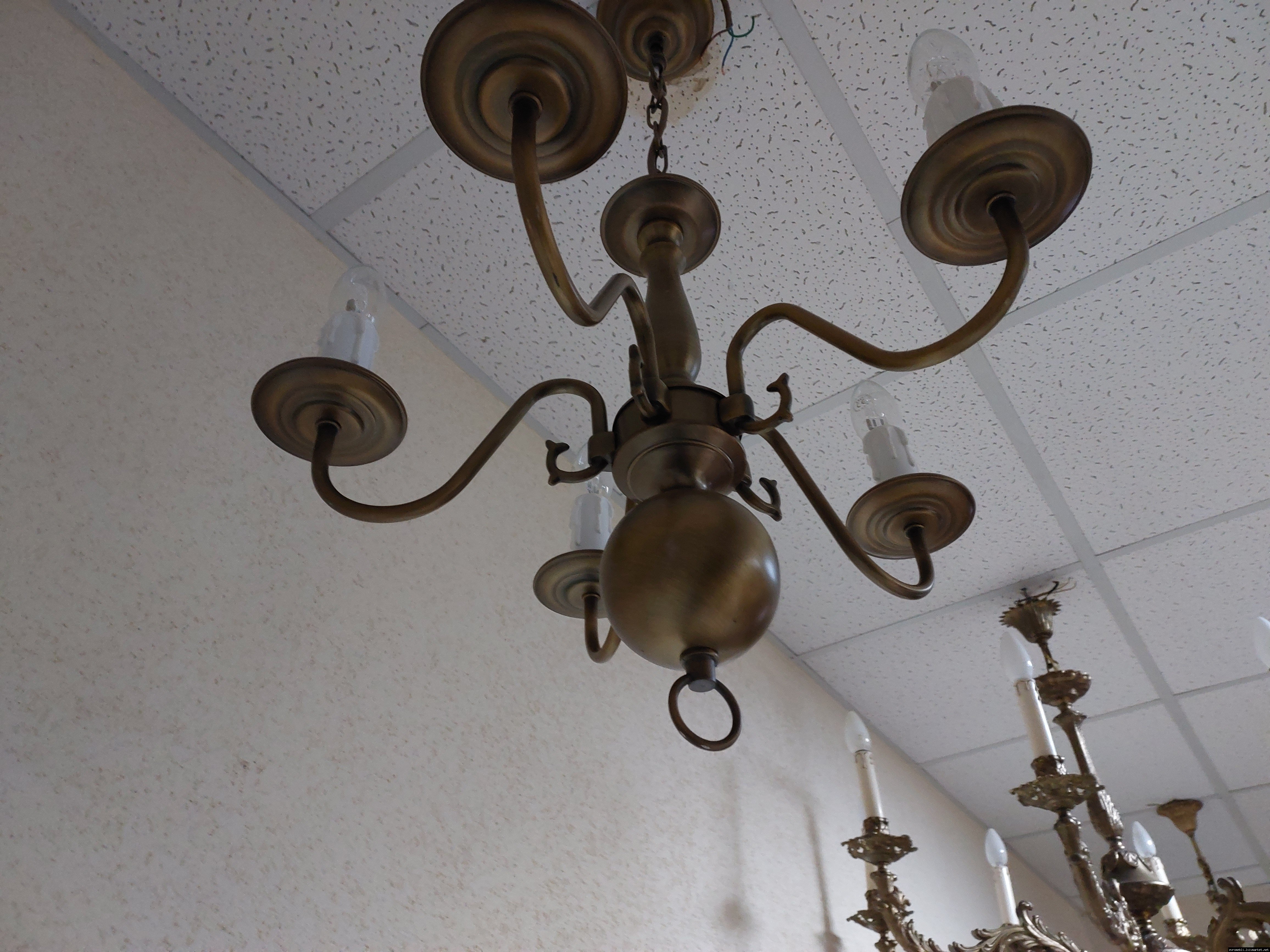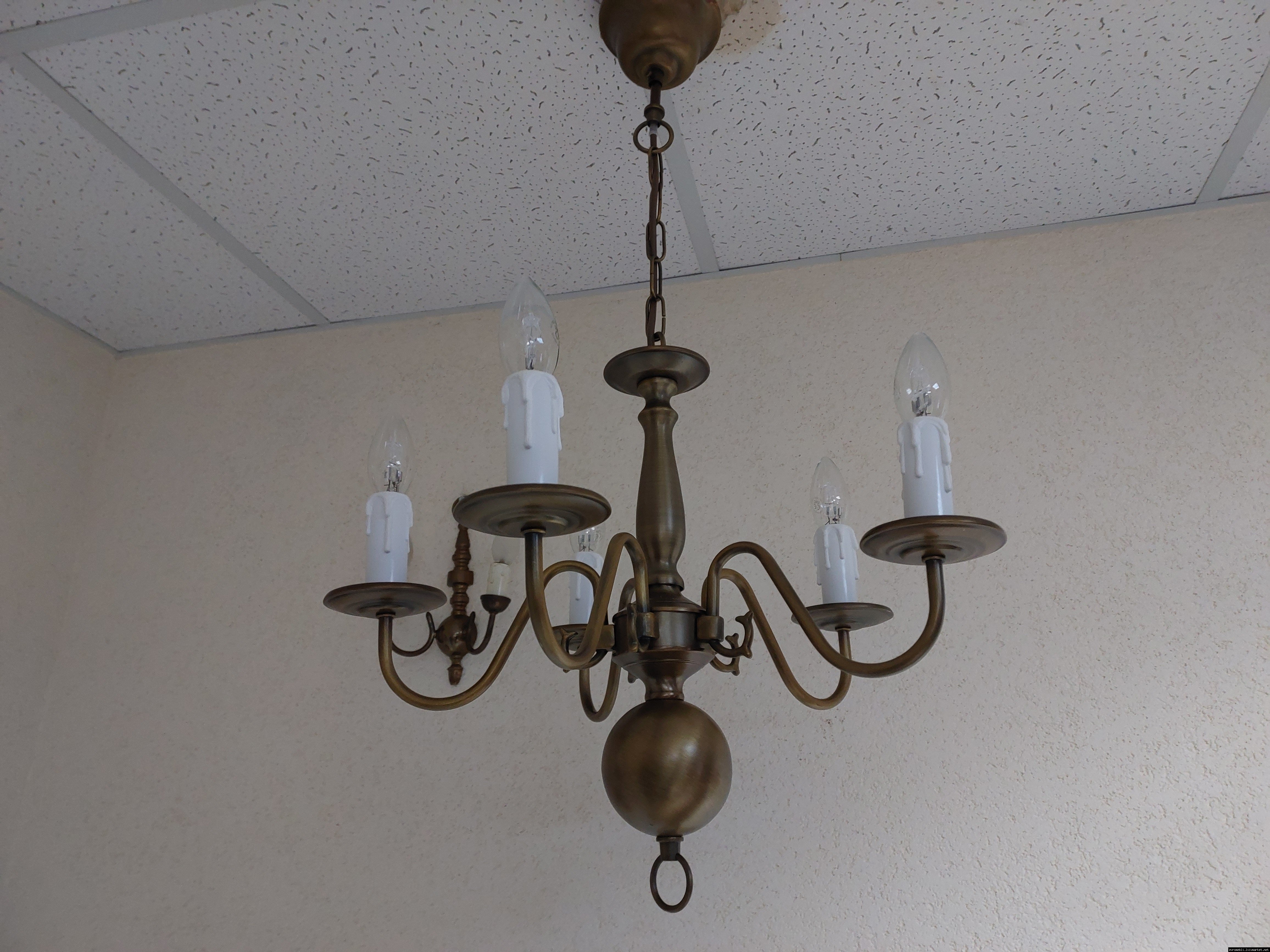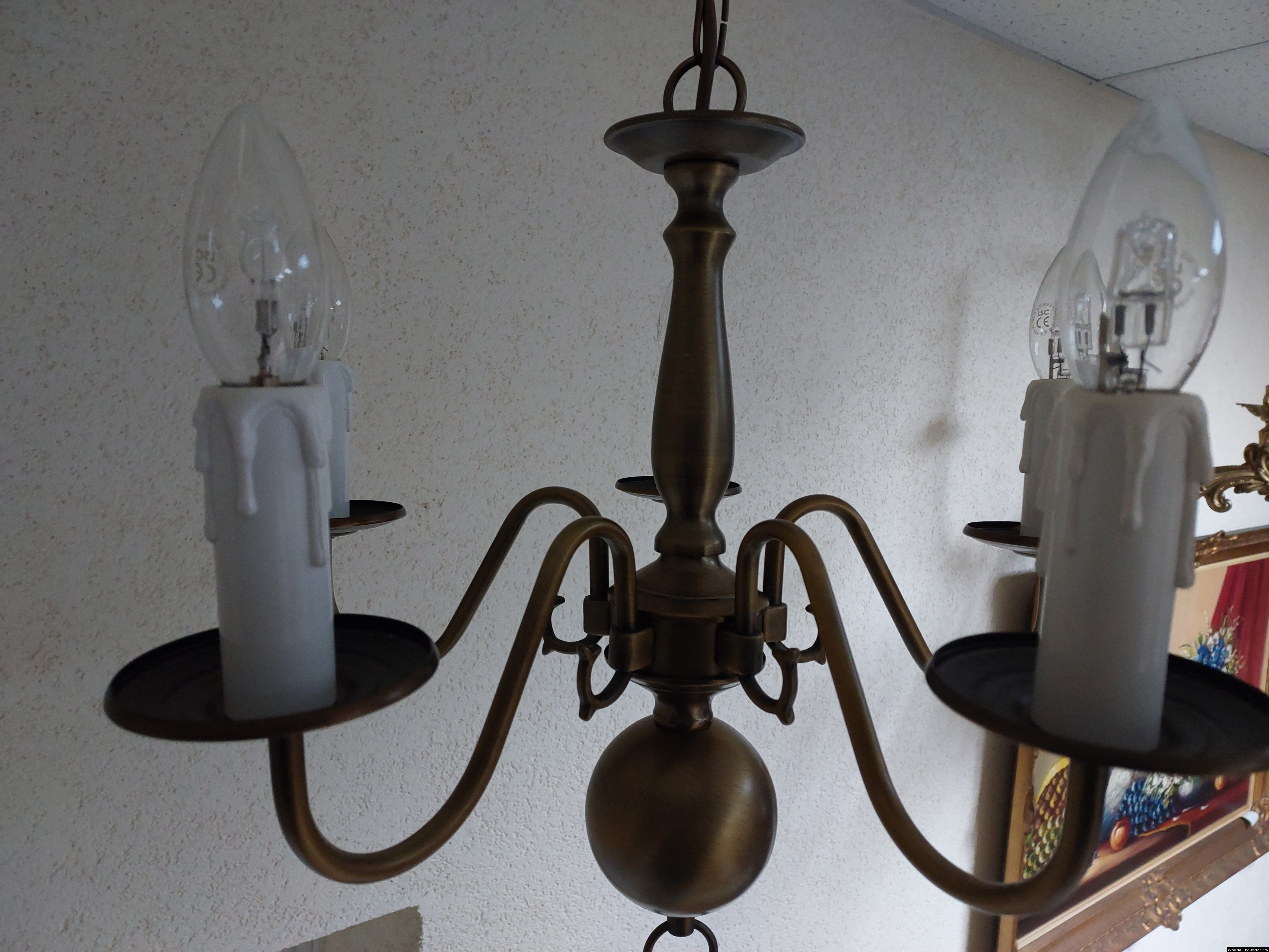 Дуже красива, велика, масивна, підвісна люстра. Люстра на шість лампочок у вигляді свічок. Люстра виготовлена з латуні, щедро декорована литтям у вигляді різьби. Люстра в хорошому, справному стані, привезена з Бельгії. Люстра красиво доповнить вітальню, спальню, кухню, чи стане предметом захоплення Вашого інтерєру.