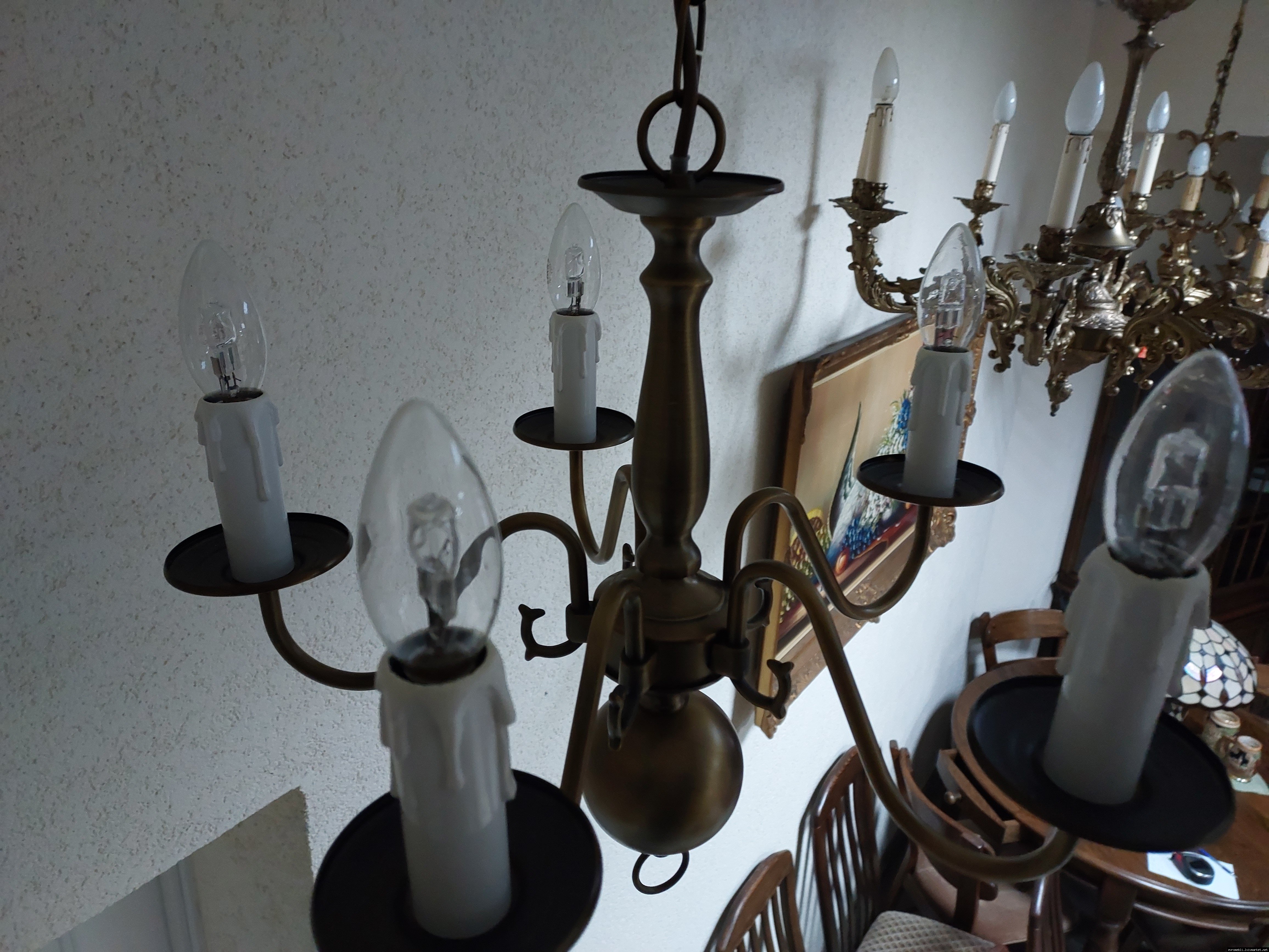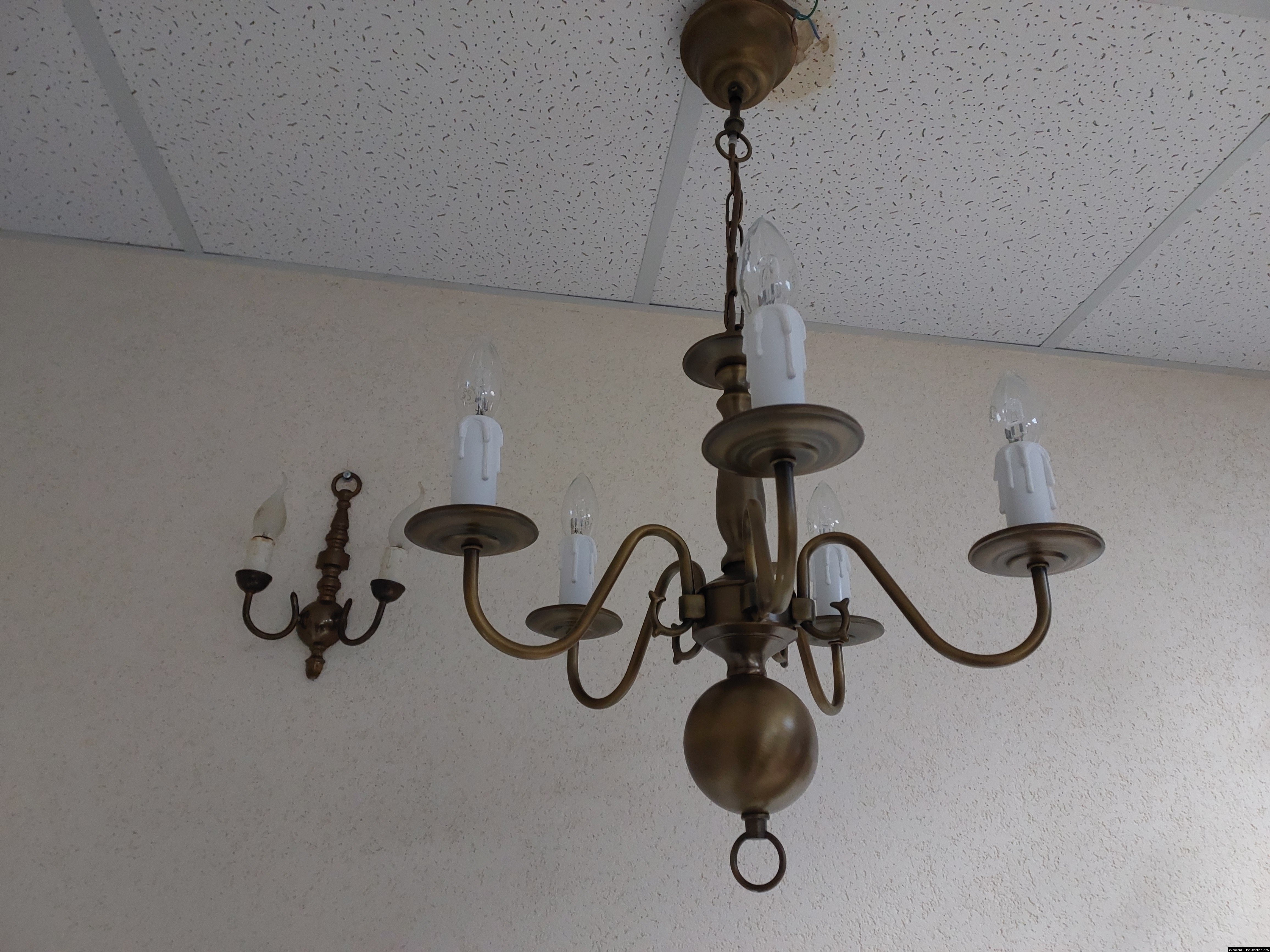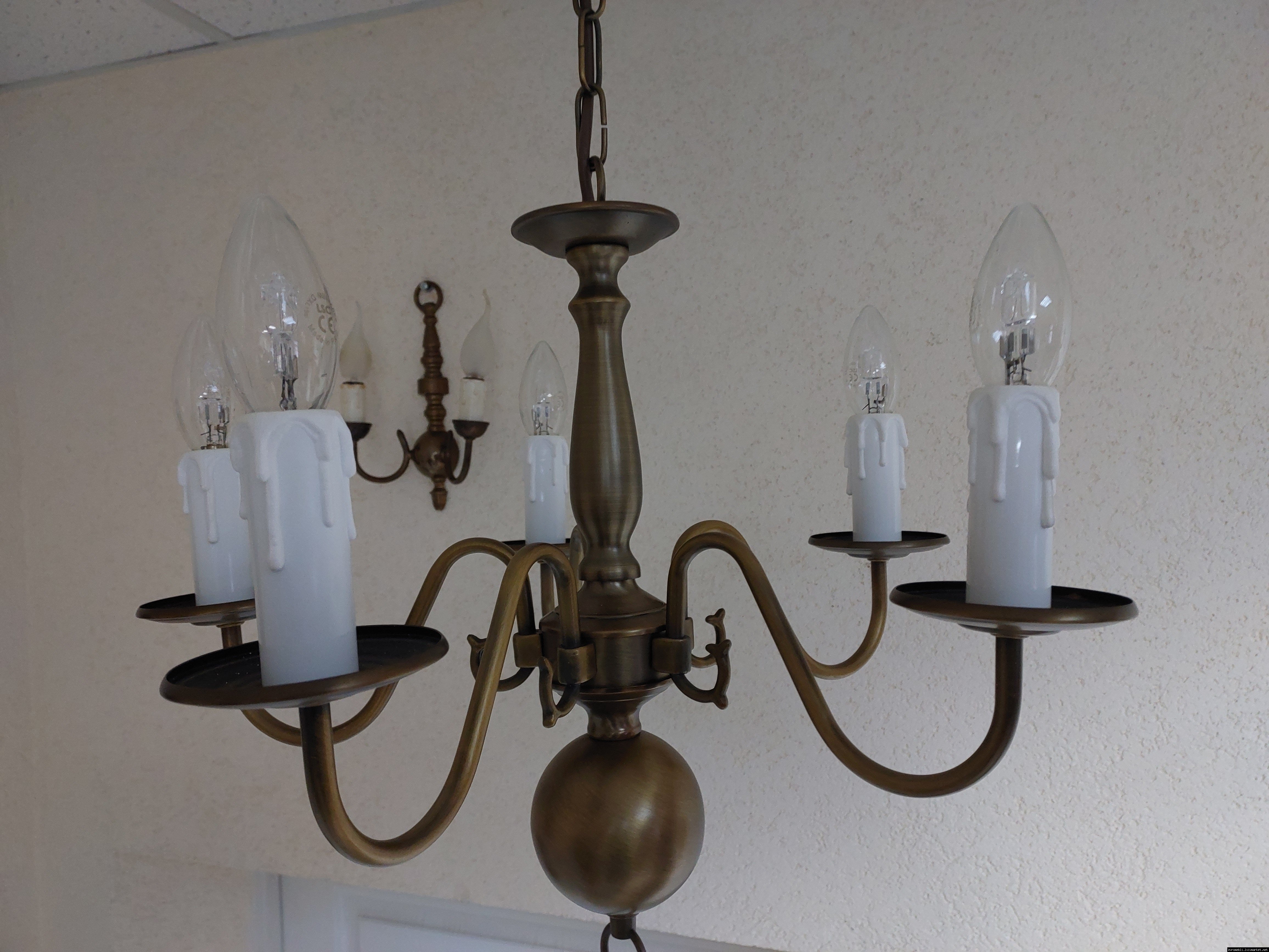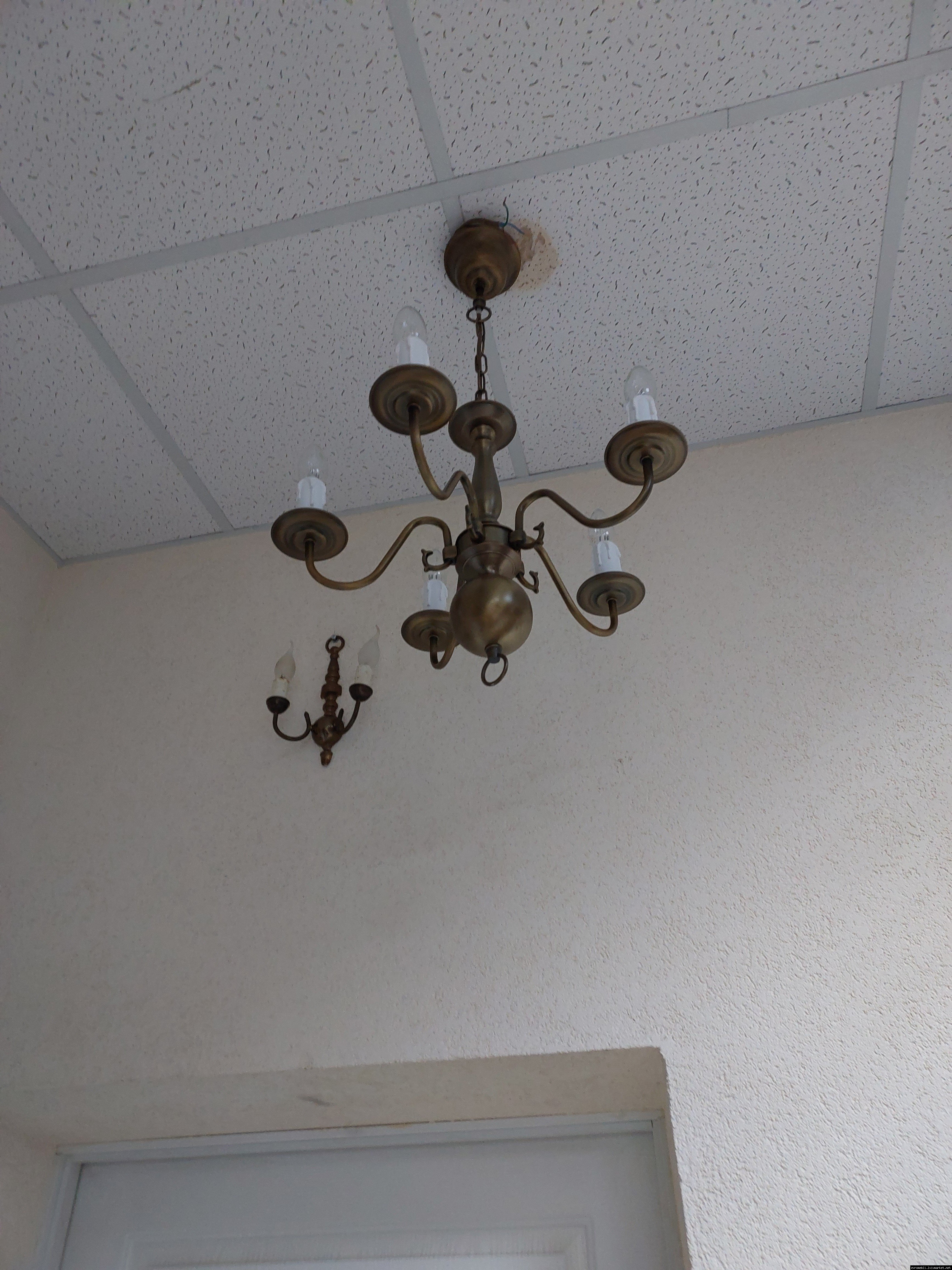 Дуже красива, велика, масивна, підвісна люстра. Люстра на шість лампочок у вигляді свічок. Люстра виготовлена з латуні, щедро декорована литтям у вигляді різьби. Люстра в хорошому, справному стані, привезена з Бельгії. Люстра красиво доповнить вітальню, спальню, кухню, чи стане предметом захоплення Вашого інтерєру.
