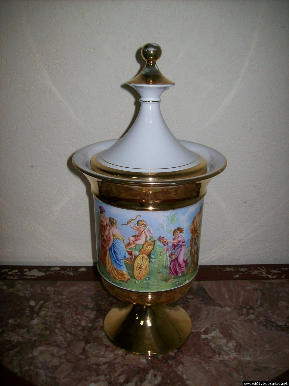 декоративна, настільна ваза з кришкою "Райський сад". Італія. Ваза-