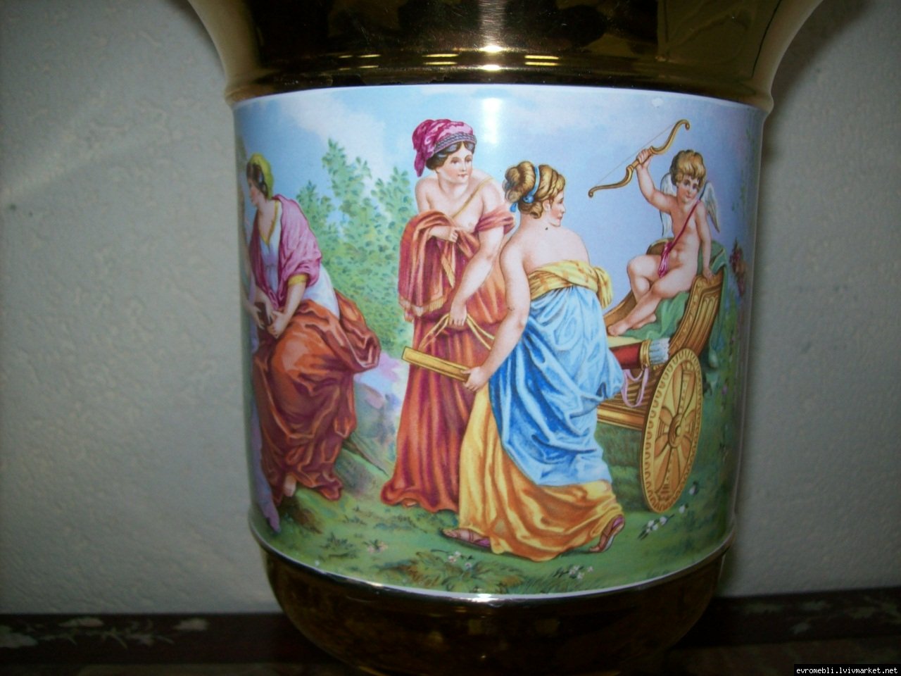 кераміки, фарфор, декорована ручним розписом та позолотою. Ваза в
