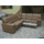 Новий шкіряний кутовий розкладний диван з релаксуючими кутовими подушками та нішею для білизни. Диван сучасний, модерновий, на металевих ніжках, обтягнутий шкірою світло- коричневого кольору, диван зручний і комфортний для сну та відпочинку, країна виробник- Німеччина.