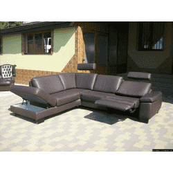 Новий шкіряний кутовий диван реклайнер HUKLA. Диван з релаксуючими підголовниками (підіймаються, опускаються, нахиляються), висувним механізмом на електроприводі (одна ліва бокова частина дивану- з функцією елетрорелаксу) та нішею для білизни. Підголовники регулюються вручну, спинка та сидіння регулюються за допомогою сенсорних кнопок. Диван на деревяних ніжках, нерозкладний, шкіра темно- коричневого кольору. Диван мякий, дуже зручний та комфортний, країна виробник- Німеччина.