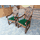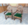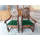 Пара старовинних, дуже красивих, рідкісних, атикварних крісел ручної роботи в стилі Brugge. Крісла на точених ніжках, виготовлені з натурального дерева, темно- золотистий дуб, масив, щедро декоровані елементами різьби ручної роботи, сидіння крісел обтягнуте оксамитом зеленого кольору зі стриженим ворсом, оздоблені декоративними цвяшками. Крісла-трони з підлокотниками, зручні та комфортні, в хорошому стані, привезені з Бельгії.