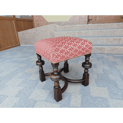 Красивий, маленький, деревяний пуф з подушкою. Пуфік на чотирьох точених ніжках, виготовлений з натурального дерева, темний дуб, масив, подушка обшита тканиною червоного кольору, тканина оздоблена декоративними цвяшками. Пуфік в хорошому стані, привезений з Бельгії.