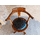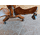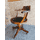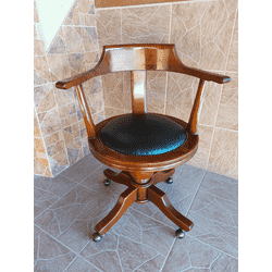 Шкіряне, офісне крісло з підлокотниками на деревяній основі. Крісло виготовлене з масиву натурального дерева, вишня, сидіння обтягнуте шкірою темно- коричневого кольору, оздоблене декоративними цвяшками. Крісло на коліщатах, без регулятора висоти. Крісло ручної роботи, дуже зручне та комфортне, в хорошому стані, привезене з Бельгії.