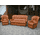Шкіряний комплект 3+1+1, до комплекту входить трьохмісний, нерозкладний диван та два крісла. Комплект на деревяній основі, декорований вставками дерева, горіх, з елементами різьби, шкіра коньячного кольору. Комплект мякий, зручний та комфортний, в хорошому стані, привезений з Бельгії.