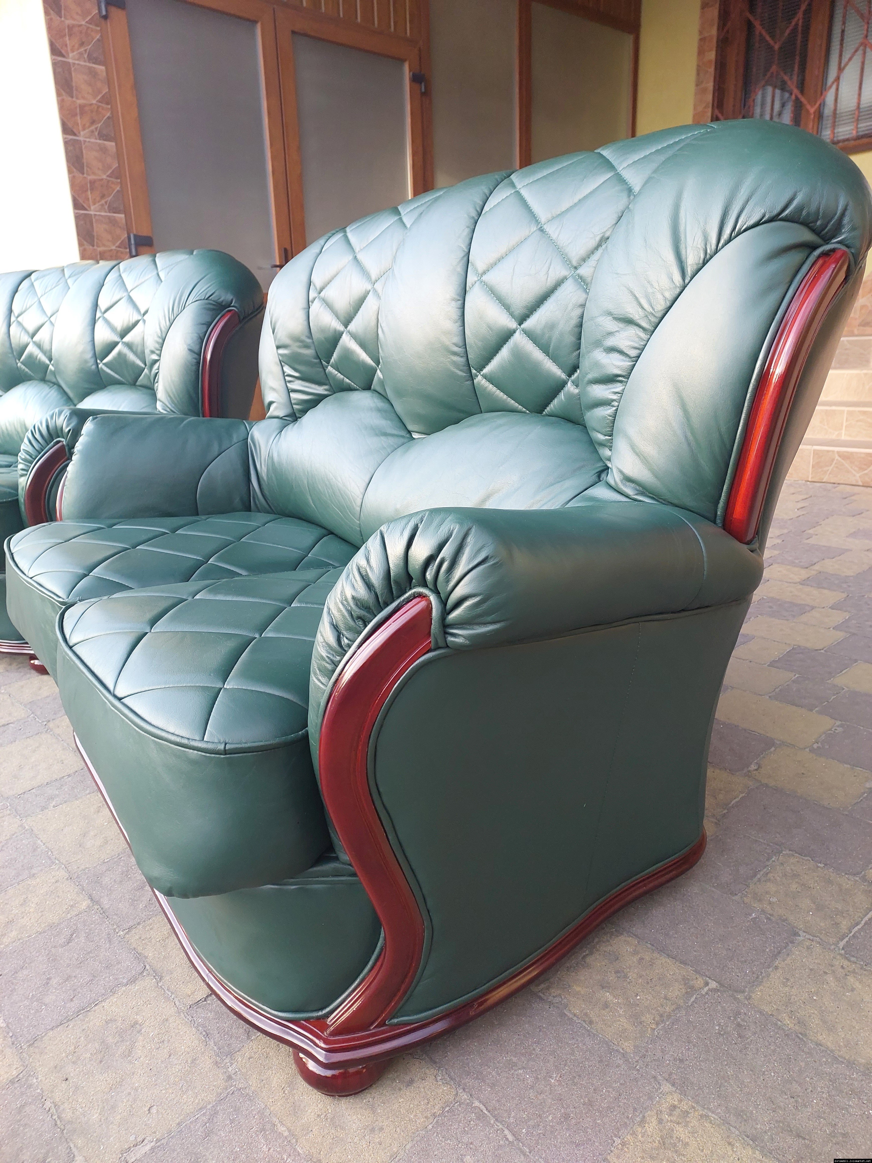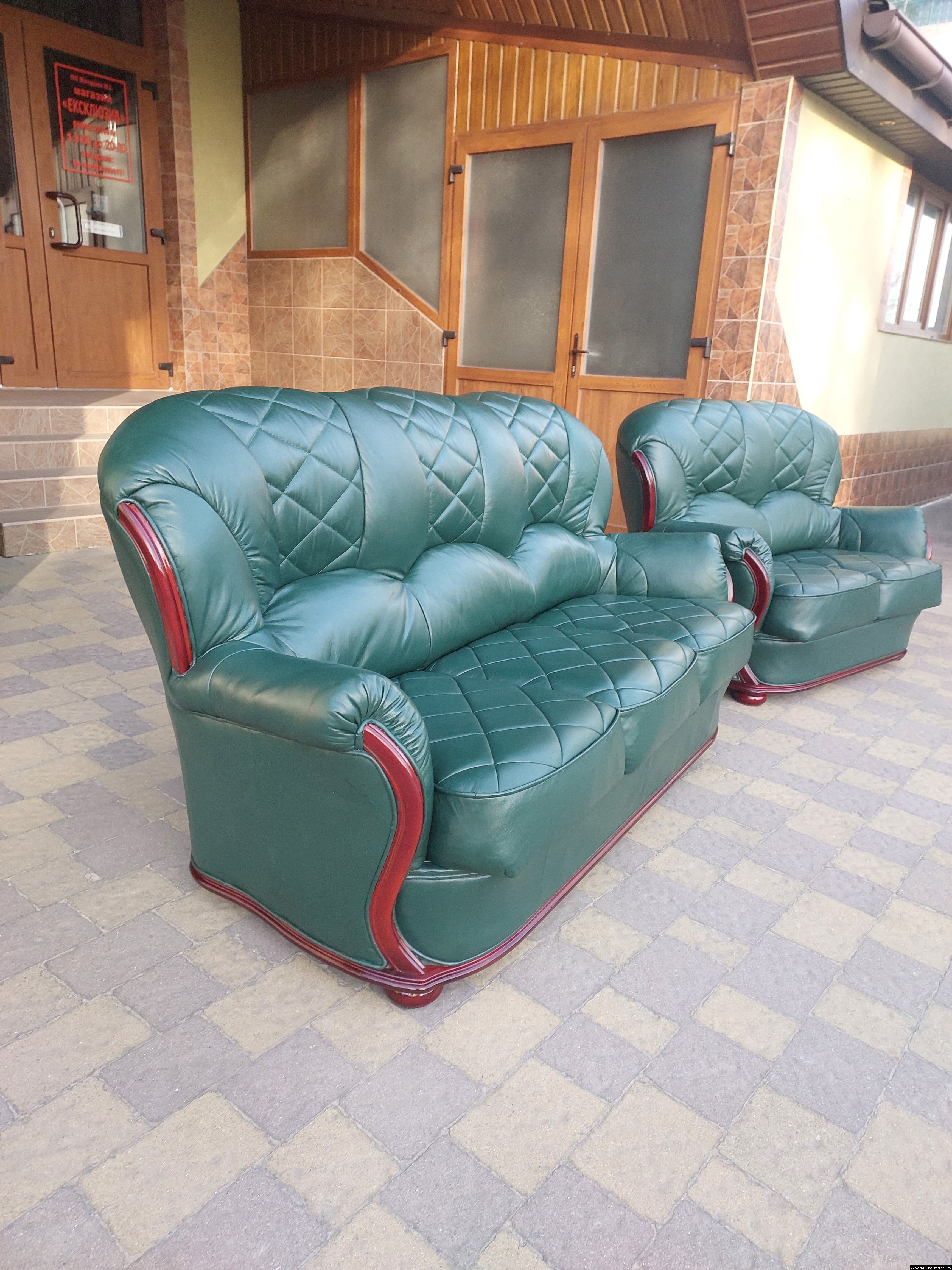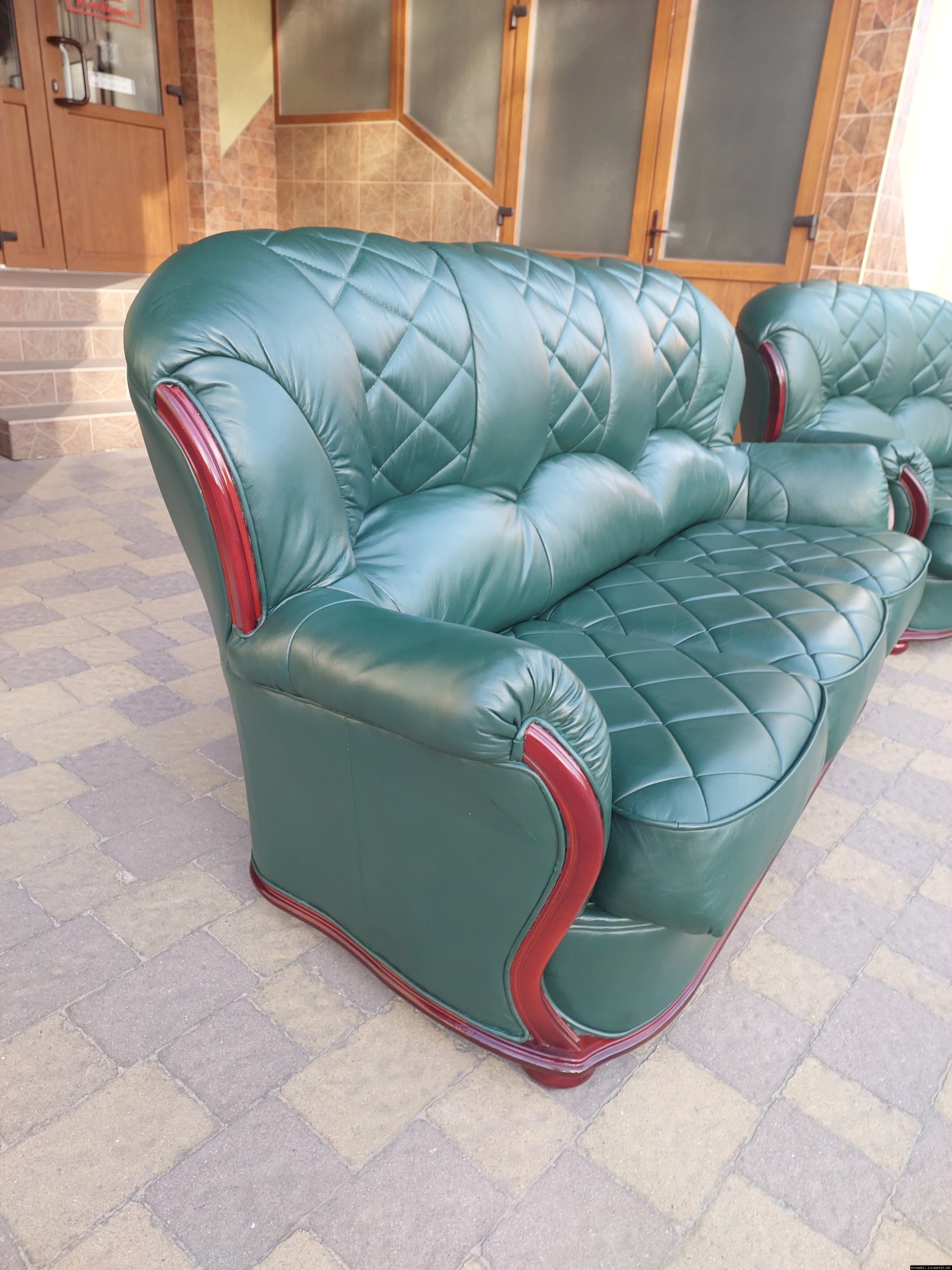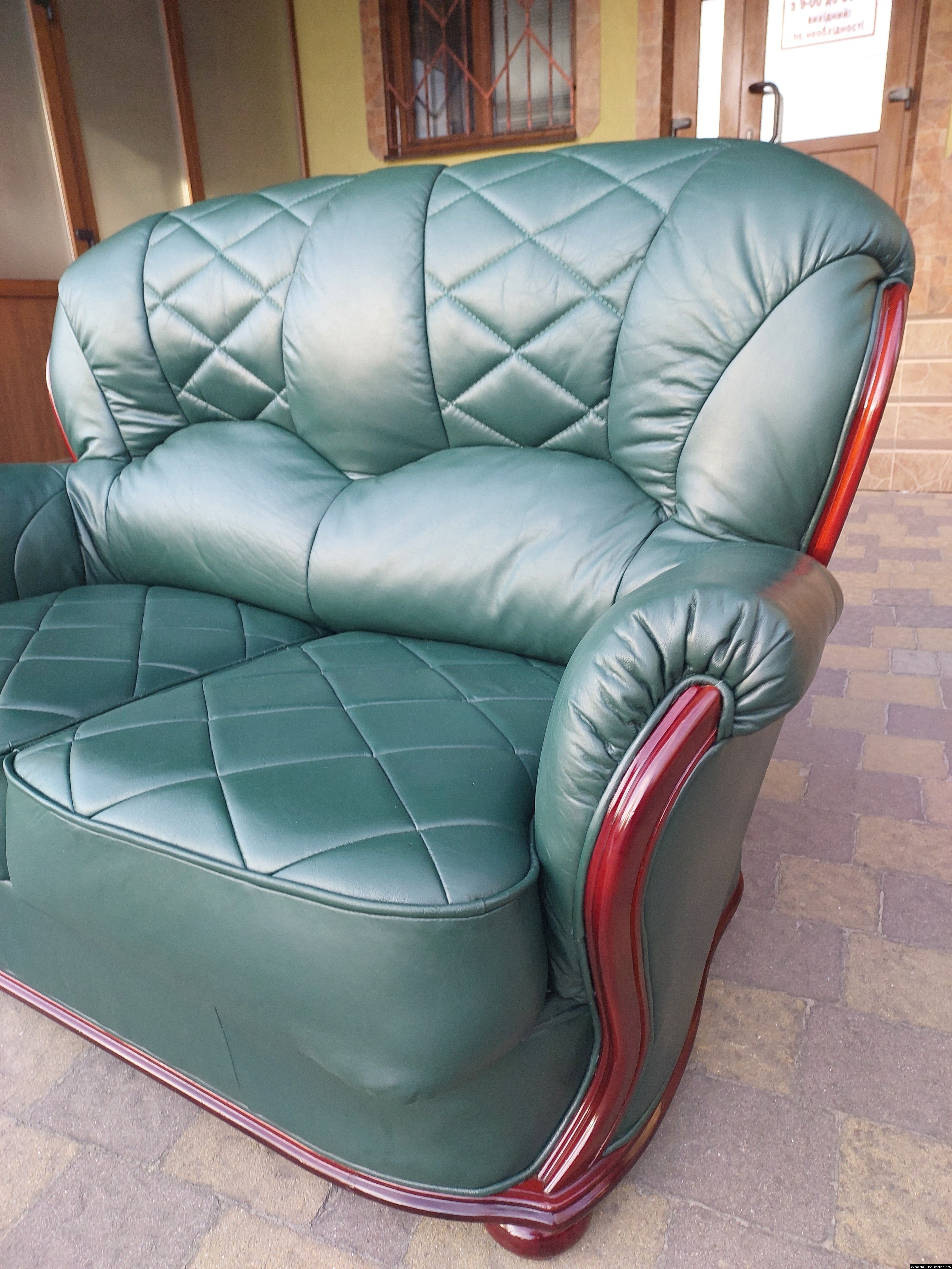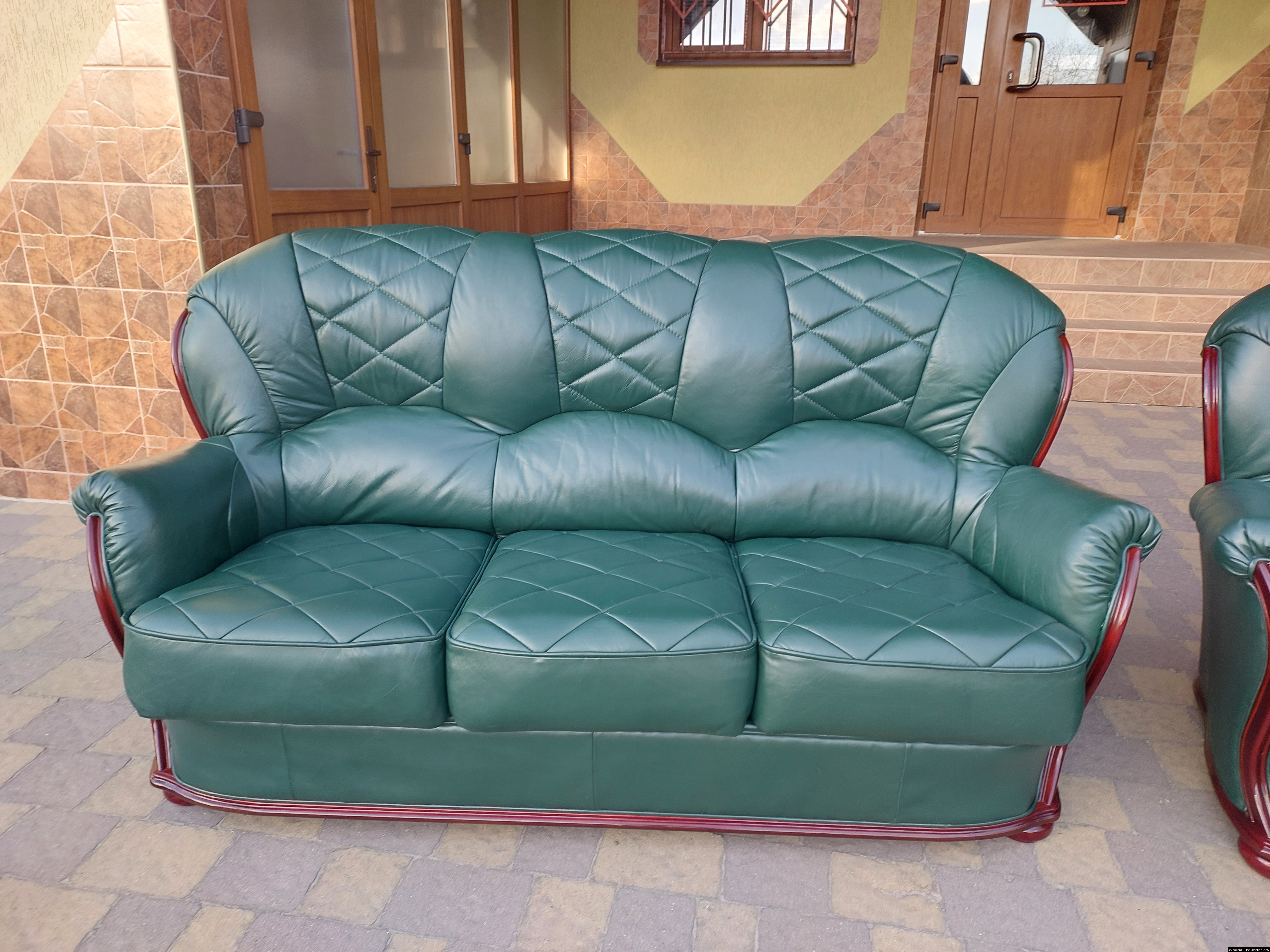 Шкіряний комплект мяких меблів в благородному смарагдовому кольорі. Натуральний вигляд, класичний дизайн та неймовірний комфорт - це те,що зробить Вашу вітальню чи кабінет особливим.