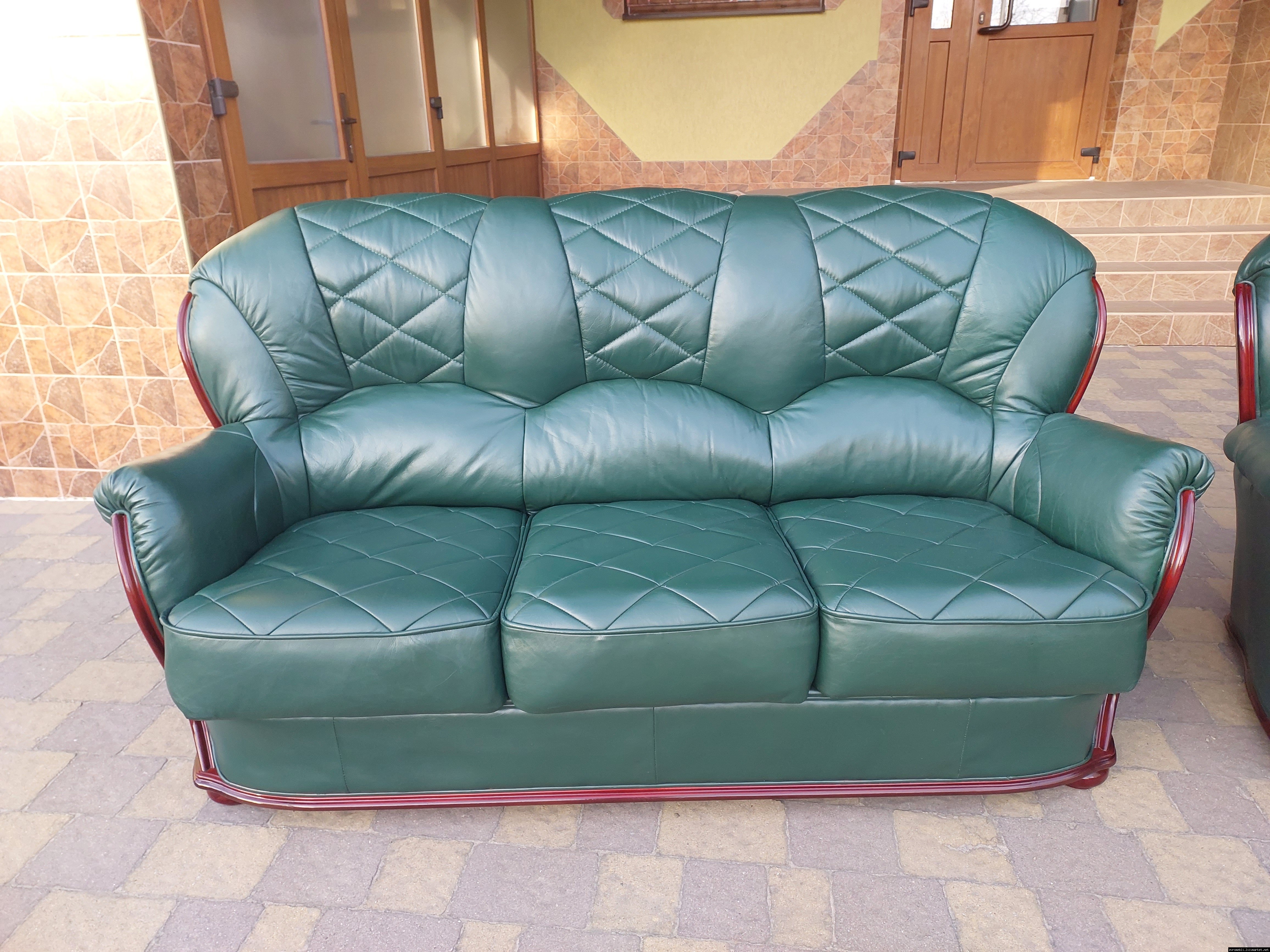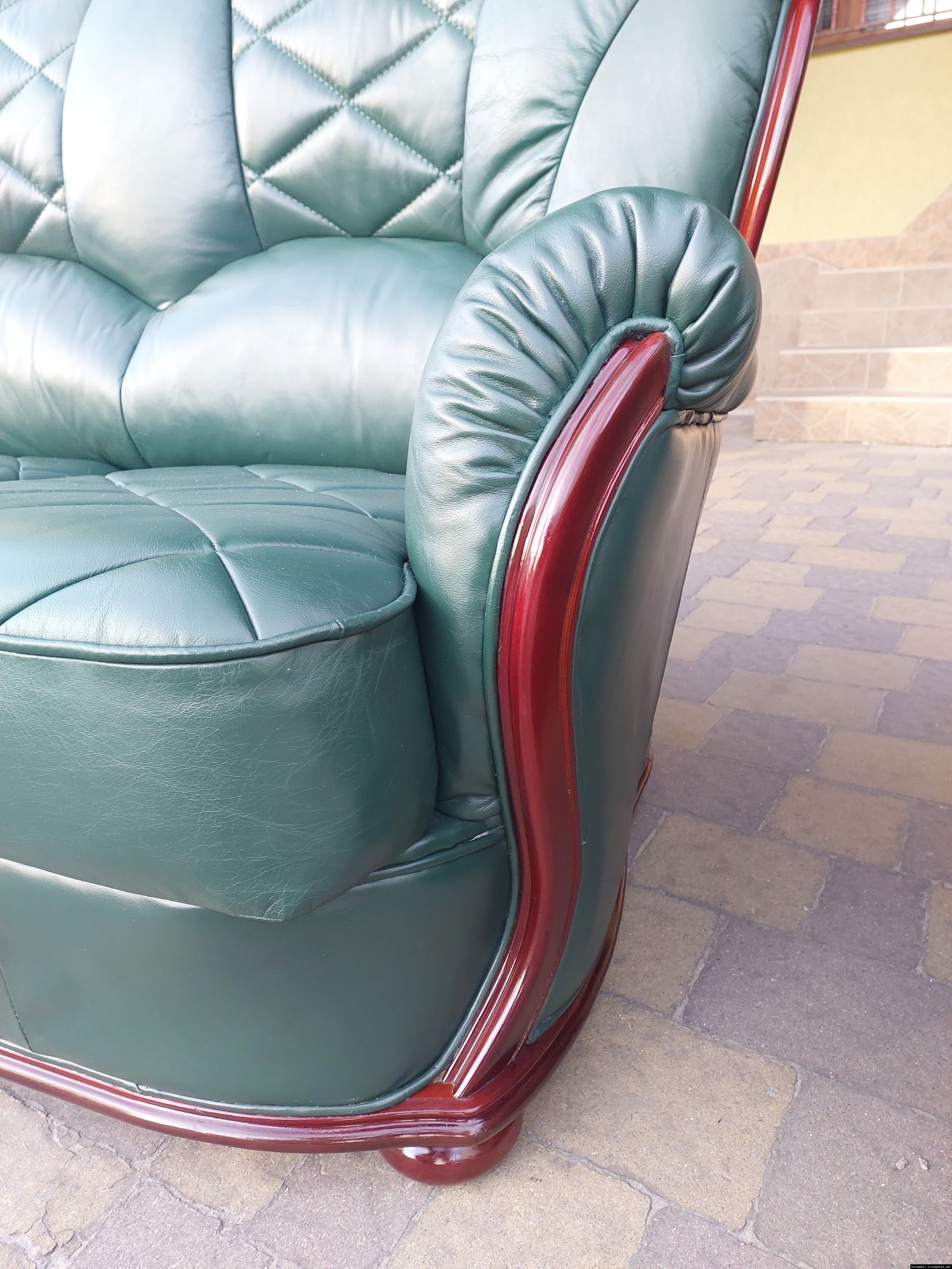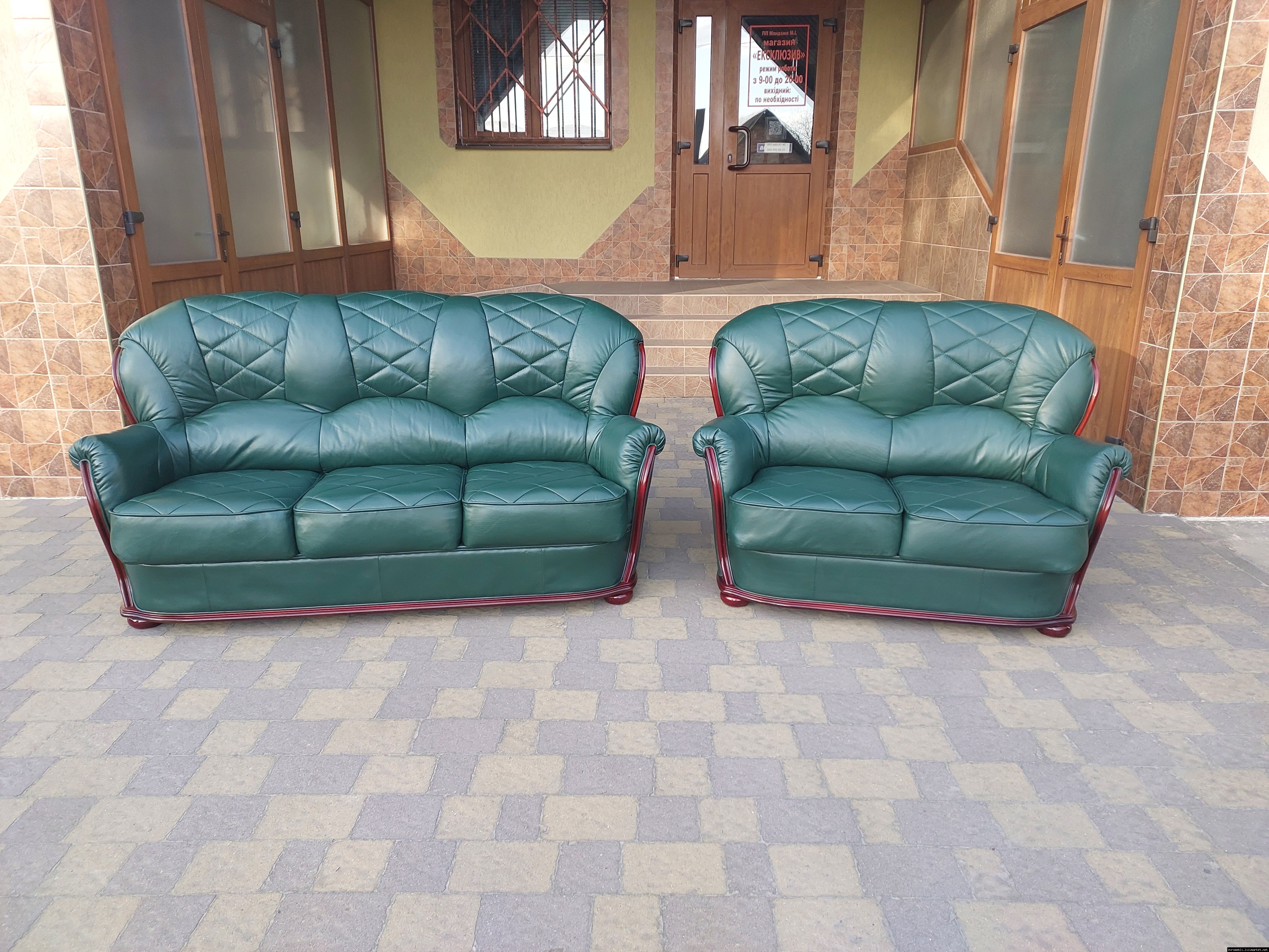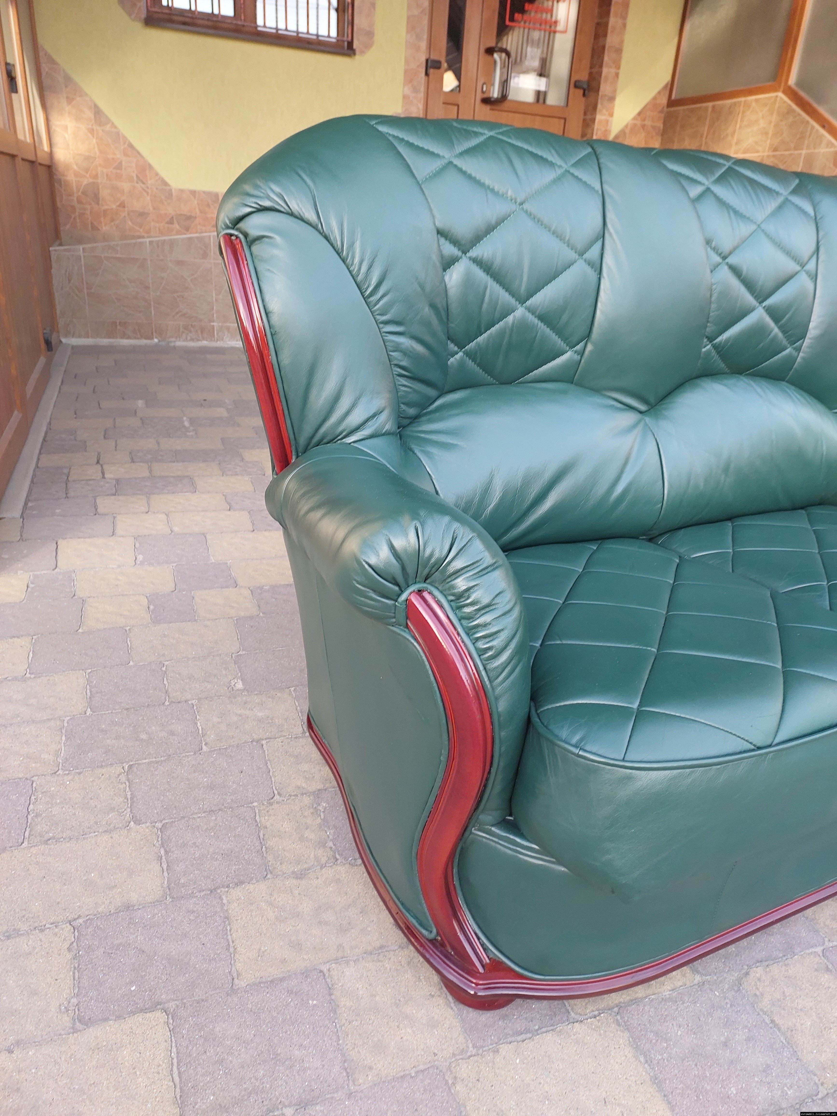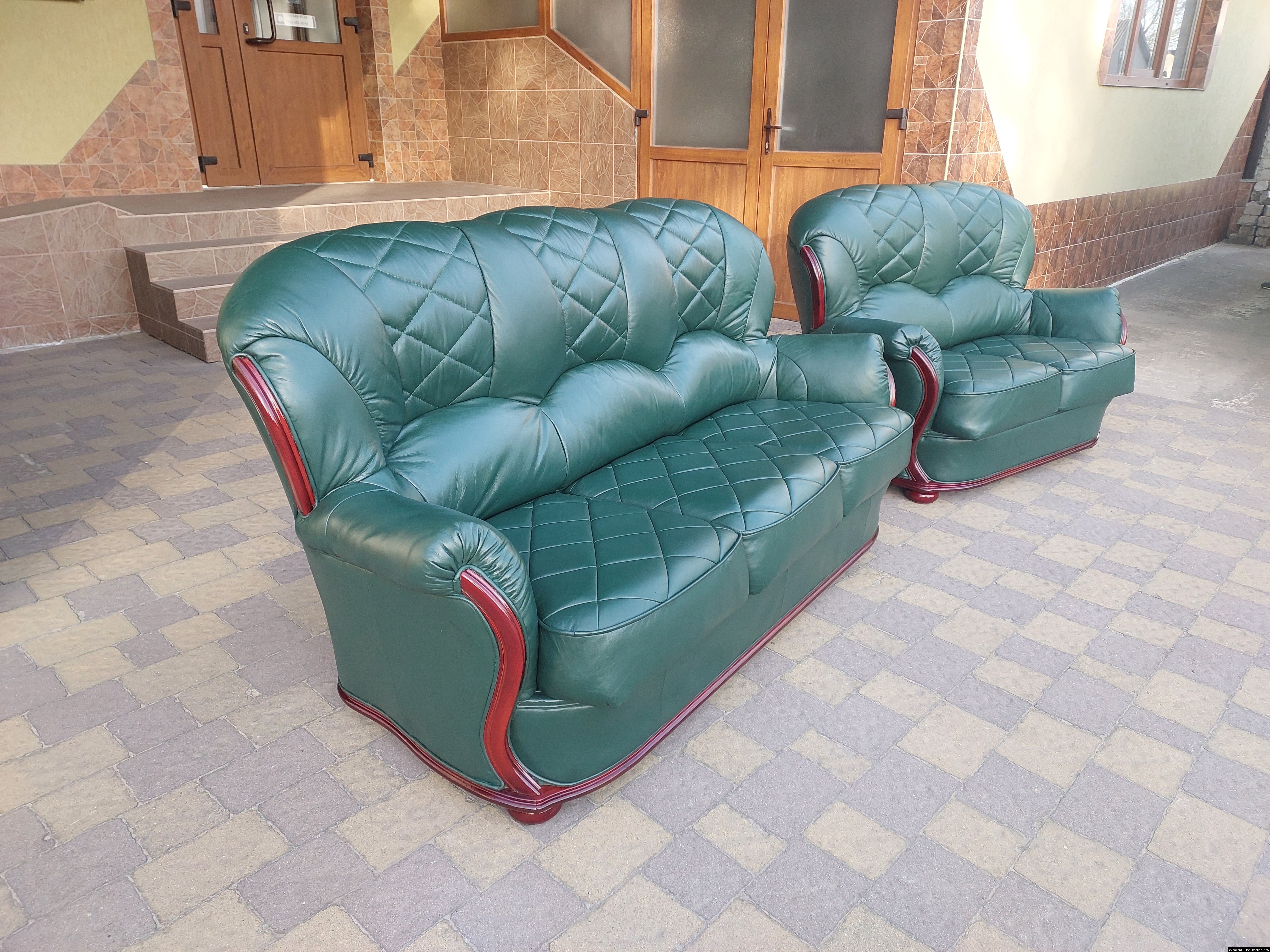 Шкіряний комплект мяких меблів в благородному смарагдовому кольорі. Натуральний вигляд, класичний дизайн та неймовірний комфорт - це те,що зробить Вашу вітальню чи кабінет особливим.