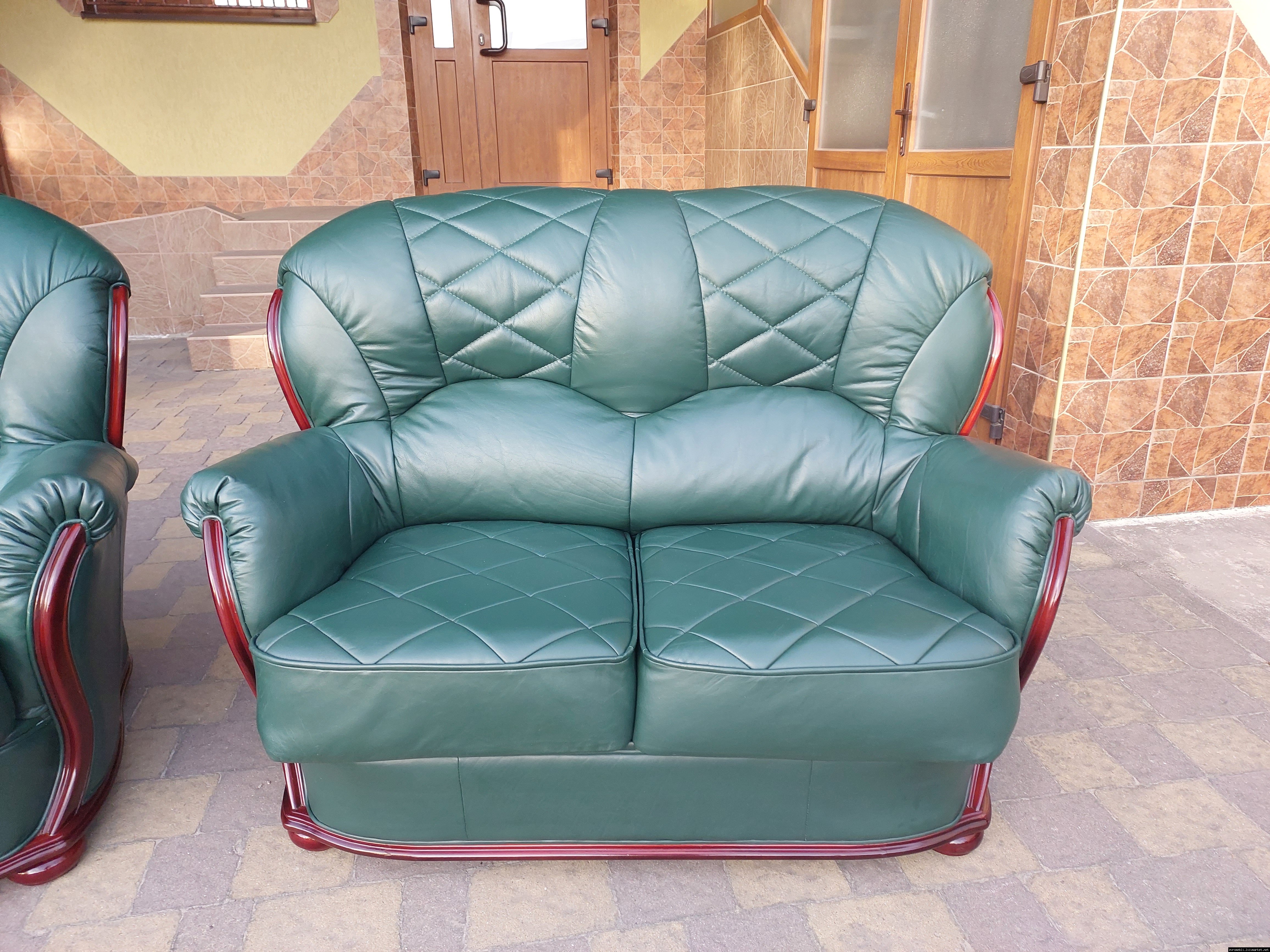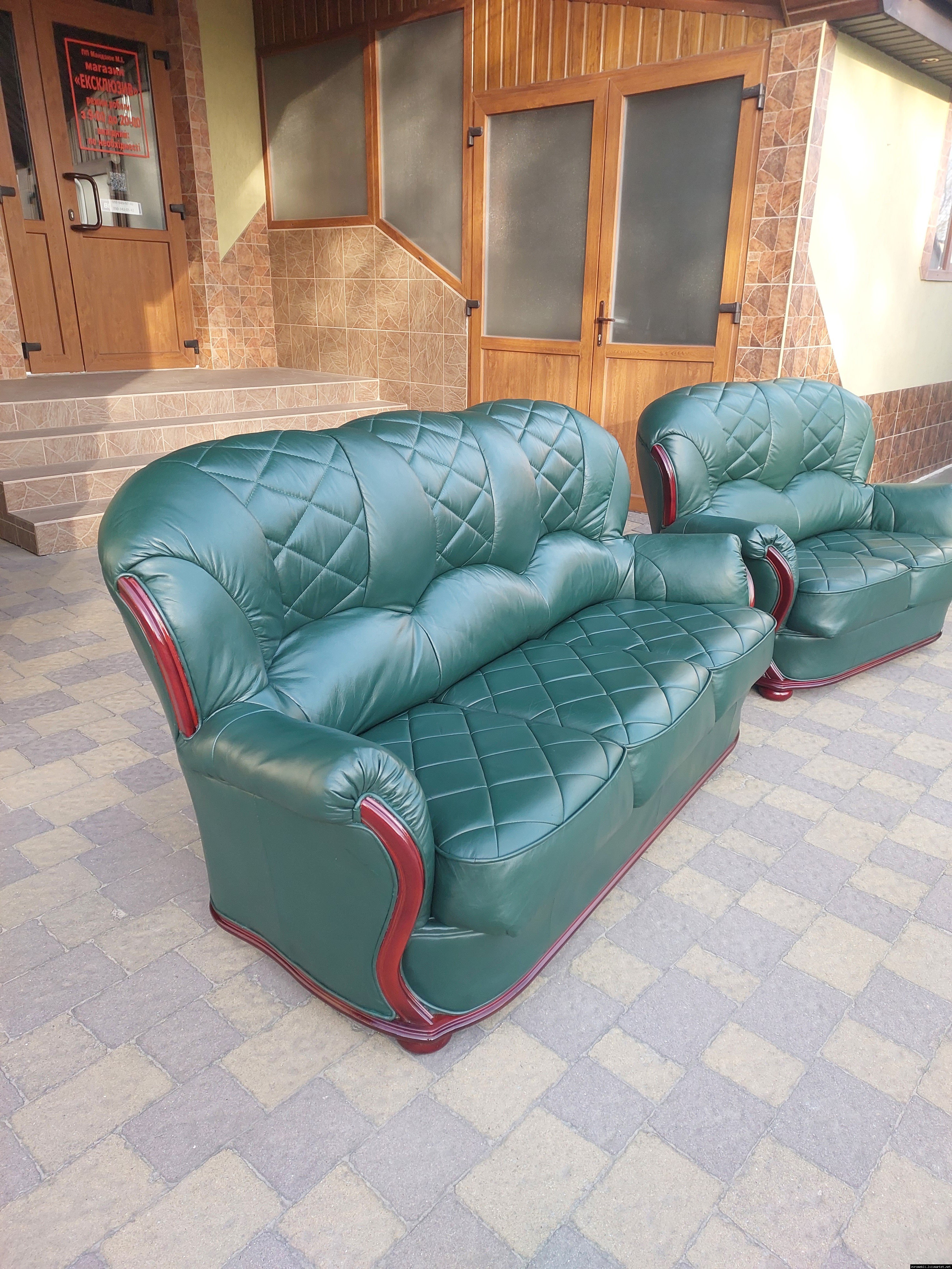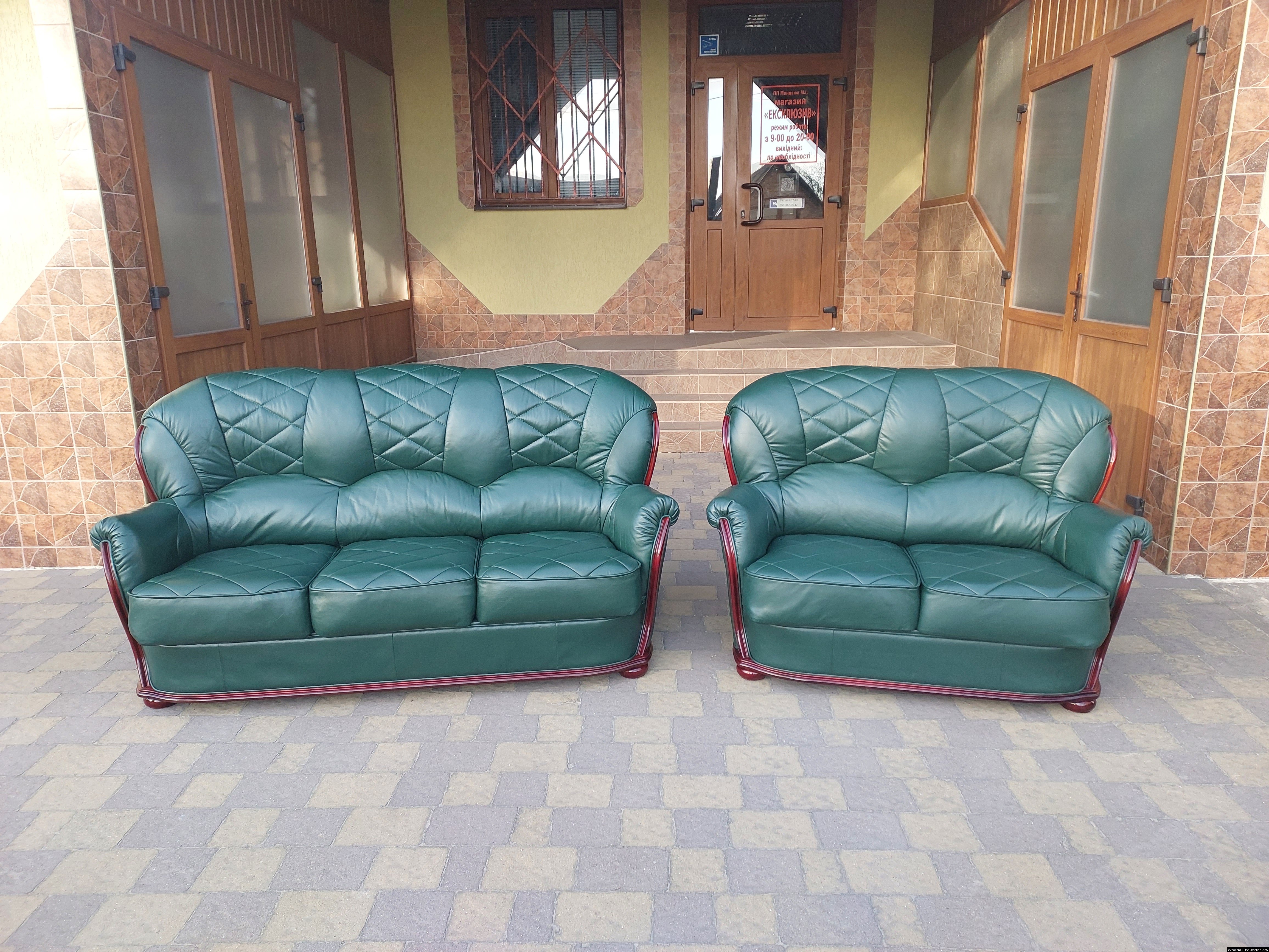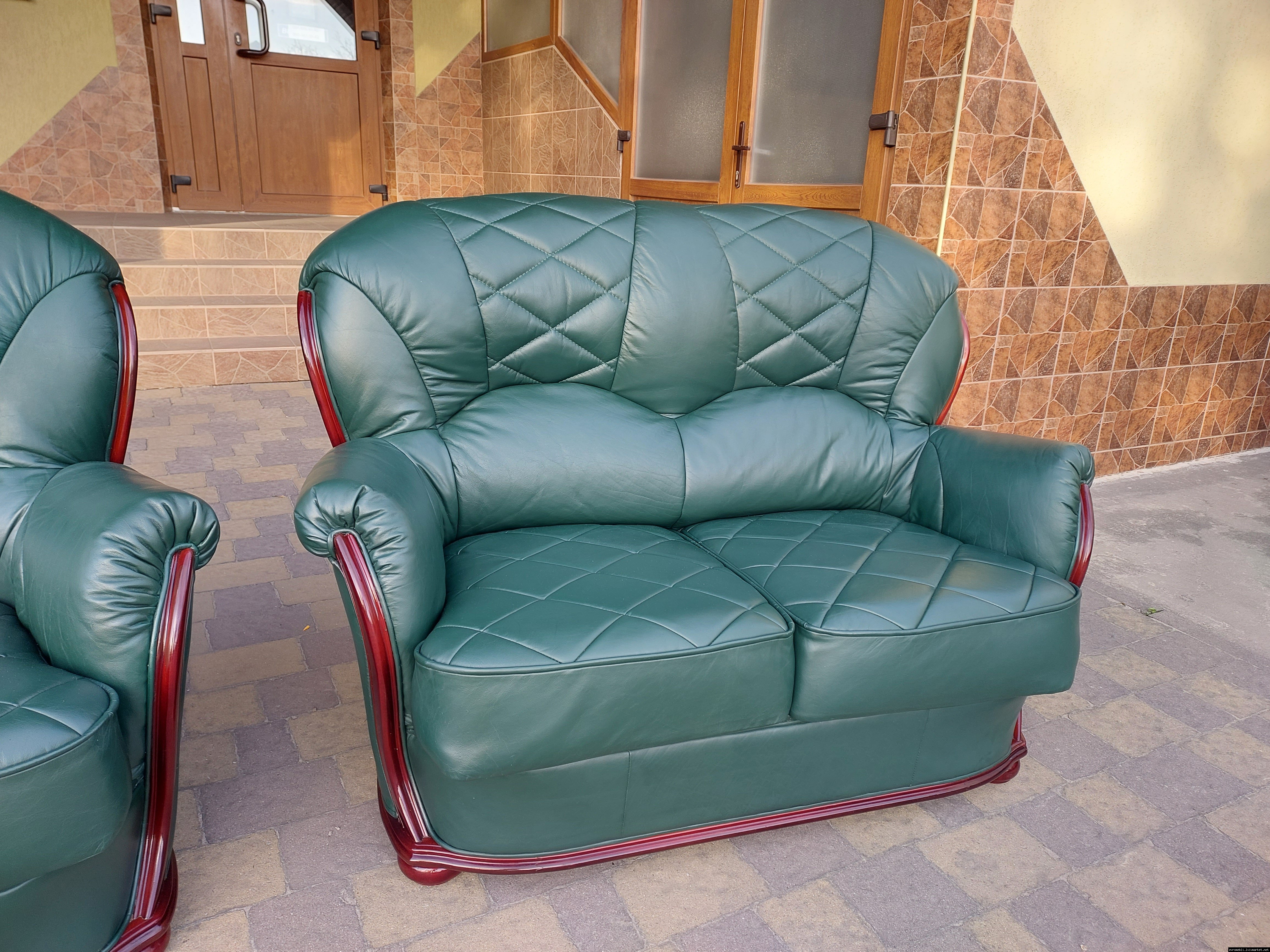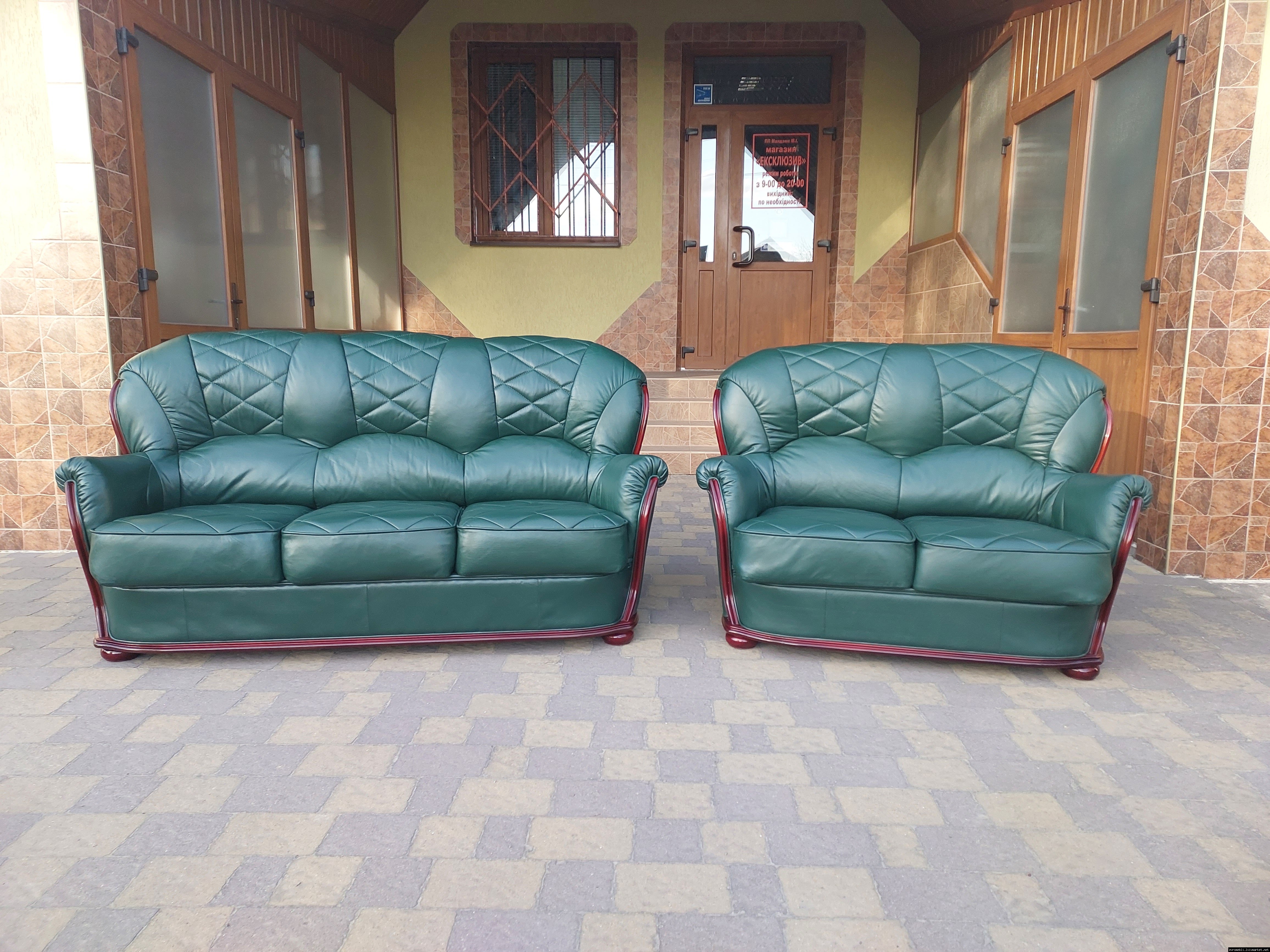 Шкіряний комплект мяких меблів в благородному смарагдовому кольорі. Натуральний вигляд, класичний дизайн та неймовірний комфорт - це те,що зробить Вашу вітальню чи кабінет особливим.