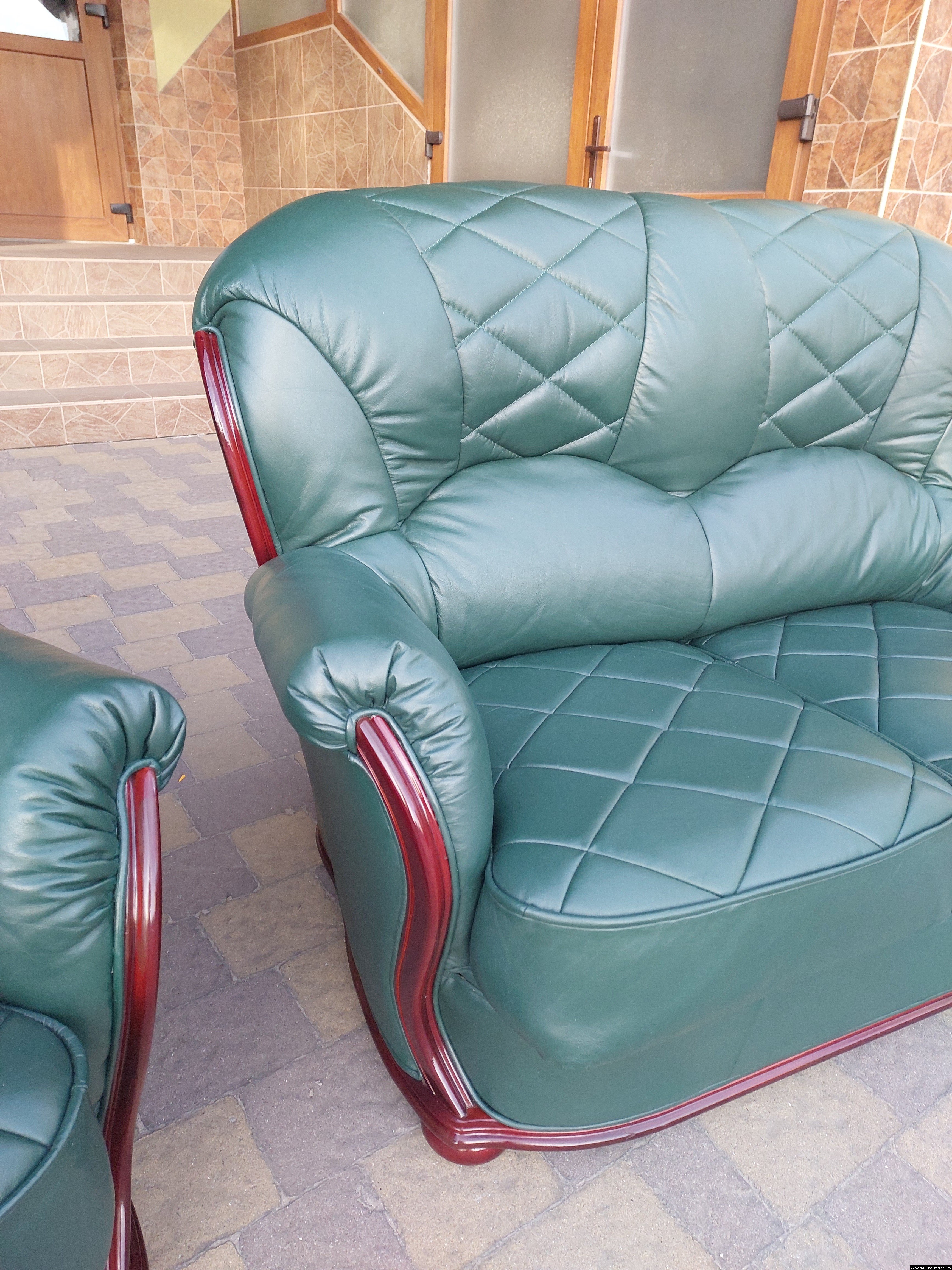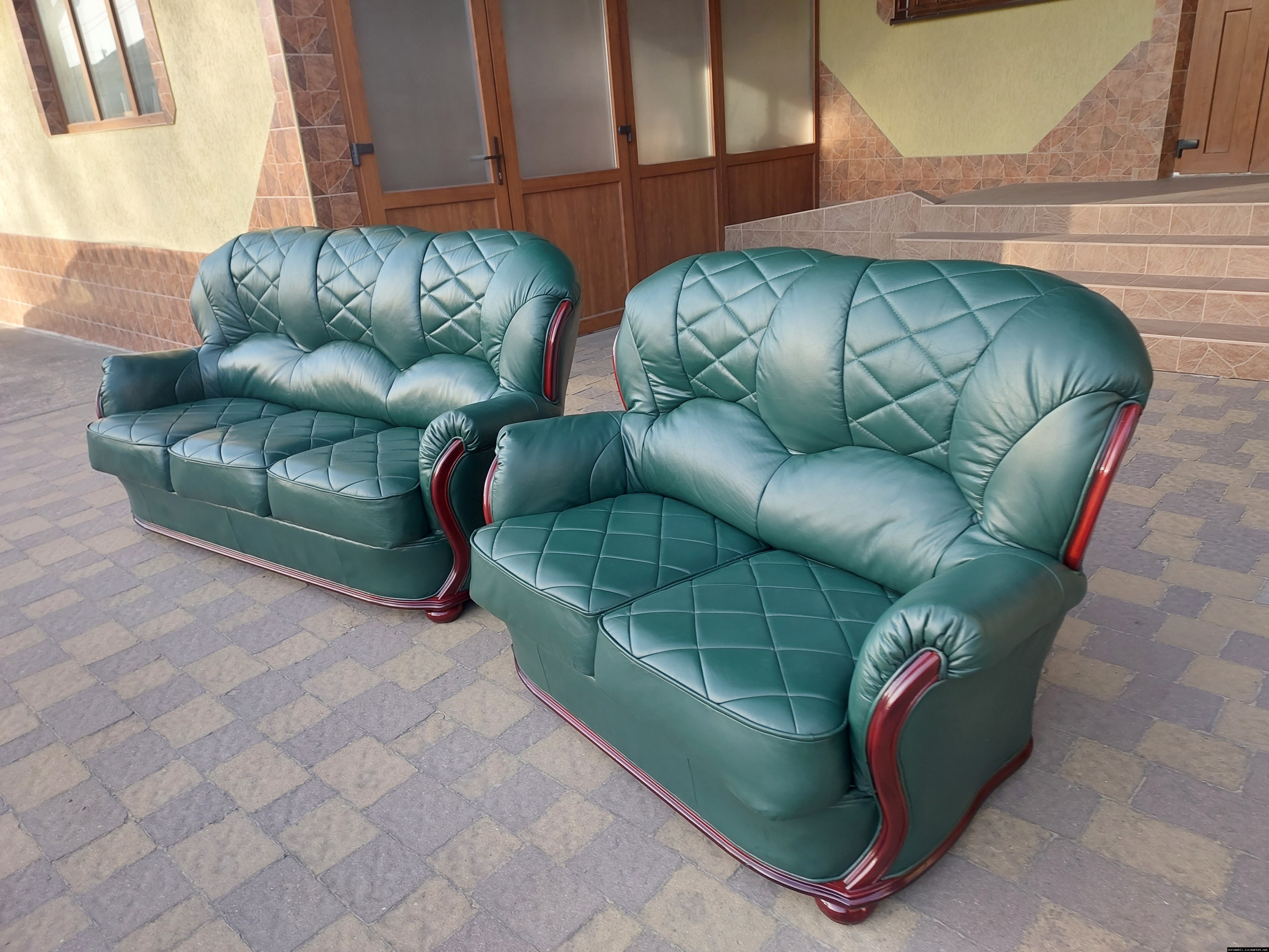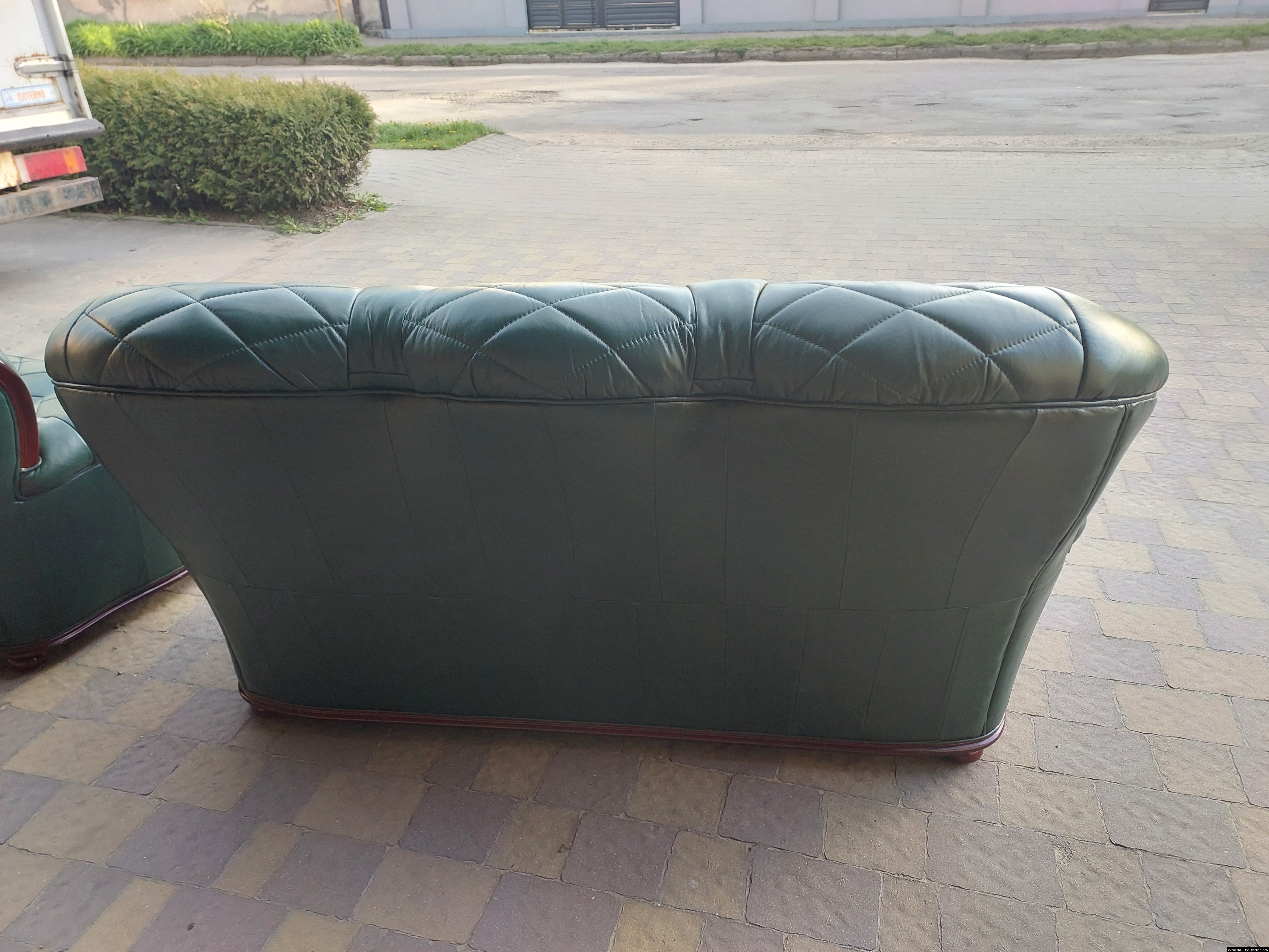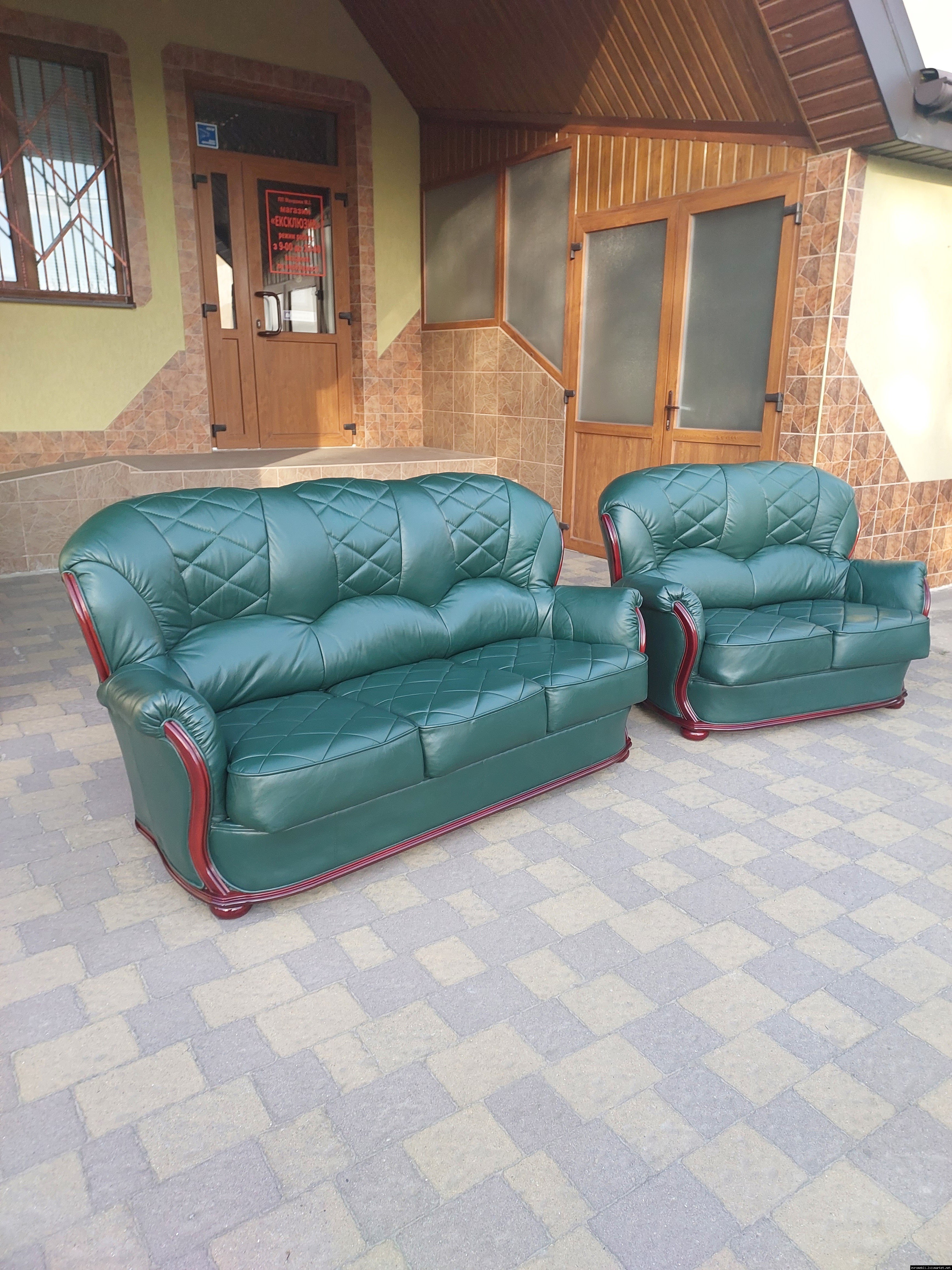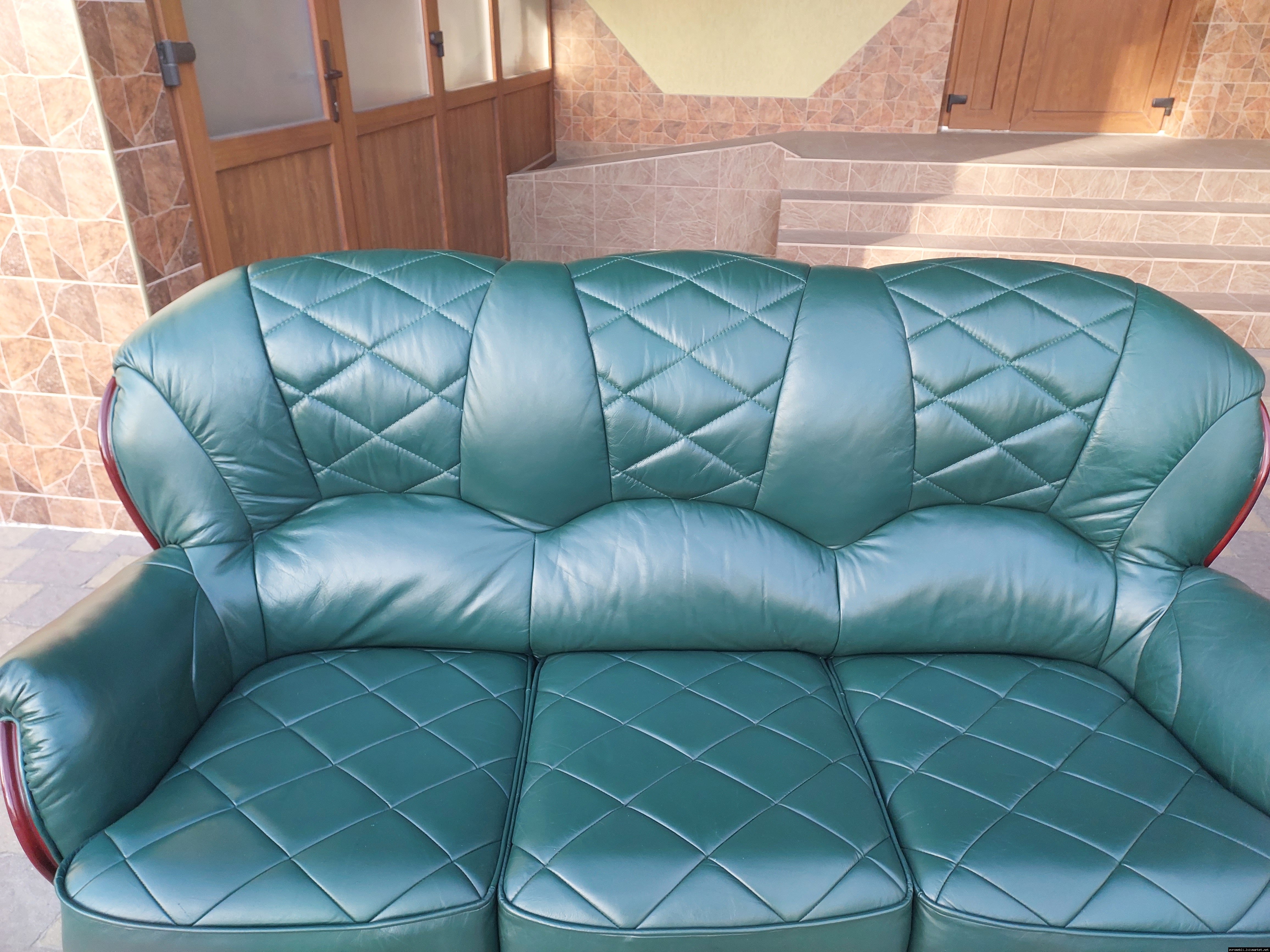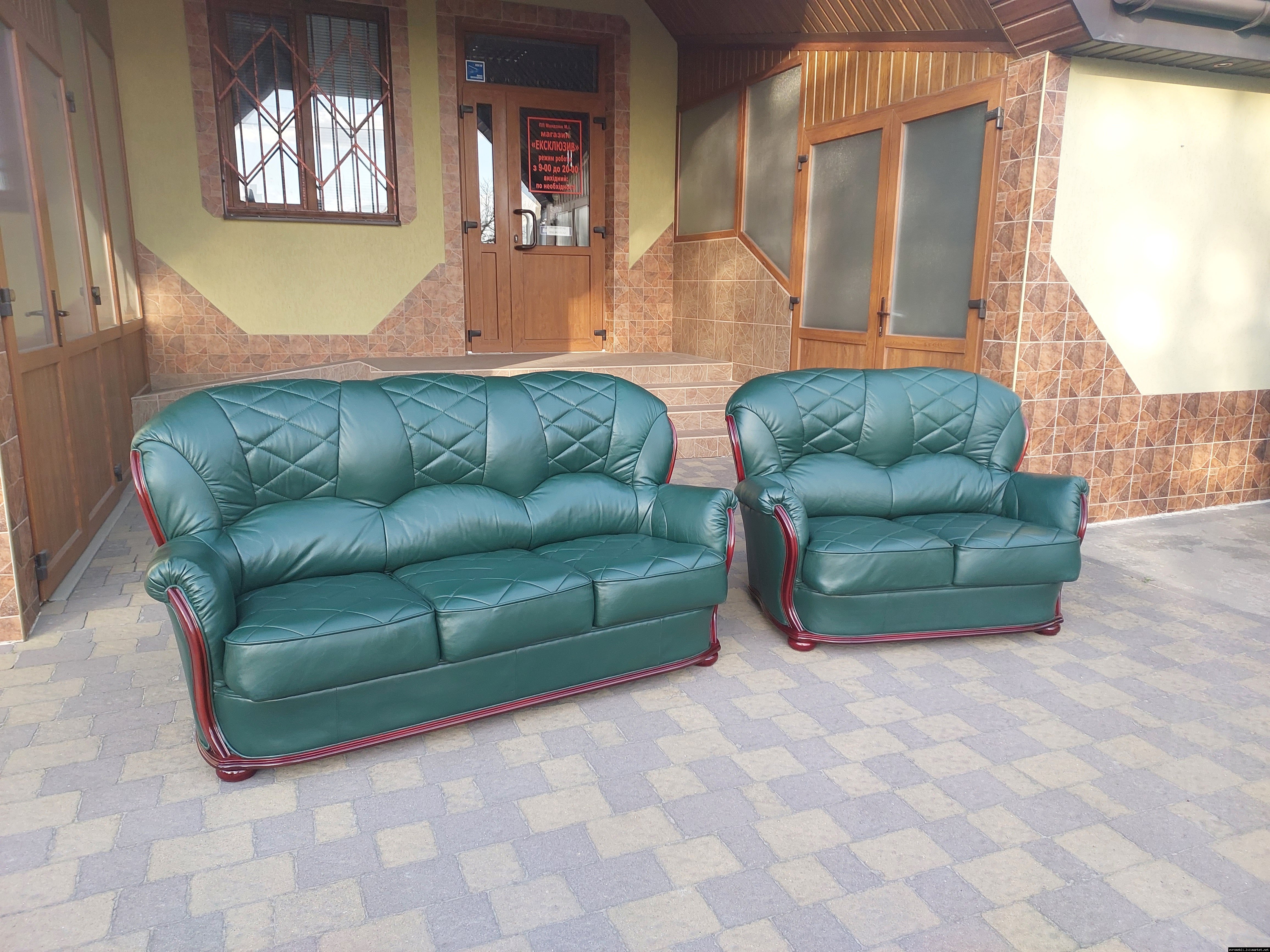 Шкіряний комплект мяких меблів в благородному смарагдовому кольорі. Натуральний вигляд, класичний дизайн та неймовірний комфорт - це те,що зробить Вашу вітальню чи кабінет особливим.