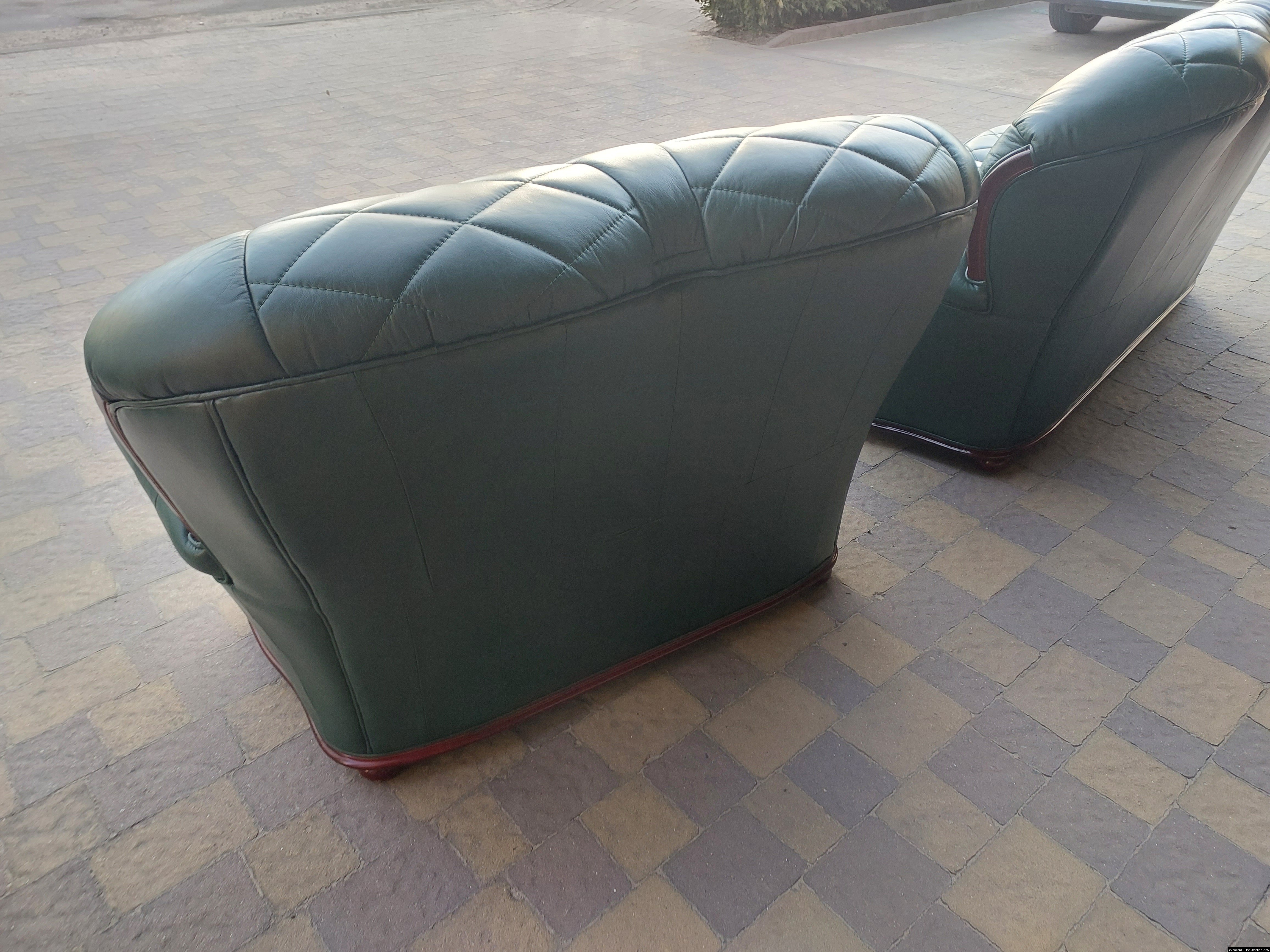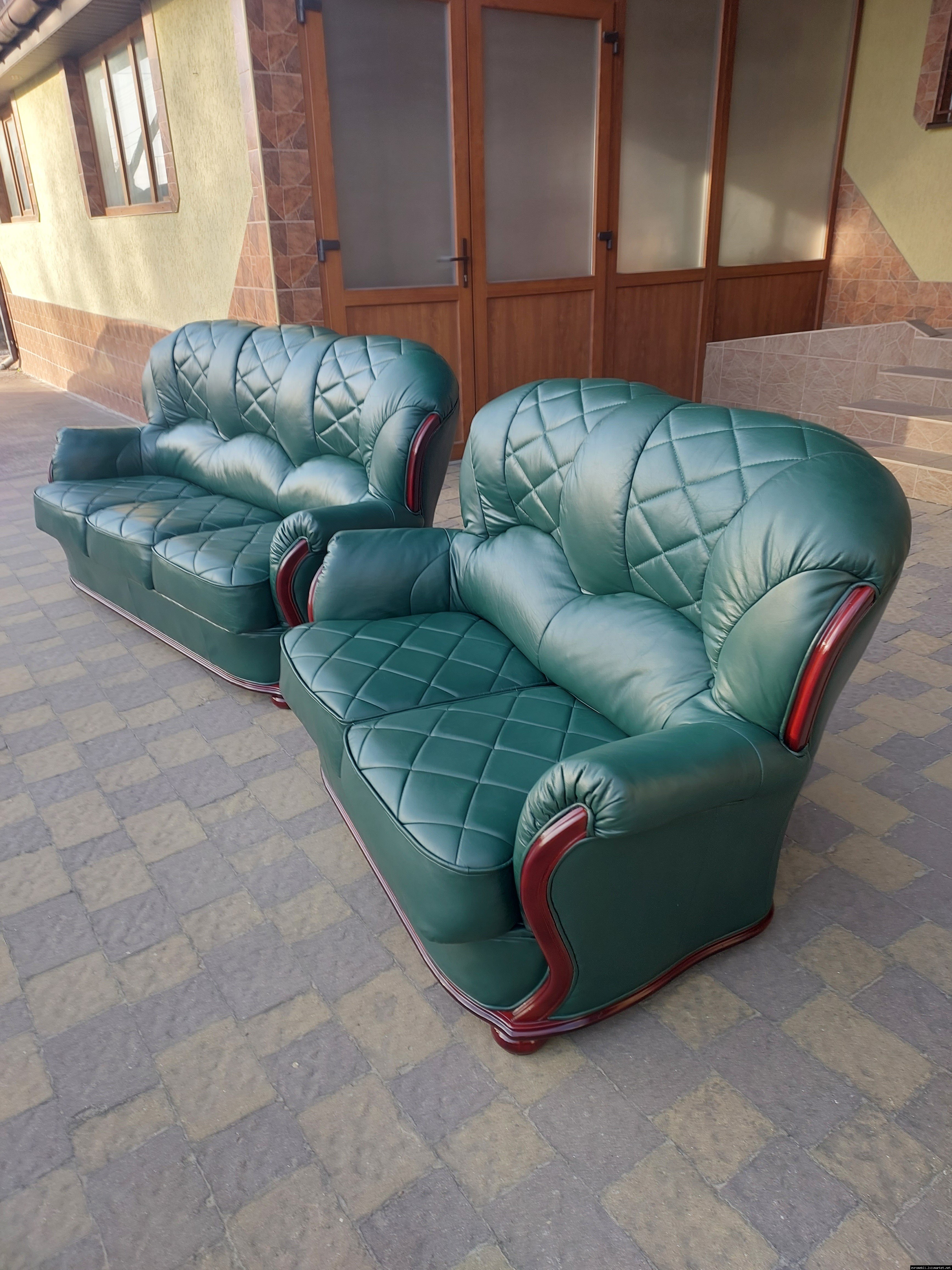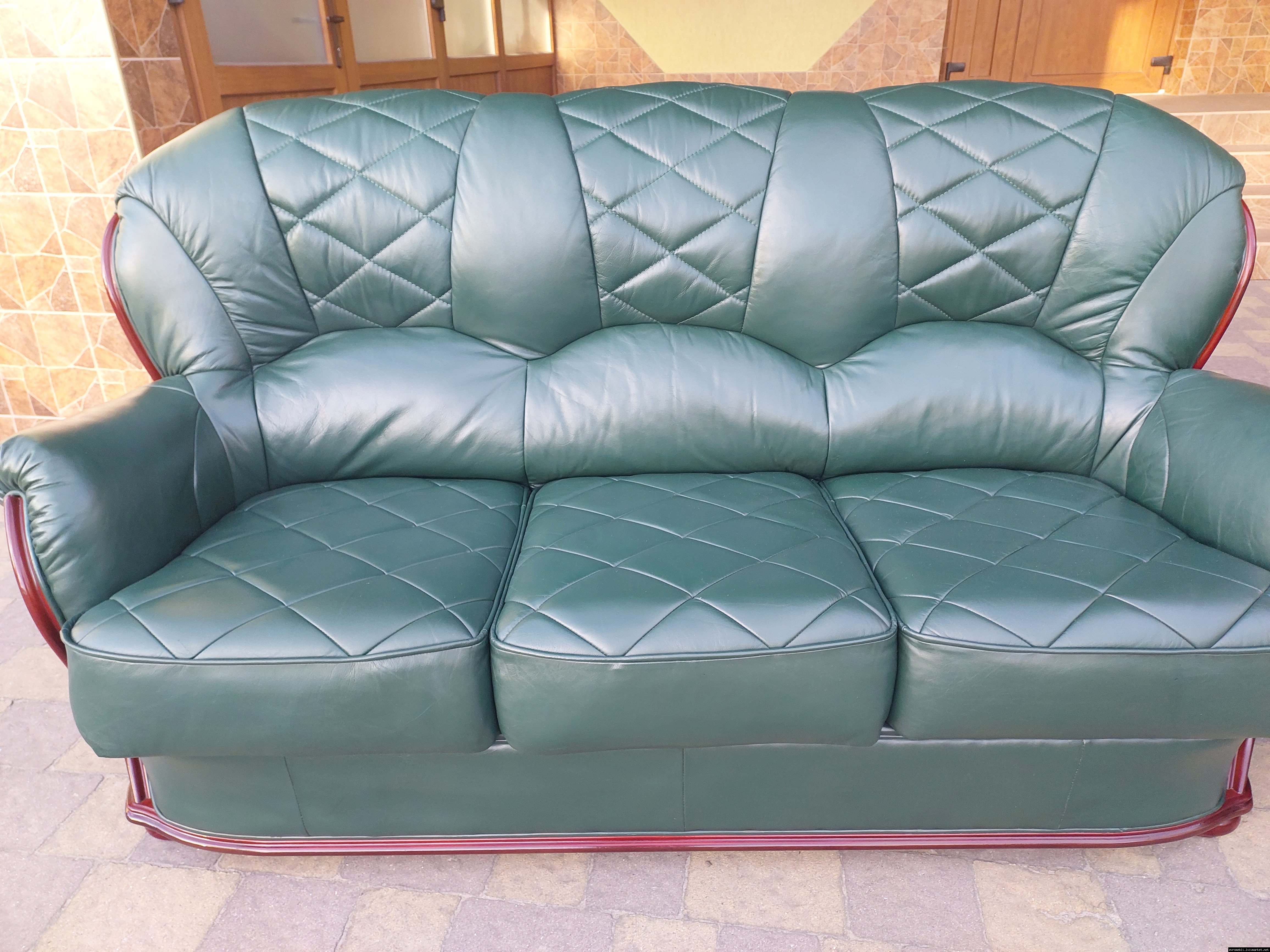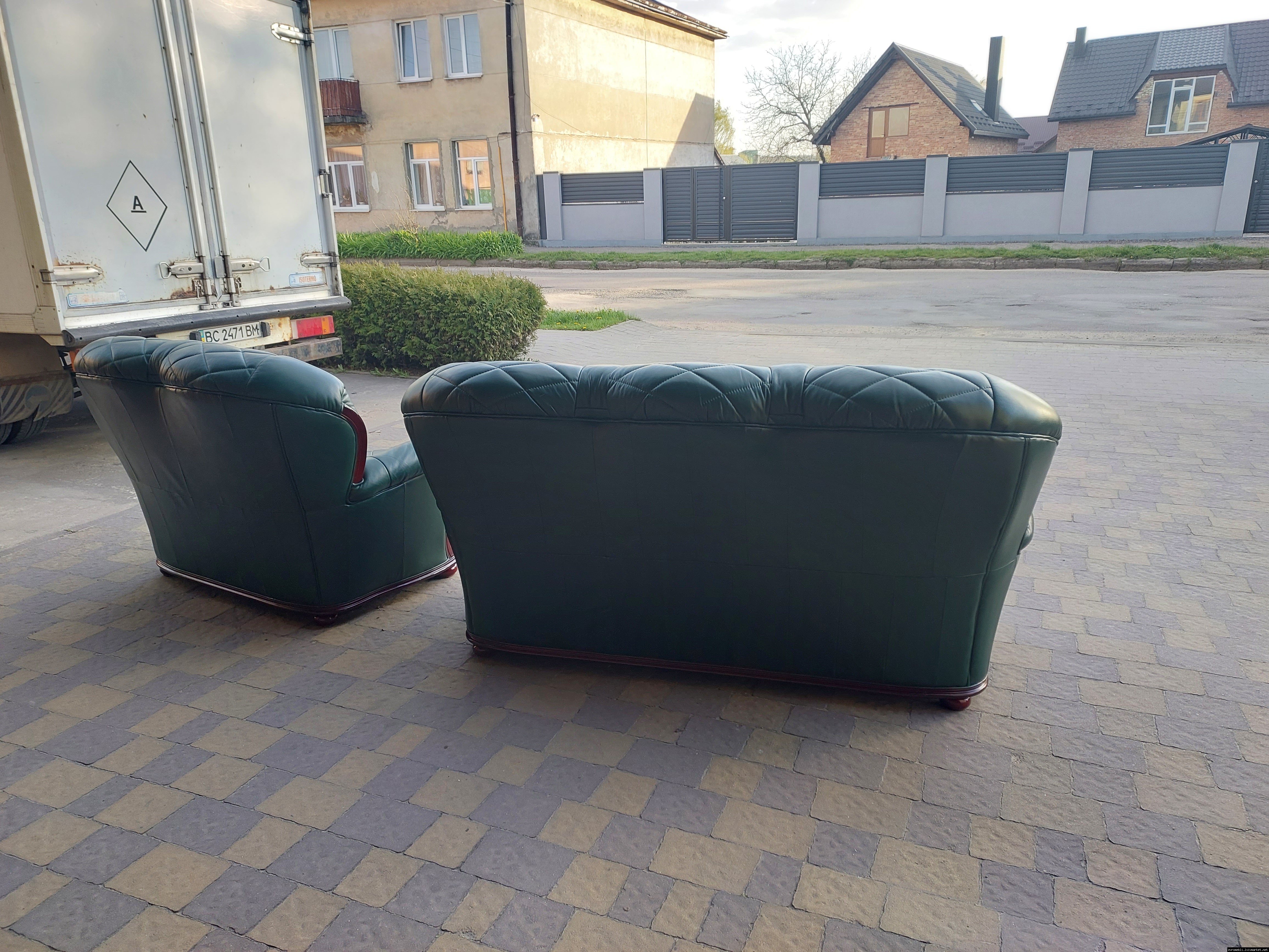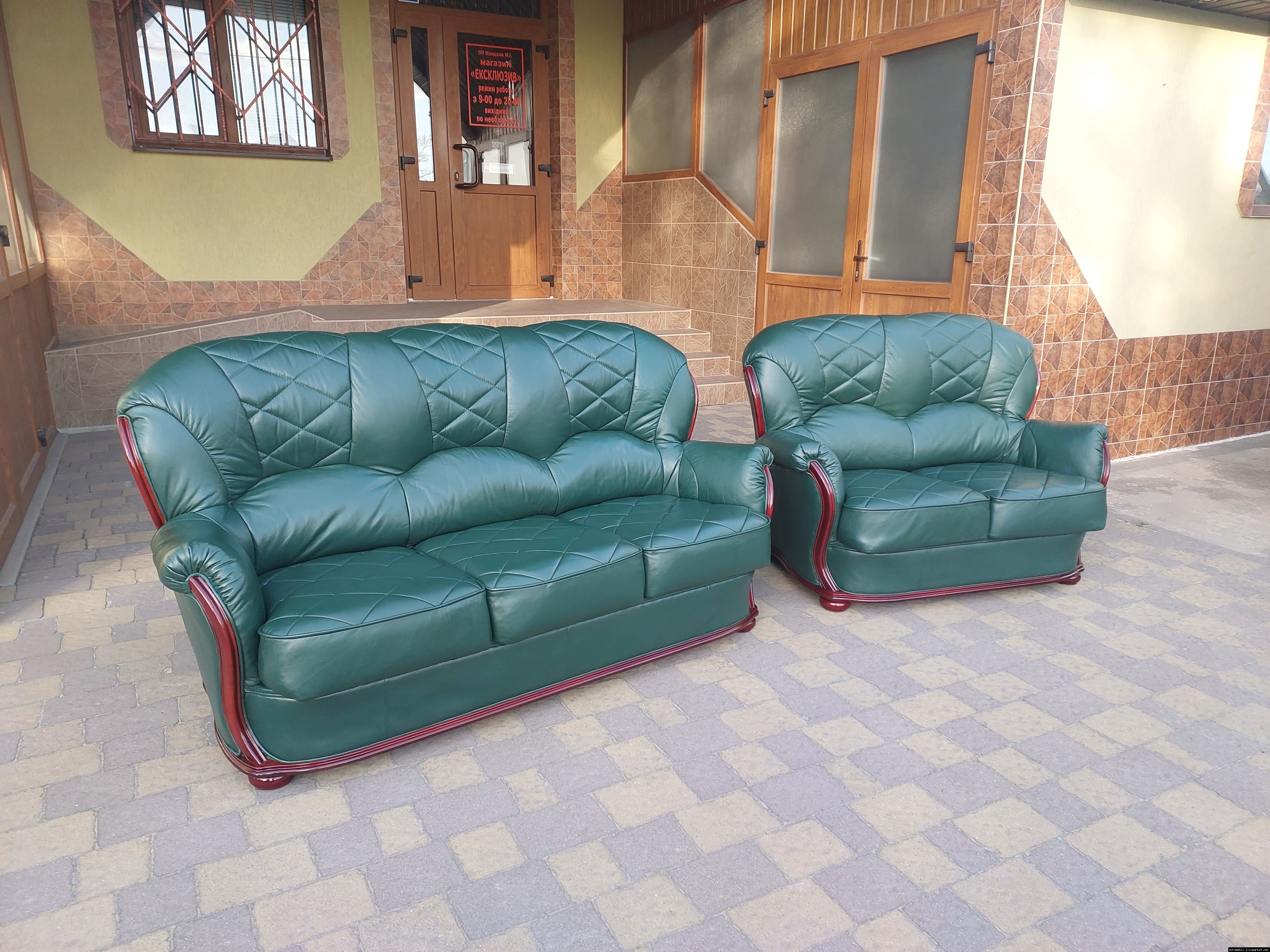Шкіряний комплект мяких меблів в благородному смарагдовому кольорі. Натуральний вигляд, класичний дизайн та неймовірний комфорт - це те,що зробить Вашу вітальню чи кабінет особливим.