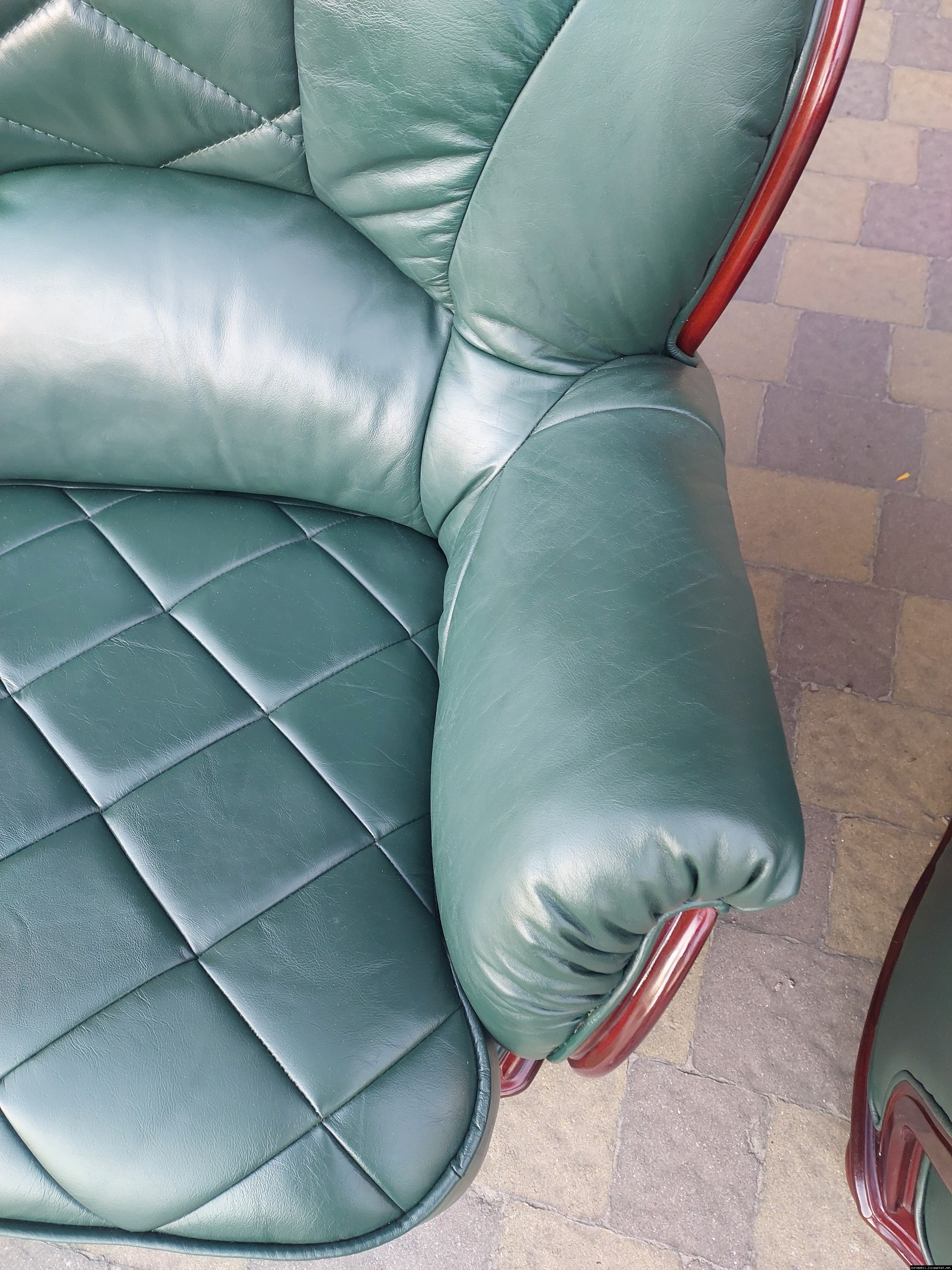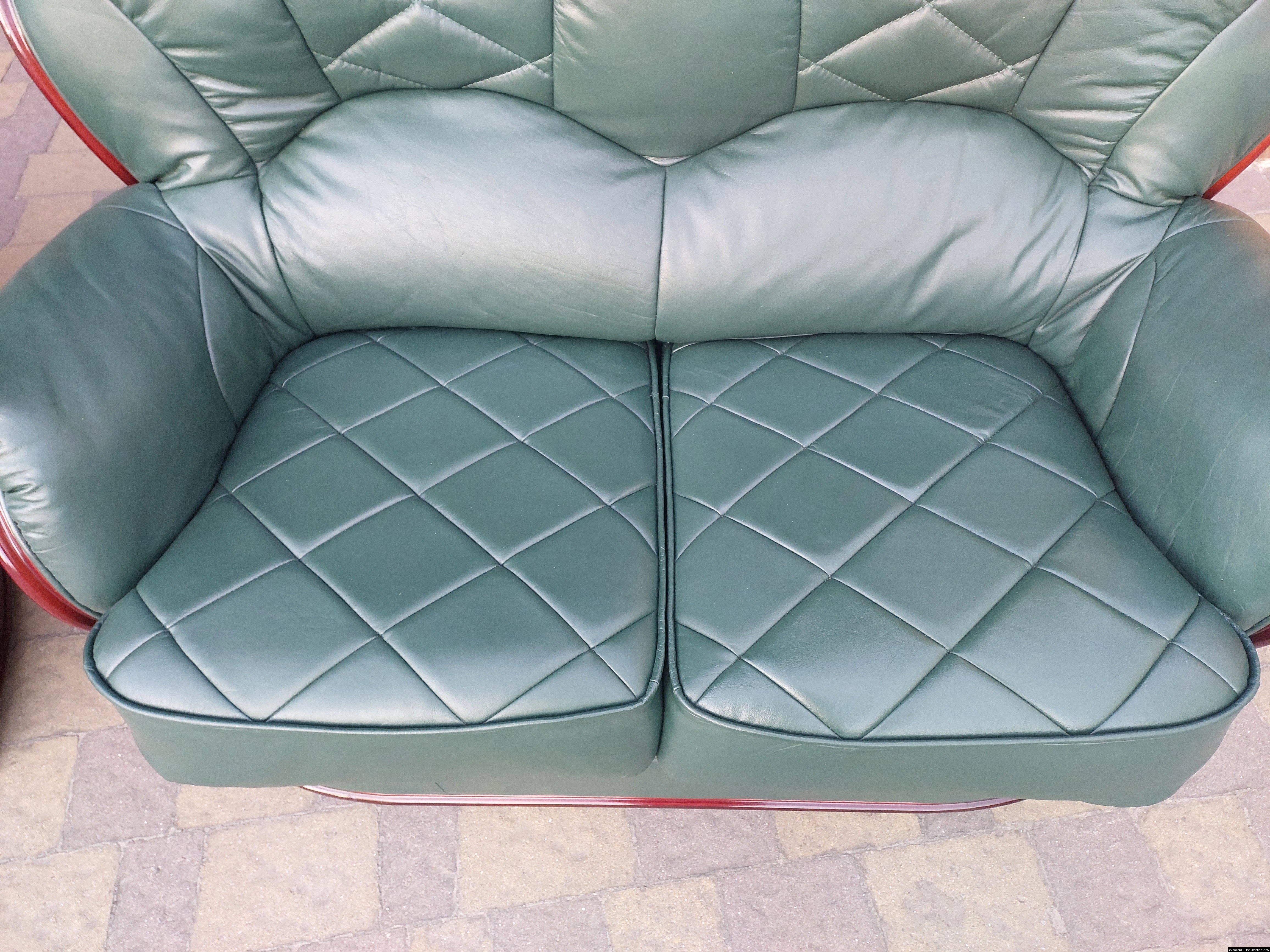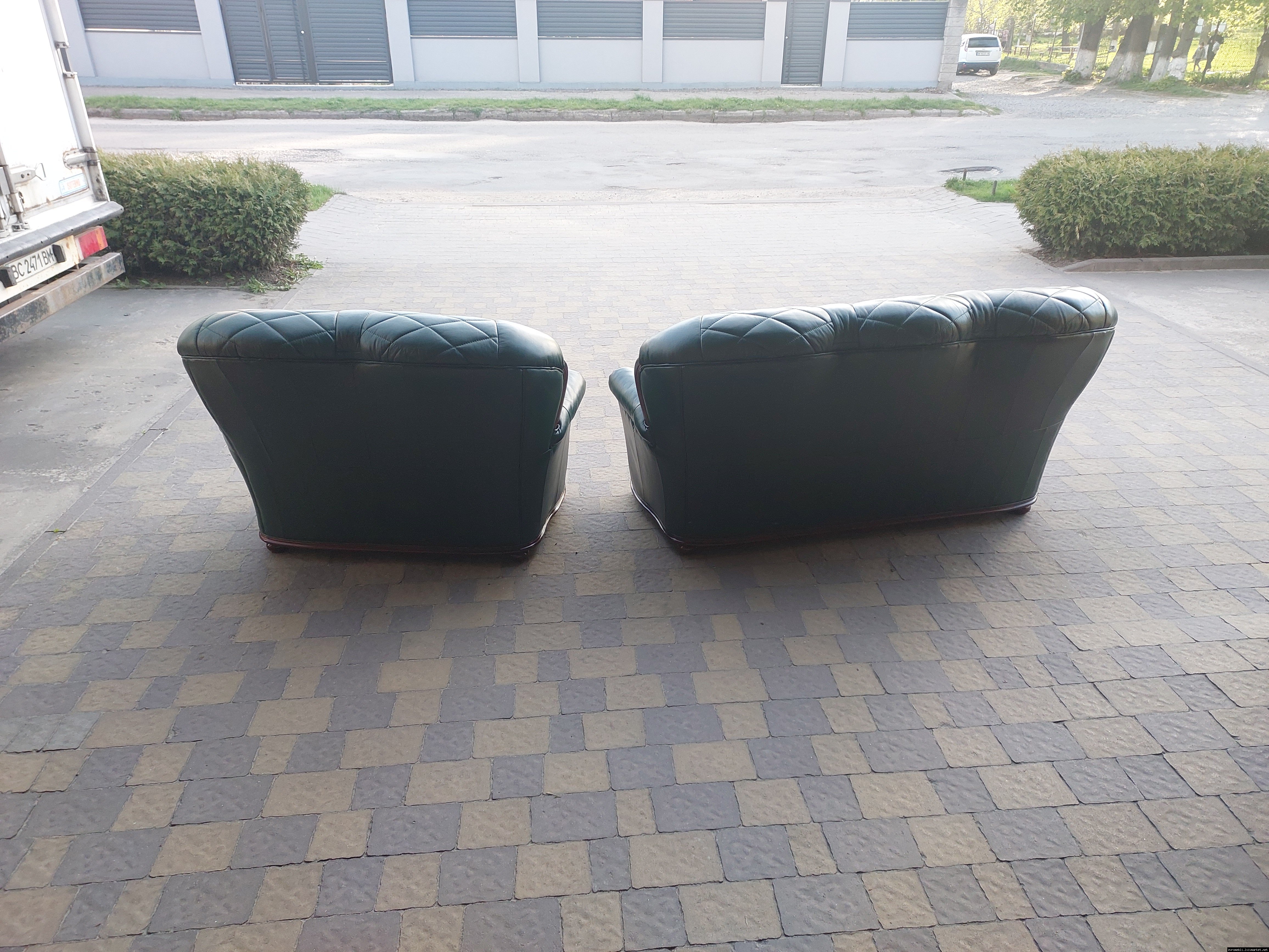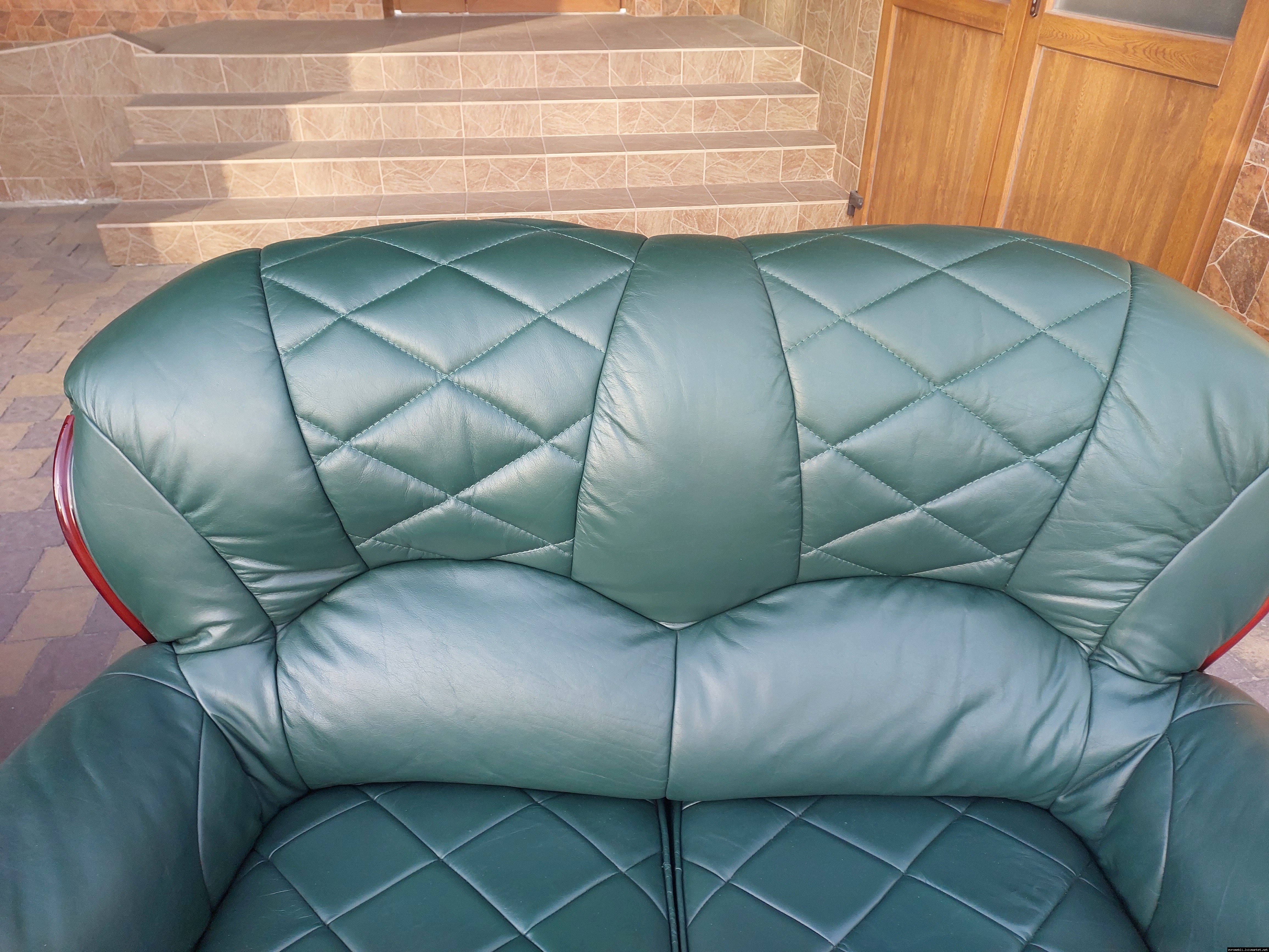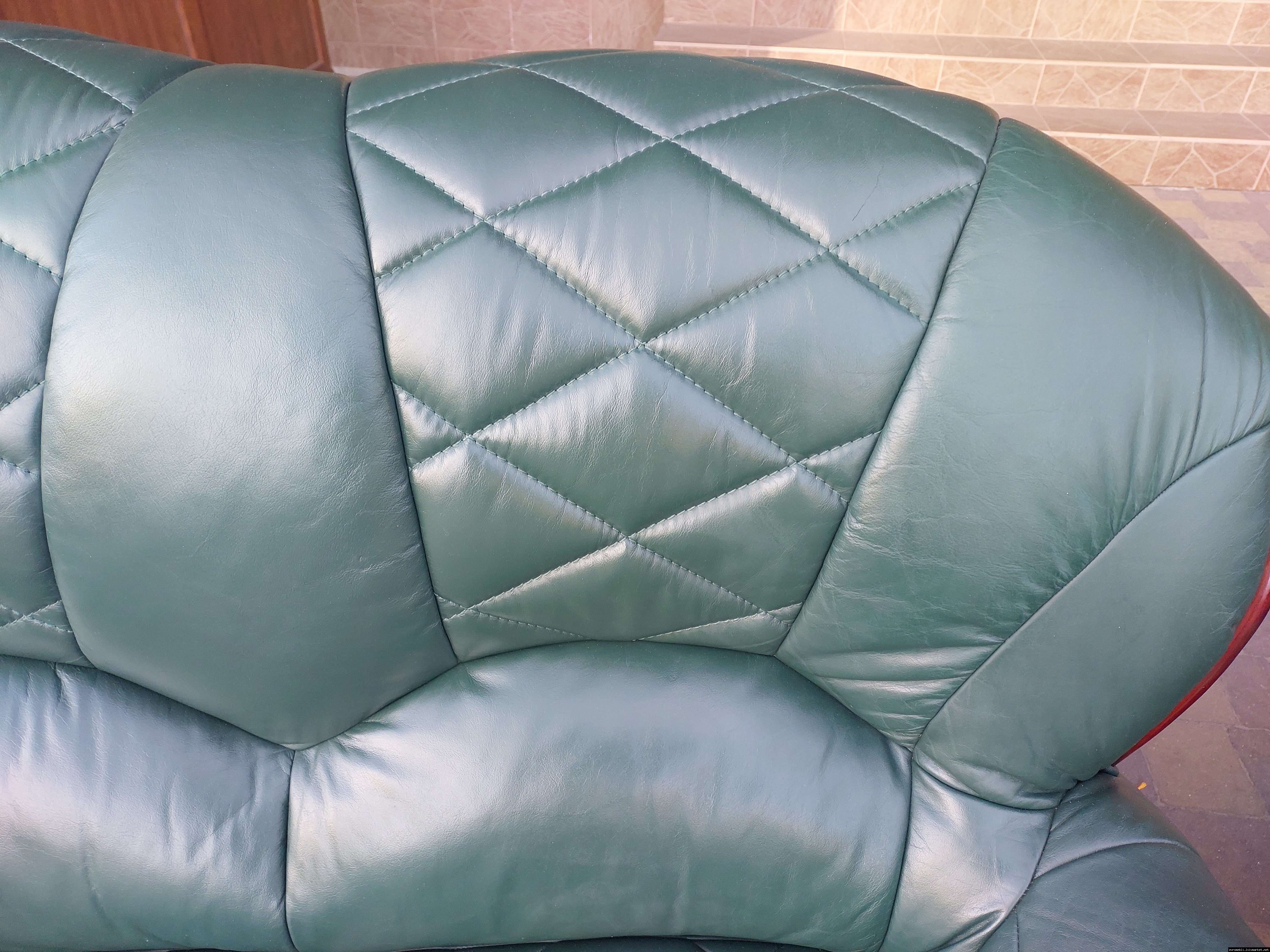 Шкіряний комплект мяких меблів в благородному смарагдовому кольорі. Натуральний вигляд, класичний дизайн та неймовірний комфорт - це те,що зробить Вашу вітальню чи кабінет особливим.