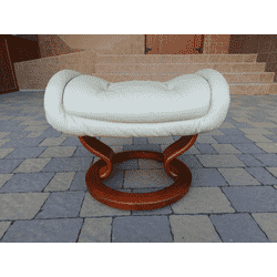 Пуфік шкіряний, на деревяному каркасі- червоно-золотистий дуб, масив, шкіра світлого, молочного кольору. Пуфік мякий, зручний та комфортний, в хорошому стані, привезений з Бельгії.