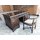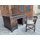 Красивий, унікальний, старовинний стіл-кабінет в стилі Готика. Стіл двосторонній, в комплекті з кріслом. Стіл та крісло виготовлено з натурального дерева, темний дуб, масив, столешня столу покрита склом,що захищає дерево відподряпин, потертості чи вологи, крісло обшите тканиною, замша світлого кольору. Стіл компактний, вмістимий та зручний в користуванні, зручний в користуванні. Стіл та крісло в хорошому стані, привезені з Бельгії.