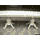 Новий сучасний столовий деревяний комплект меблів для столової або вітальні. До комплекту входить стіл розкладний та десять стільців. Комплект виготовлений з масиву натурального дерева, бук, колір- слонова кістка з позолотою. Стіл столовий, розкладний,на двох точених масивних ніжках, столешня столу прямокутної форми з фігурно-заокругленими кутиками, має дві додаткові вставки. Сидіння та спинки стільців обтягнуті тканиною. Комплект простий та водночас вишуканий і оригінальний, країна виробник- Україна.