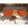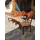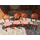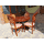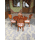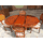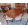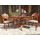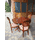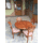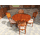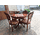 Красивий комплект меблів для кухні або столової. До комплекту входить стіл розкладний та чотири стільці, виготовлений з масиву натурального дерева. Стільці зручні та комфортні, сидіння стільців обтягнуті тканиною, спинки декоровані плетенням з ротангу. Стіл столовий, розкладний, на одній, масивній точеній ніжці, столешня столу круглої форми, оздоблена інкрустацією з кореня горіха. Комплект повністю масивний, в хорошому стані, привезений з Бельгії.