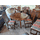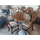 Красивий столовий комплект в стилі Лофт. До комплекту входить стіл столовий, розкладний та шість стільців. Комплект виготовлений з натурального дерева, темний дуб, масив, декорований елементами різьби. Стільці зручні та комфортні, сидіння стільців обтягнуті тканиною. Стіл столовий, розкладний, на чотирьох точених ніжках, столешня столу овальної форми. Комплект повністю масивний, в хорошому стані, привезений з Бельгії.