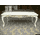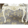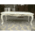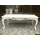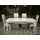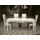 Новий сучасний столовий деревяний комплект меблів для столової або вітальні. До комплекту входить стіл розкладний та вісім стільців. Комплект виготовлений з масиву натурального дерева, бук, колір- слонова кістка з позолотою. Стіл столовий, розкладний,на чотирьох точених ніжках, столешня столу прямокутної форми з фігурно-заокругленими кутиками, має одну додаткову вставку. Сидіння та спинки стільців обтягнуті тканиною. Комплект простий та водночас вишуканий і оригінальний, країна виробник- Україна.