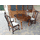Вишуканий столовий, розкладний стіл в стилі Чіппендейл. Стіл на чотирьох точених ніжках у вигляді лап, що тримають кулю, виготовлений з масиву натурального дерева, горіх темного кольору, столешня овальної форми, декорована інкрустацією з кореня горіха. Стіл красивий, розкладний, (є одна додаткова вставка), в хорошому стані, привезений з Бельгії.