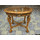 Стіл журнальний в стилі Чіппендейл, на чотирьох точених ніжках у вигляді звіриних лап, столешня круглої форми. Каркас столу виготовлений з дерева, темно-золотистий дуб, масив, щедро декорований елементами різьби у вигляді квітів, листочків і завитків, столешня круглої форми, виготовлена зі скла та декорована плетінням з ротангу. Стіл вишуканий та елегантний, в хорошому стані, без видимих дефектів чи пошкоджень, привезений з Бельгії.